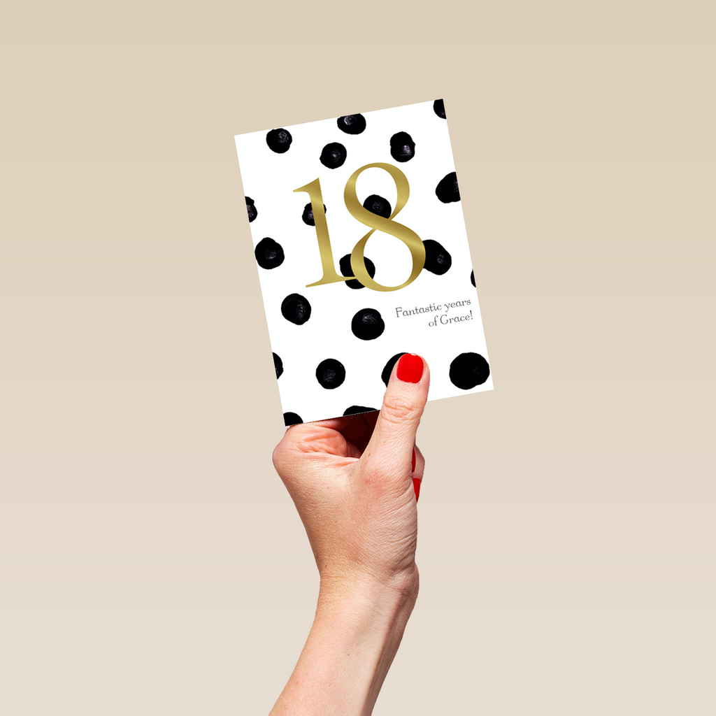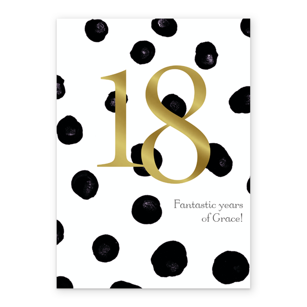 Show them you care with a personalised polka dot 18th birthday card from Hallmark. Our 18th birthday cards are printed on premium quality, FSC®-certified card & delivered nationwide.
