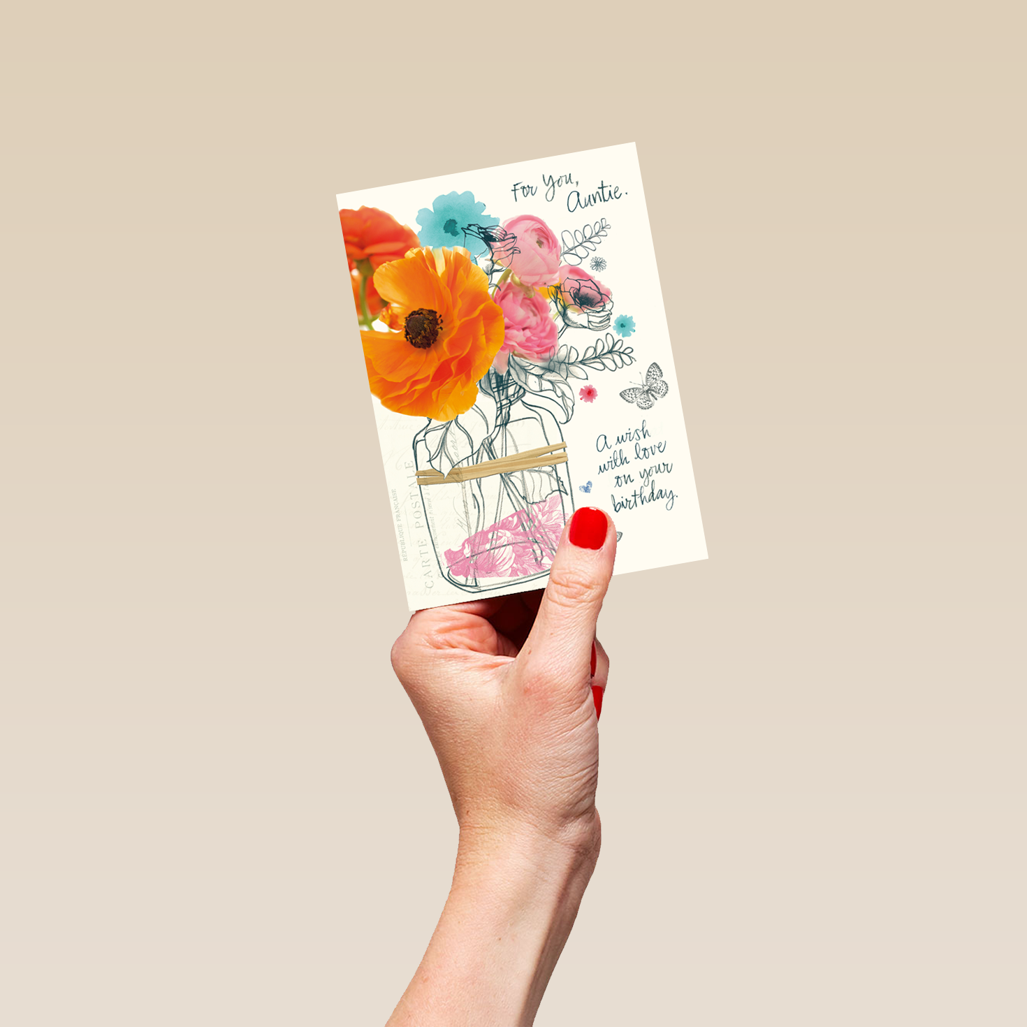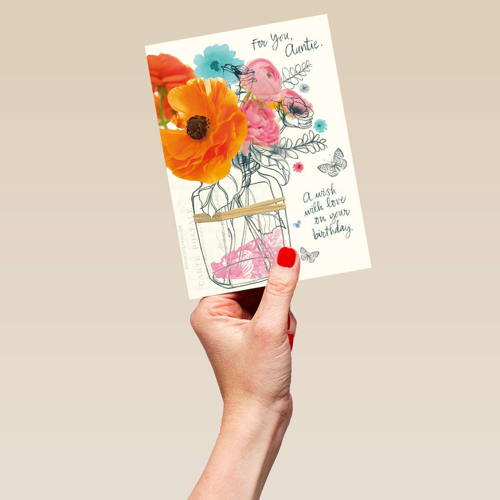 Show them you care with a personalised poppies birthday card for auntie from Hallmark. Our birthday cards are printed on premium quality, FSC®-certified card & delivered nationwide. This card is available as standard 12cm by 16.7cm and large 15.5cm by 21.6cm.