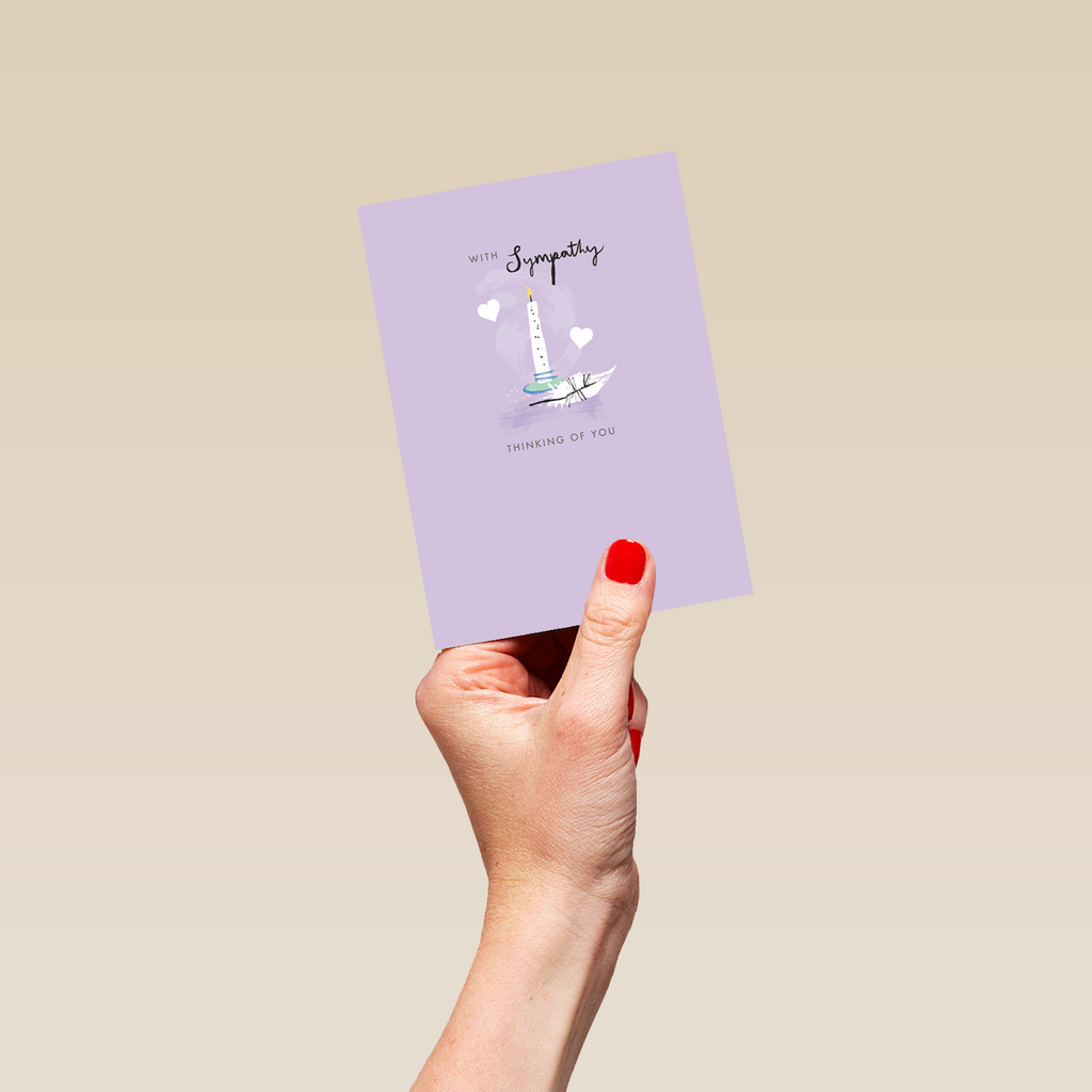 Show them you care with a personalised purple illustrated candle sympathy card from Hallmark. Our sympathy cards are printed on premium quality, FSC®-certified card & delivered nationwide. This card is available as standard 12cm by 16.7cm and large 15.5cm by 21.6cm.
