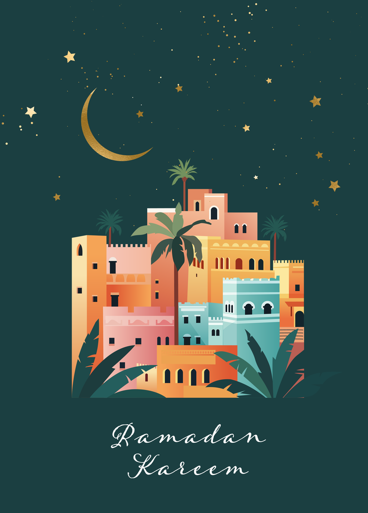 Send warmest Ramadan wishes to loved ones near or far with this colourful and beautifully designed celebration card.