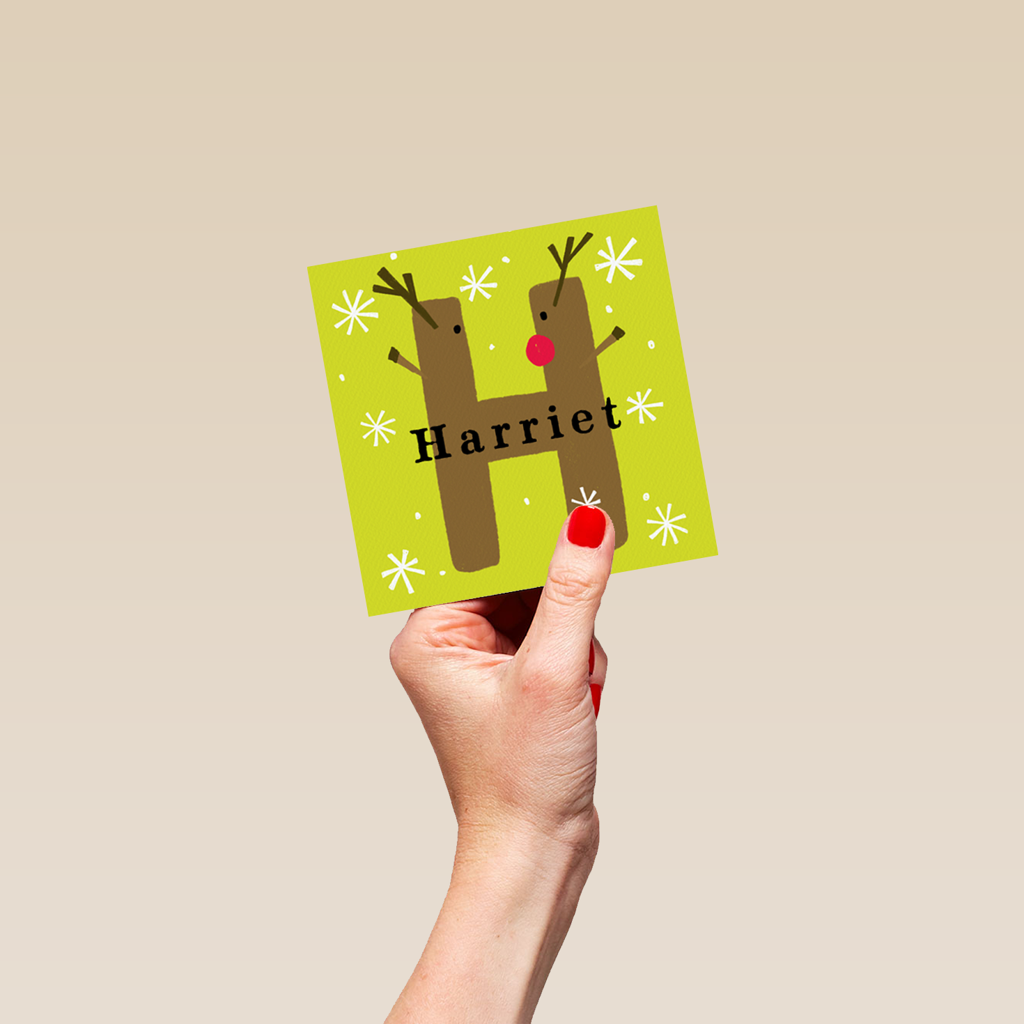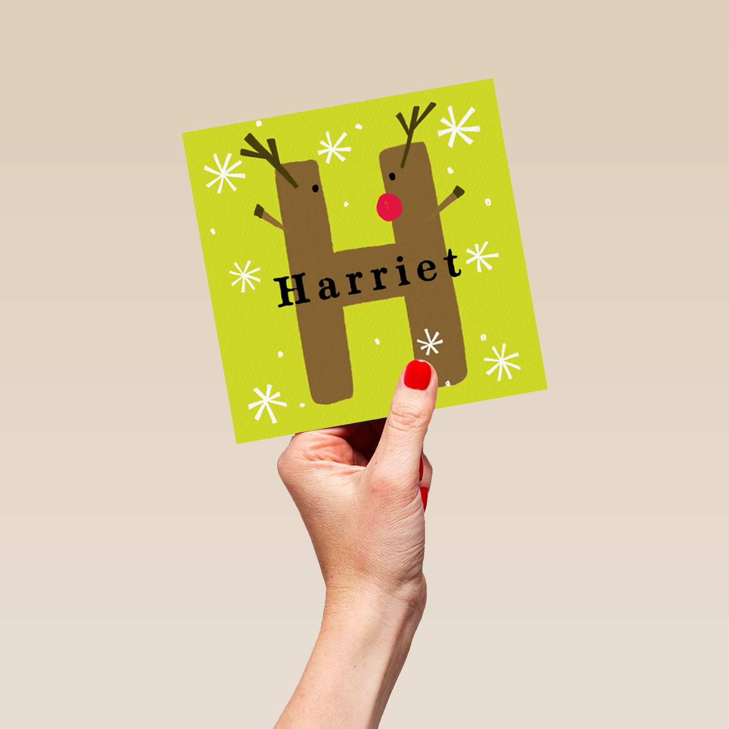 Show them you care with a personalised reindeer monogram letter H Christmas card from Hallmark. Our greetings cards are printed on premium quality, FSC®-certified card & delivered nationwide. This card is available as standard 12cm by 12cm and large 15cm by 15cm.