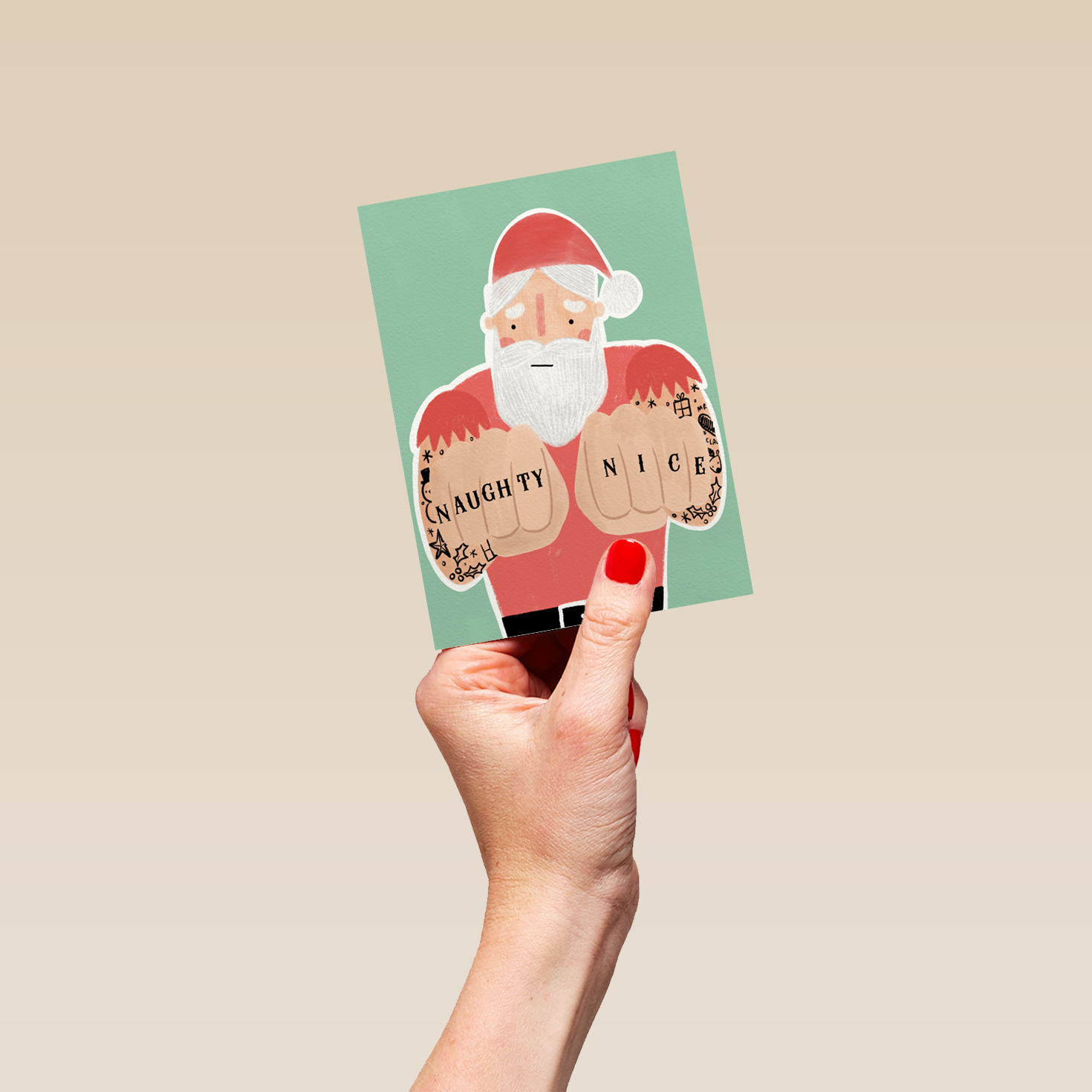Show them you care with a personalised Santa naughty & nice Christmas card from Hallmark. Our greetings cards are printed on premium quality, FSC®-certified card & delivered nationwide. This card is available as standard 12cm by 16.7cm and large 15.5cm by 21.6cm.