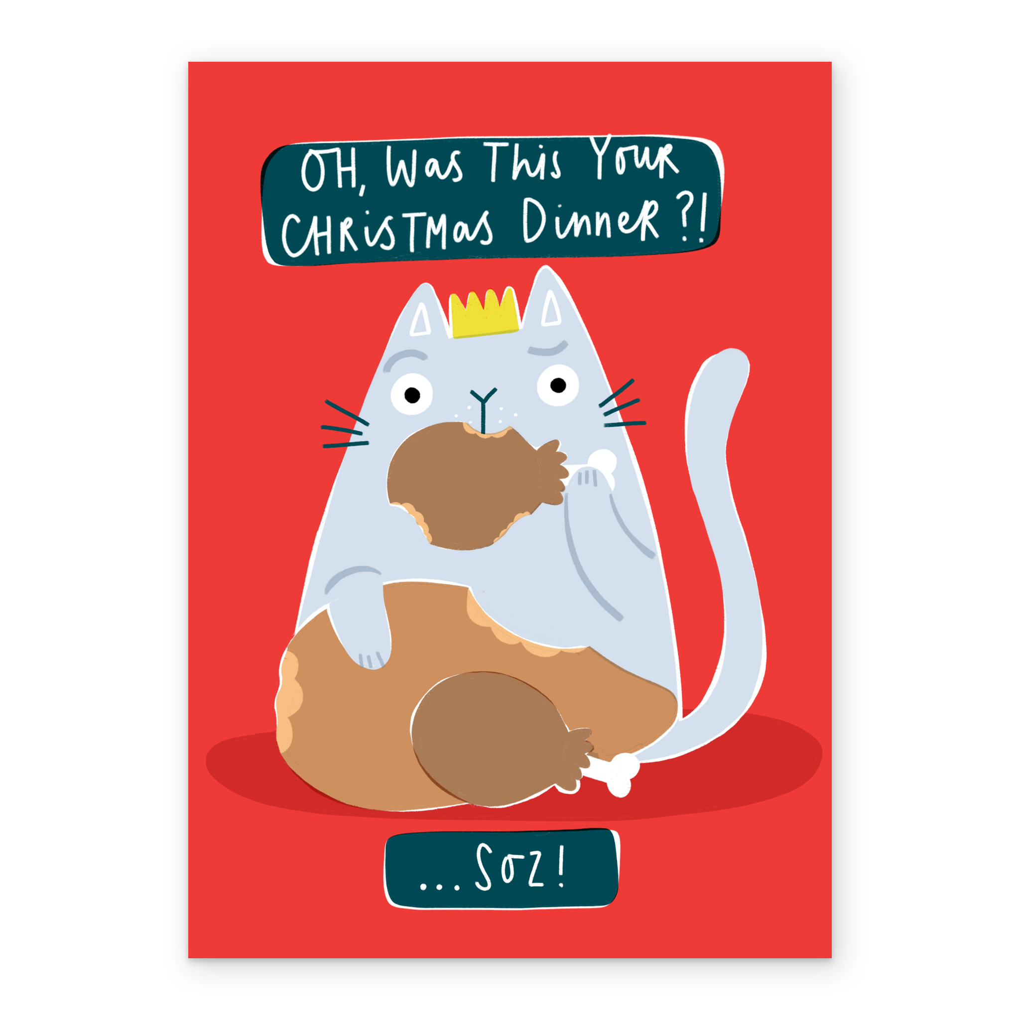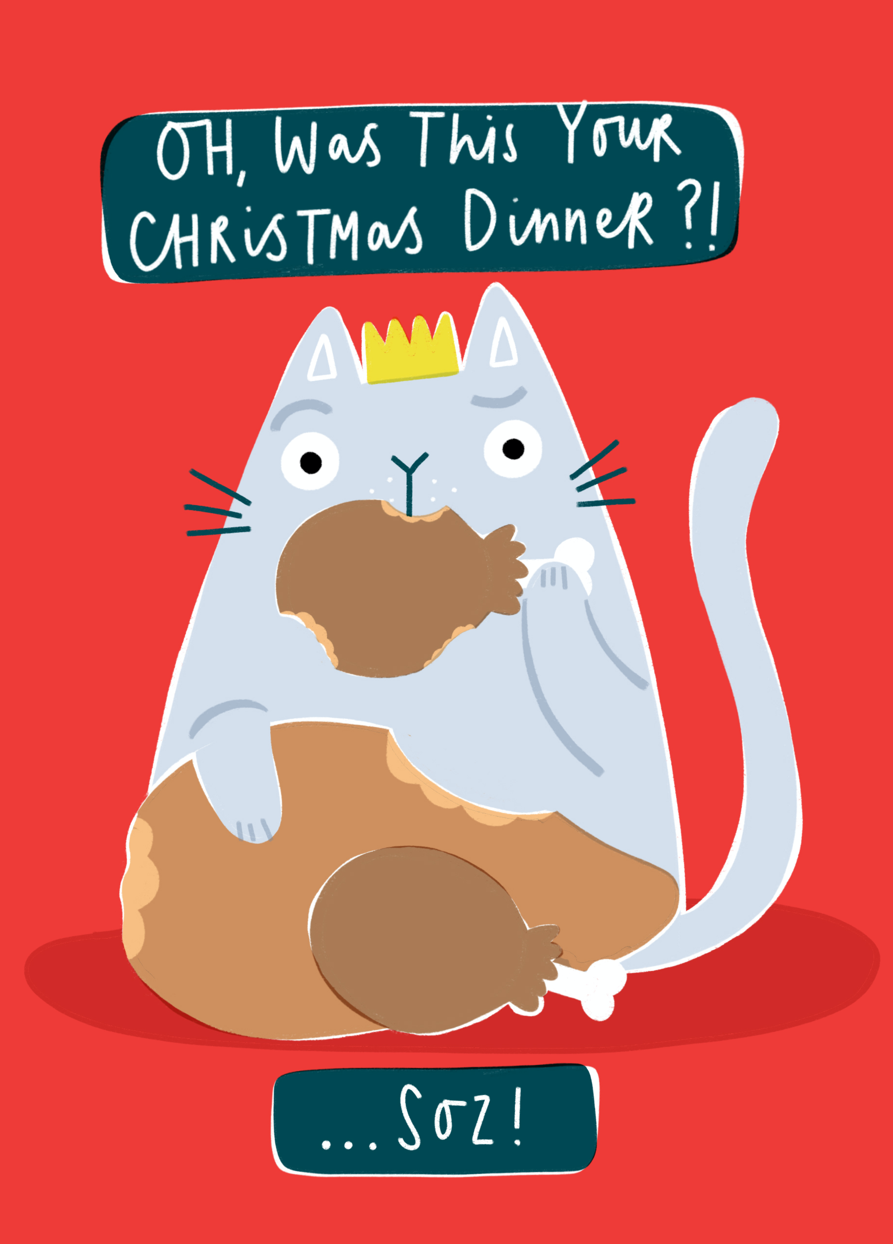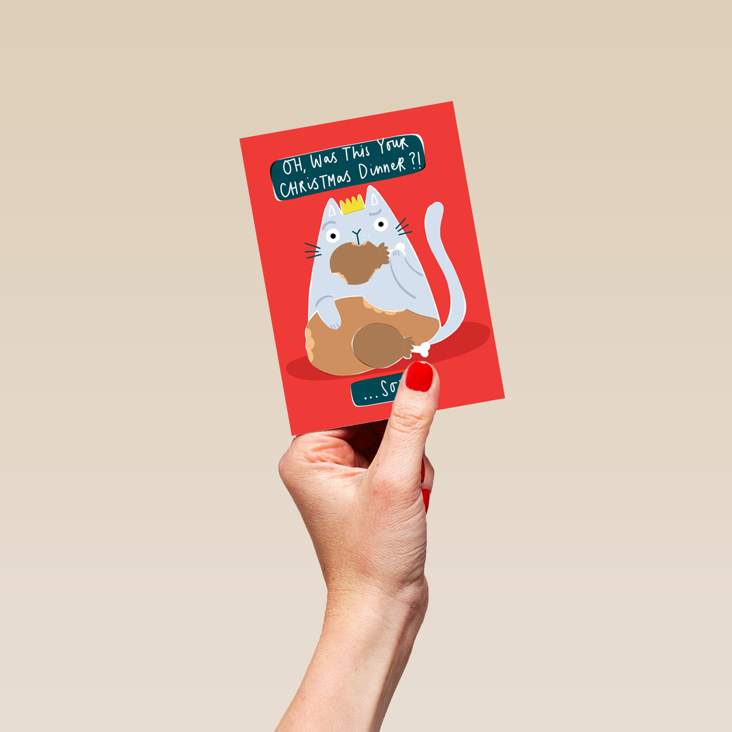 Show them you care with a personalised sassy cat festive dinner Christmas card from Hallmark. Our greetings cards are printed on premium quality, FSC®-certified card & delivered nationwide. This card is available as standard 12cm by 16.7cm and large 15.5cm by 21.6cm.