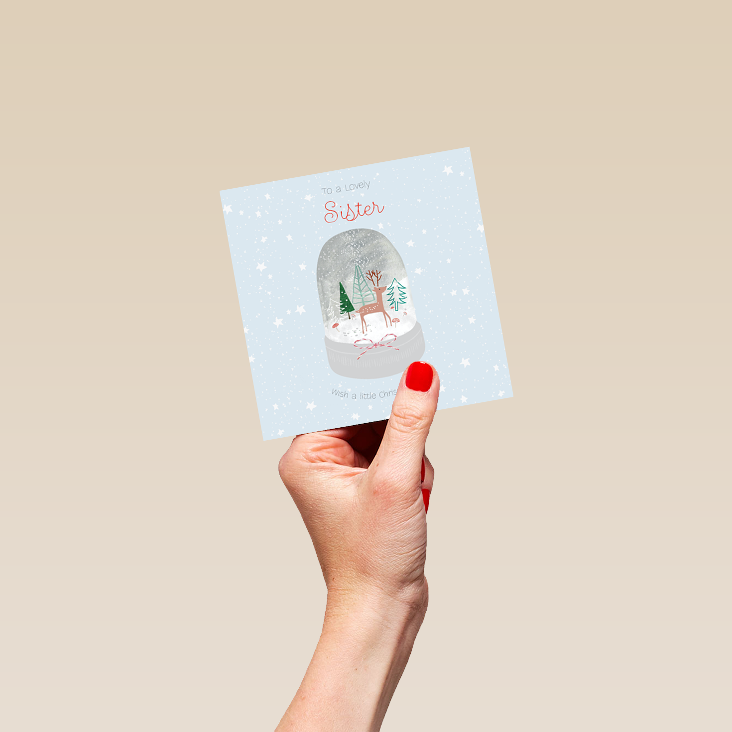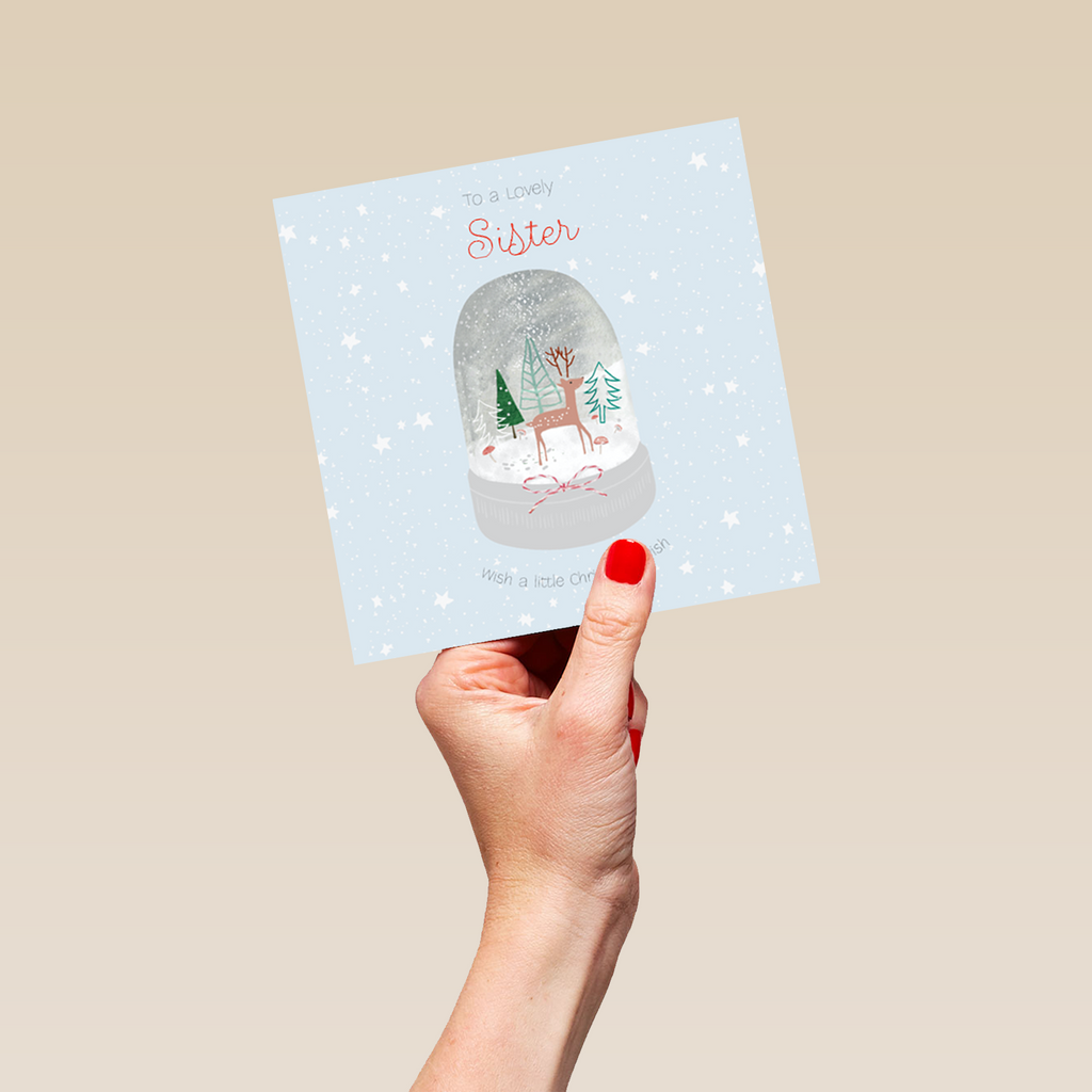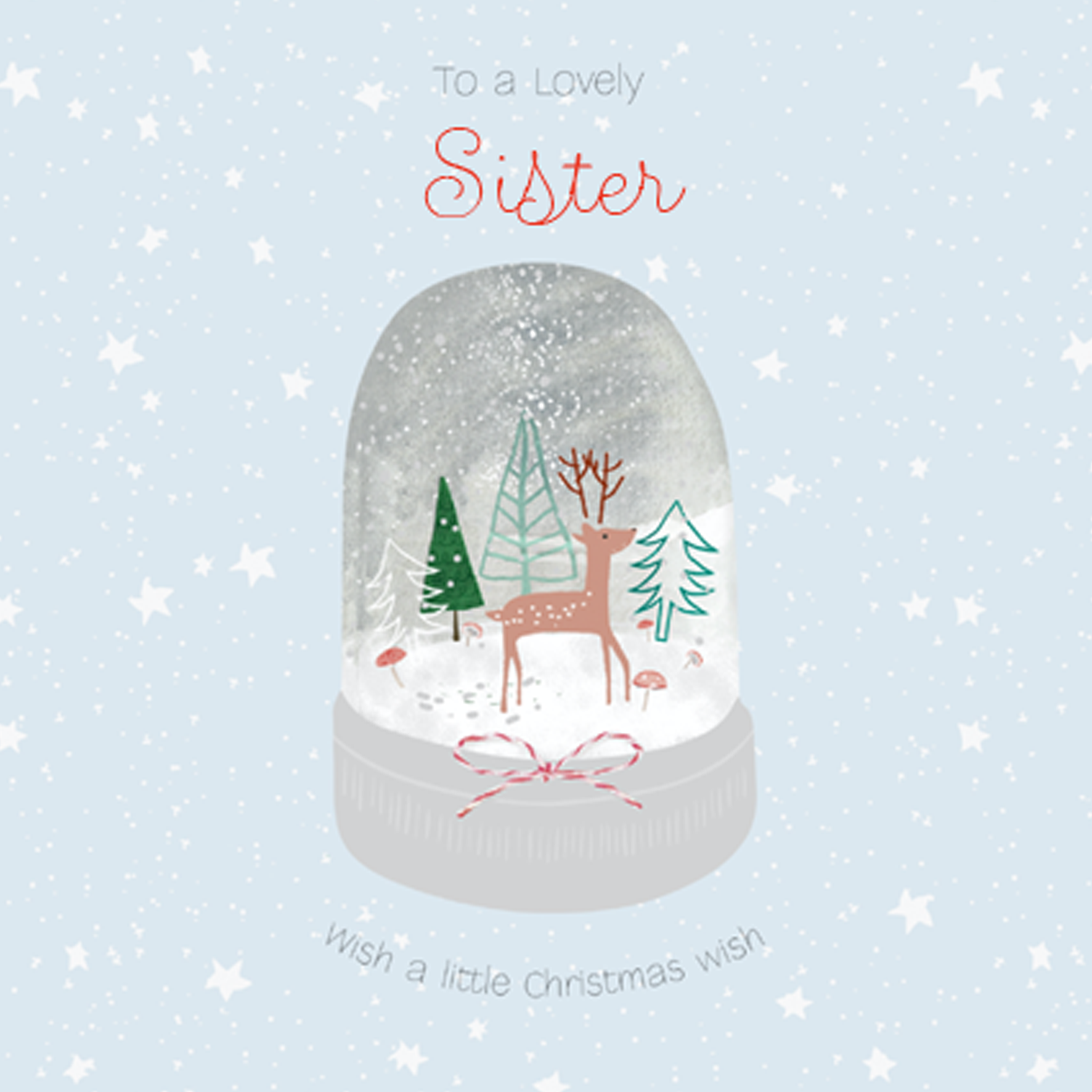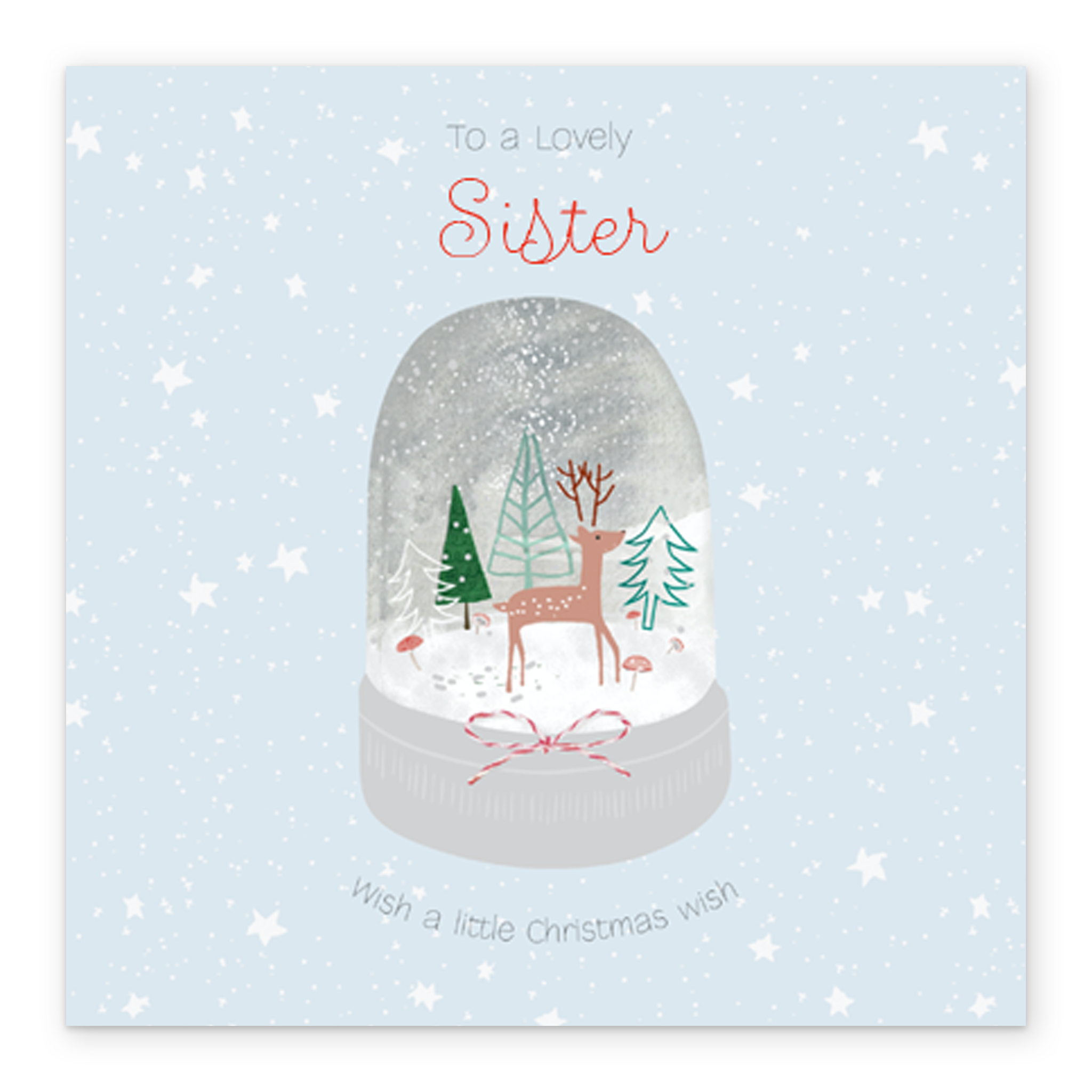 Show them you care with a personalised sister deer snow globe Christmas card from Hallmark. Our greetings cards are printed on premium quality, FSC®-certified card & delivered nationwide. This card is available as standard 12cm by 12cm and large 15cm by 15cm.