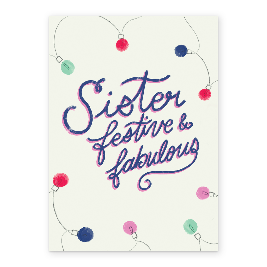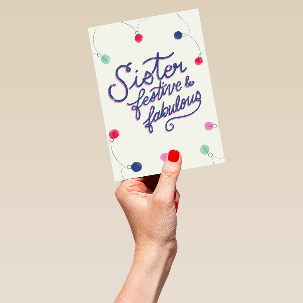 Show them you care with a personalised sister festive and fabulous Christmas card from Hallmark. Our greetings cards are printed on premium quality, FSC®-certified card & delivered nationwide. This card is available as standard 12cm by 16.7cm and large 15.5cm by 21.6cm.