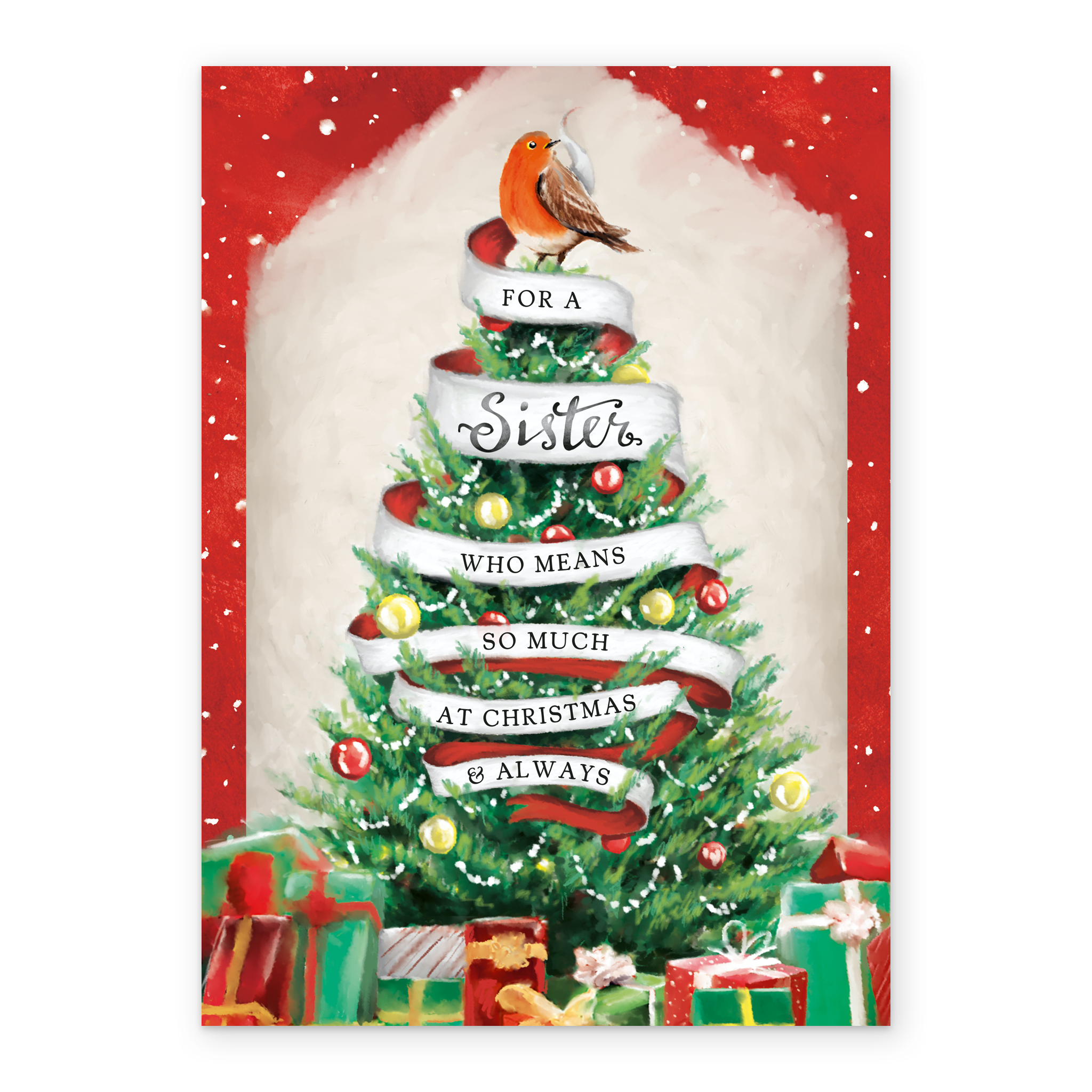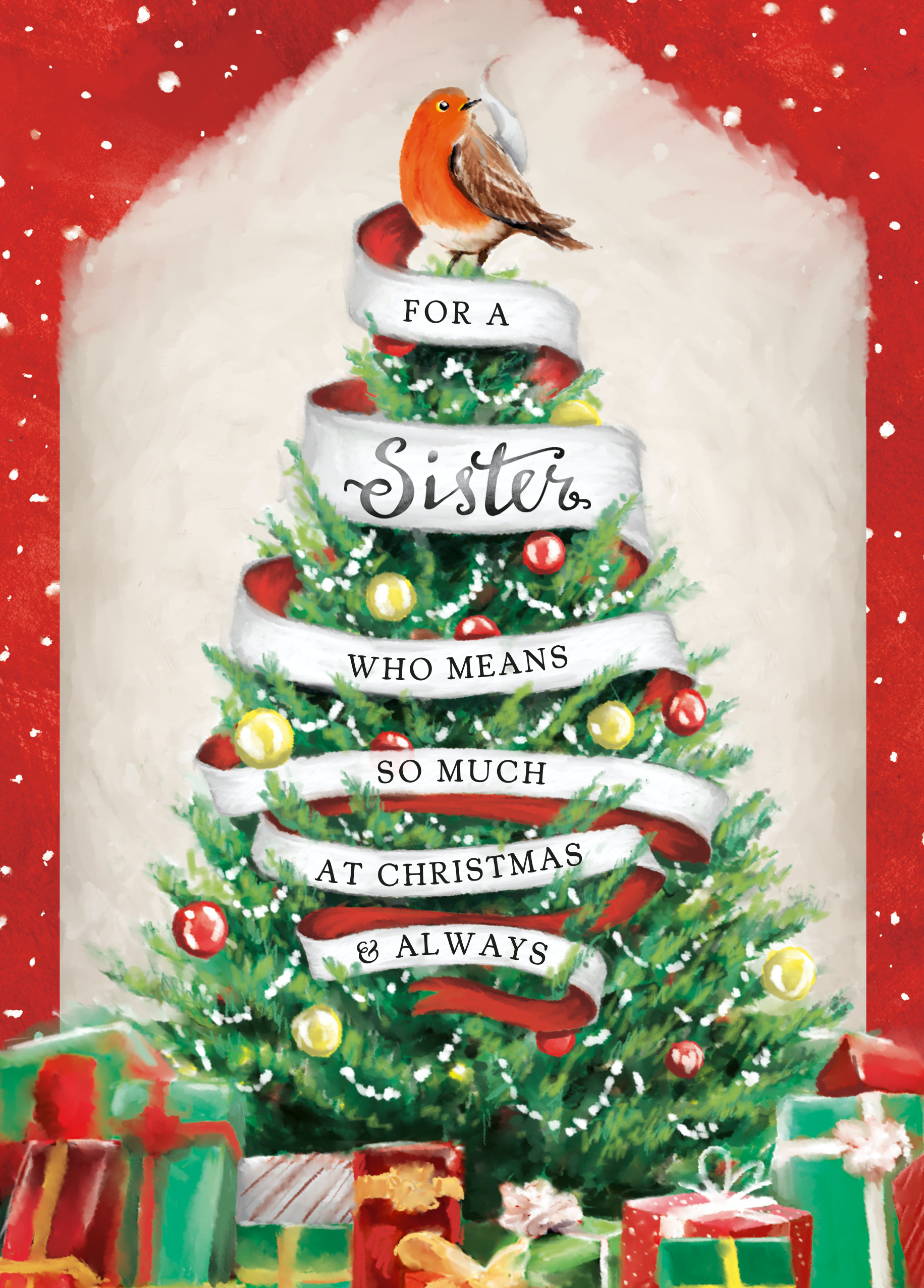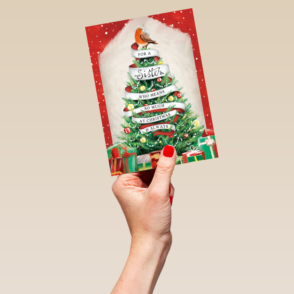 Show them you care with a personalised sister gifts & tree Christmas card from Hallmark. Our greetings cards are printed on premium quality, FSC®-certified card & delivered nationwide. This card is available as standard 12cm by 16.7cm and large 15.5cm by 21.6cm.