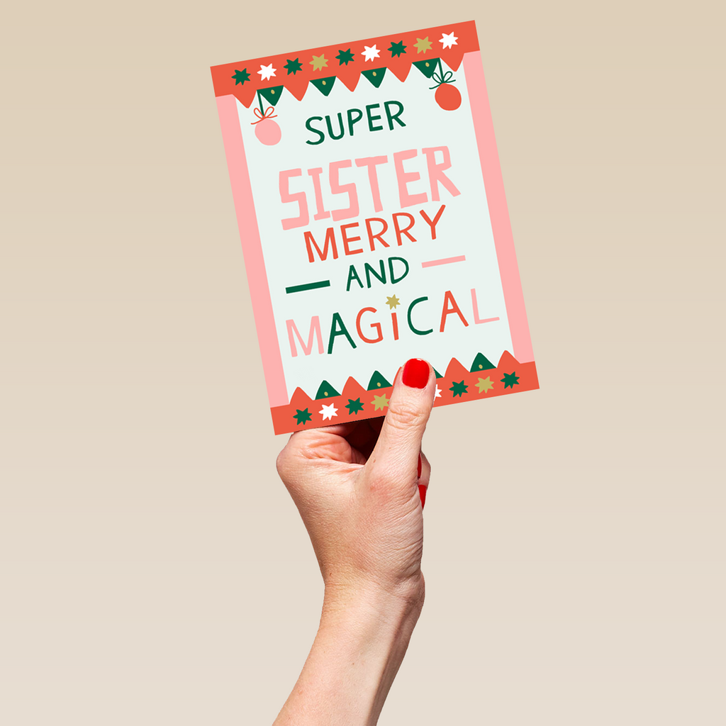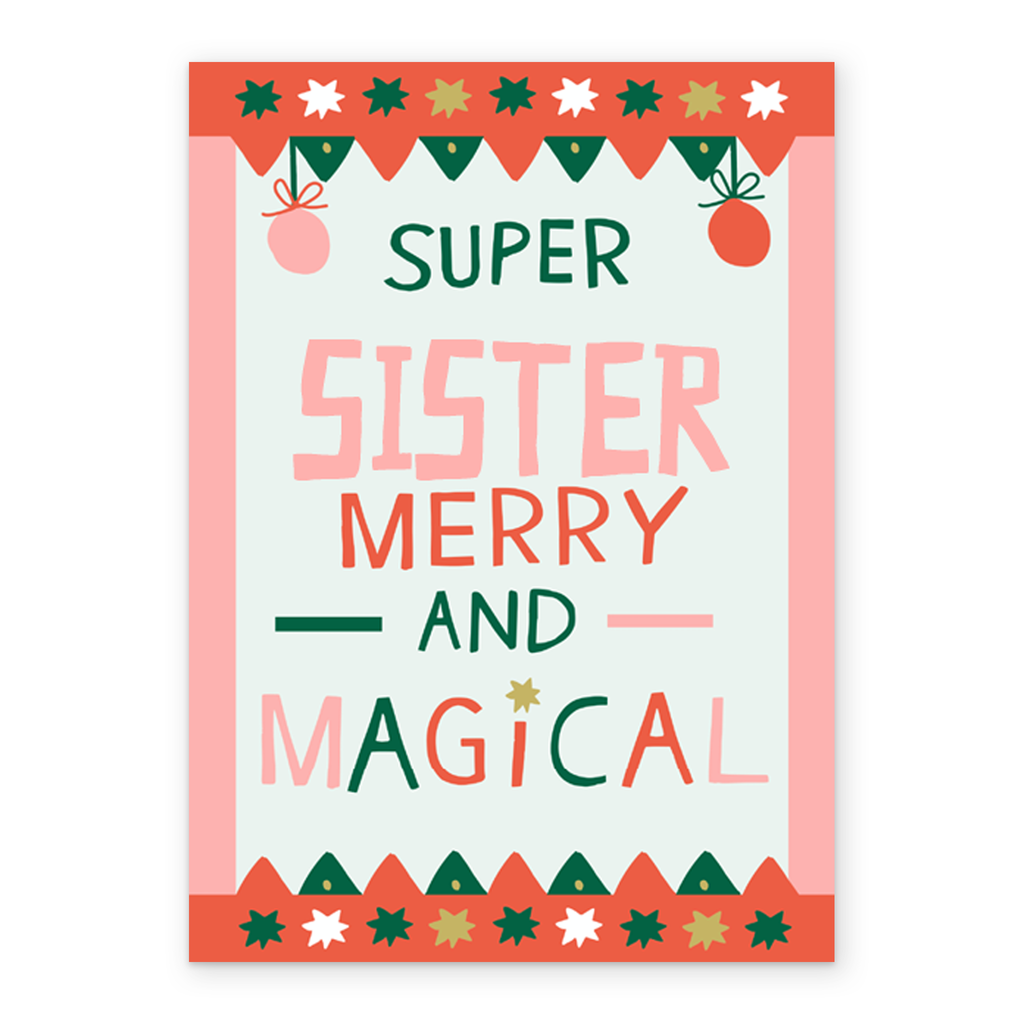 Personalised Sister Super Merry And Magical Christmas Card