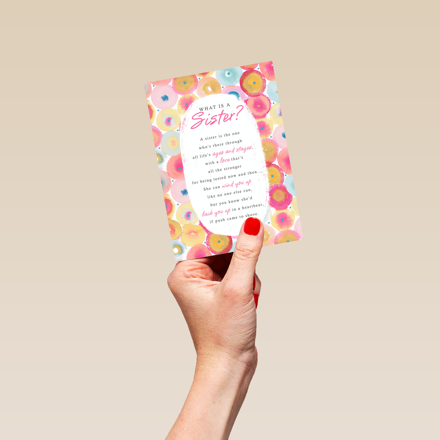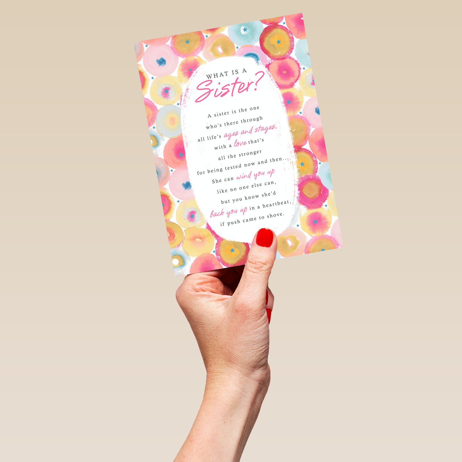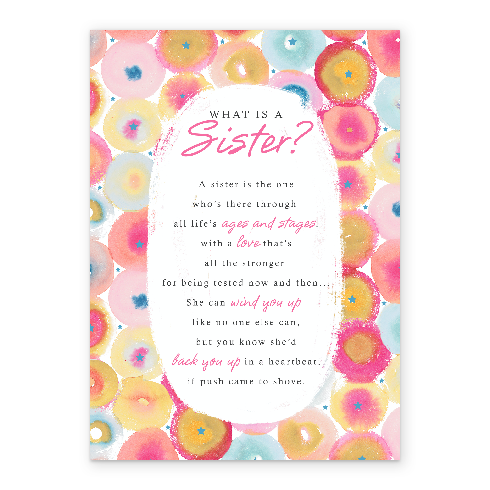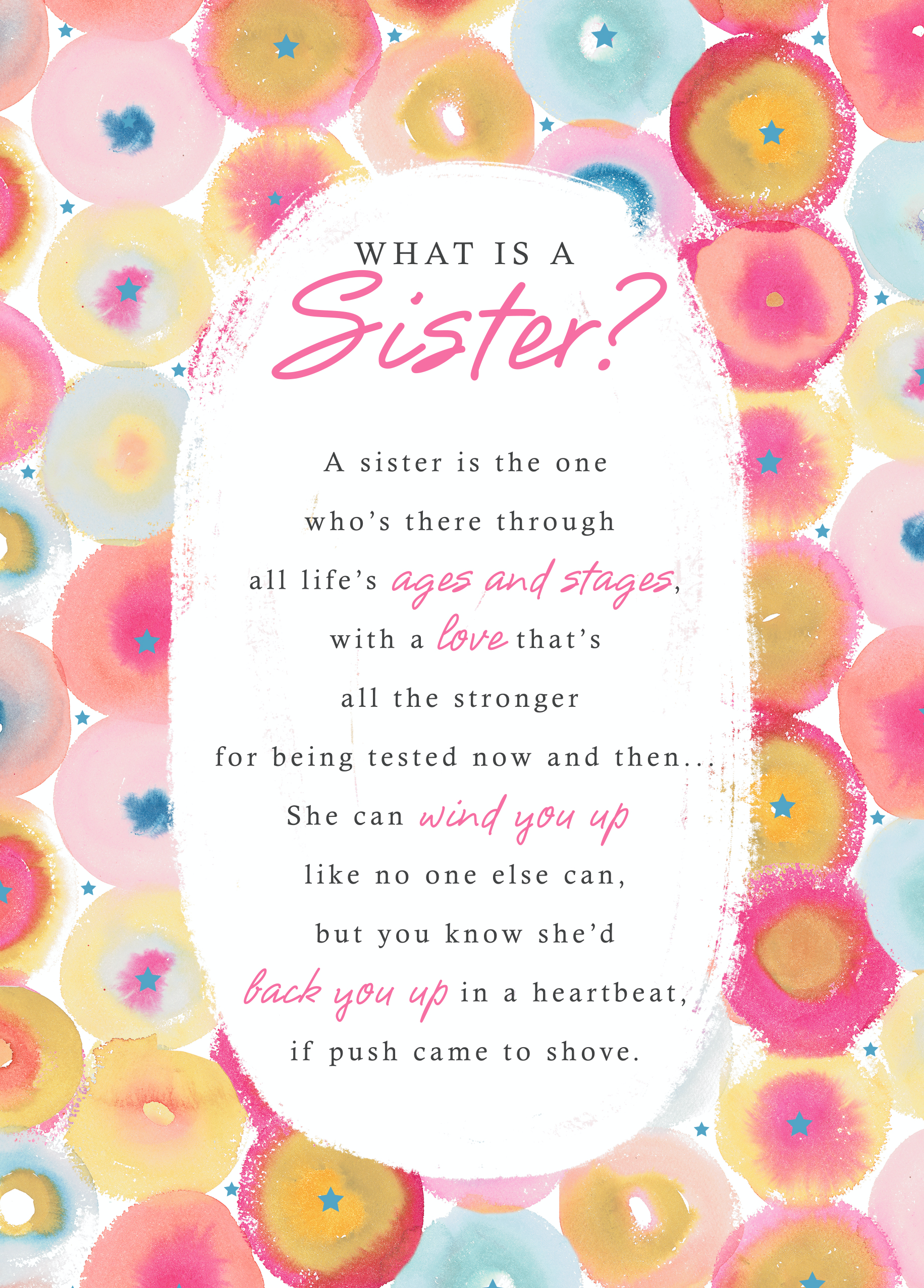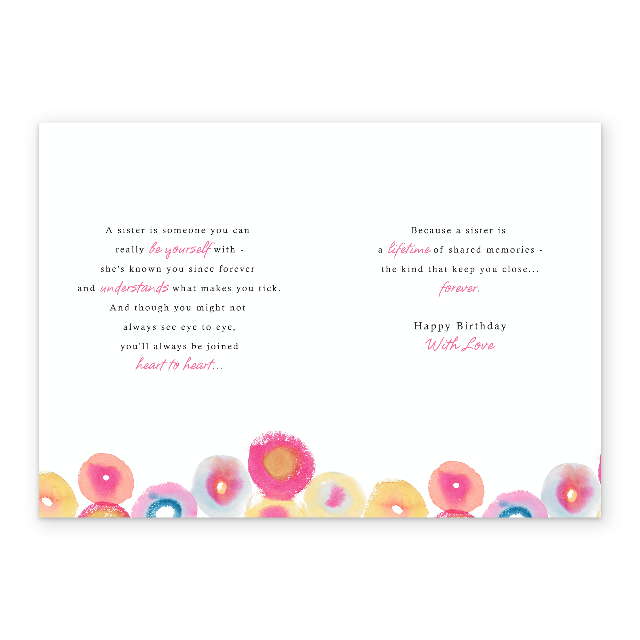 Show them you care with a personalised sister traditional poem card from Hallmark. Our birthday cards are printed on premium quality, FSC®-certified card & delivered nationwide. This card is available as standard 12cm by 16.7cm and large 15.5cm by 21.6cm.