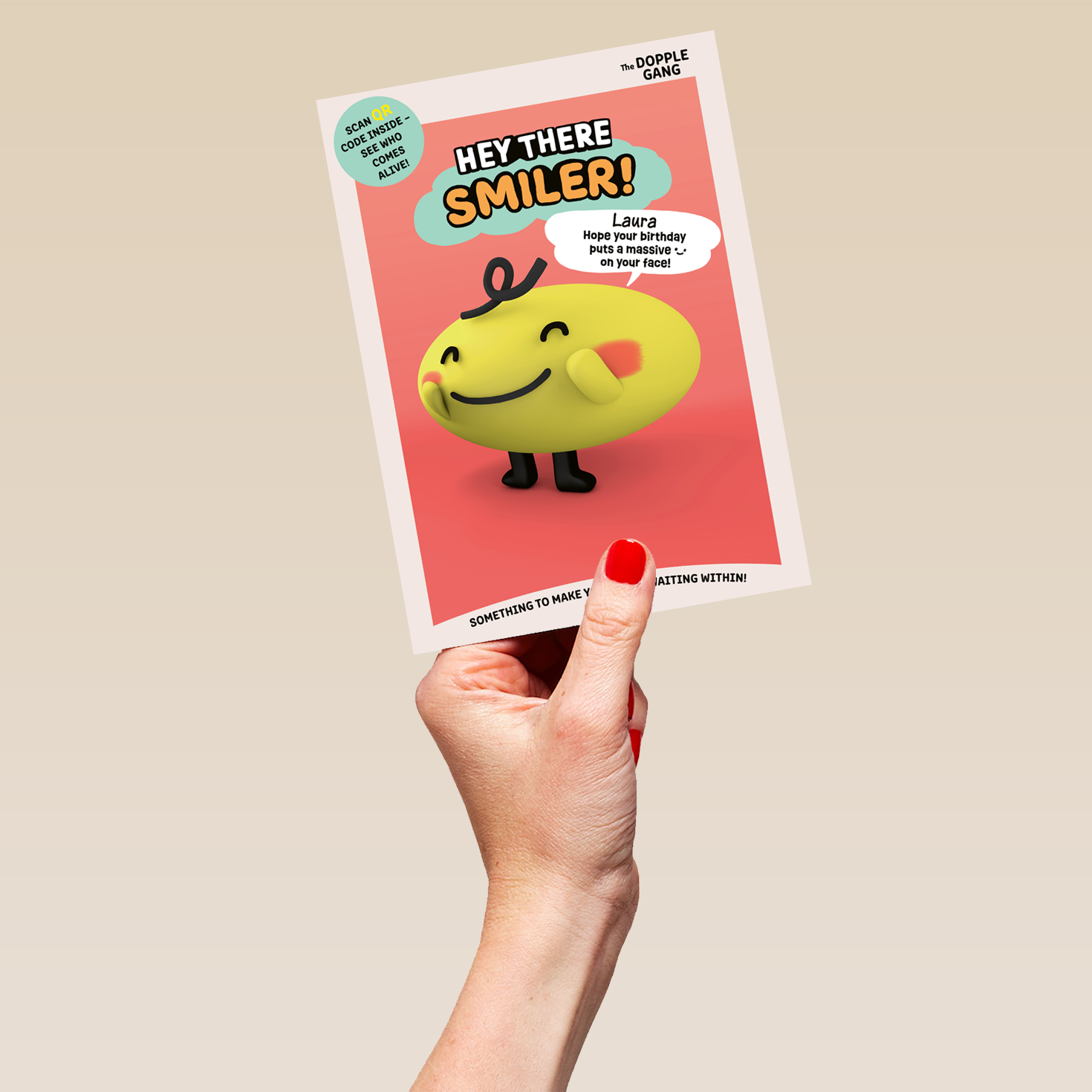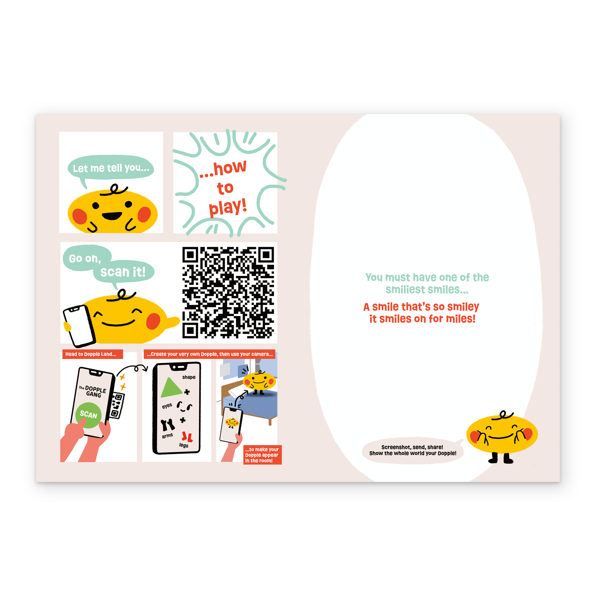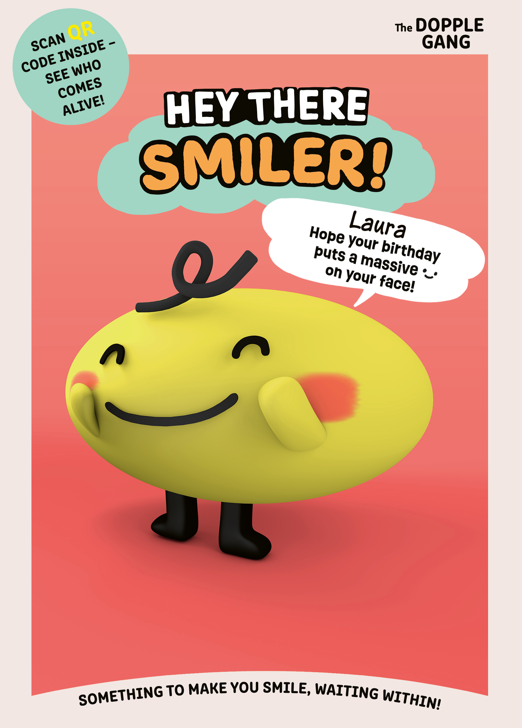 Printed on premium-quality board, this card features The Dopple Gang character Smiler, and includes a QR code you can scan to see the character come to life.