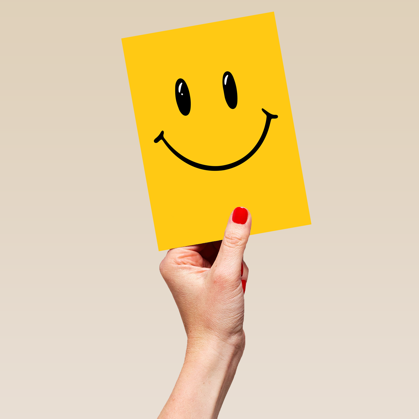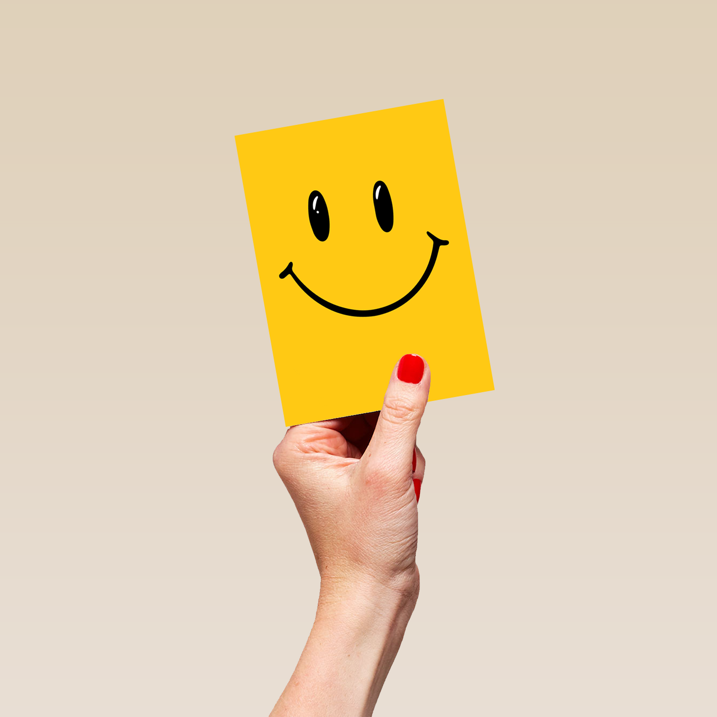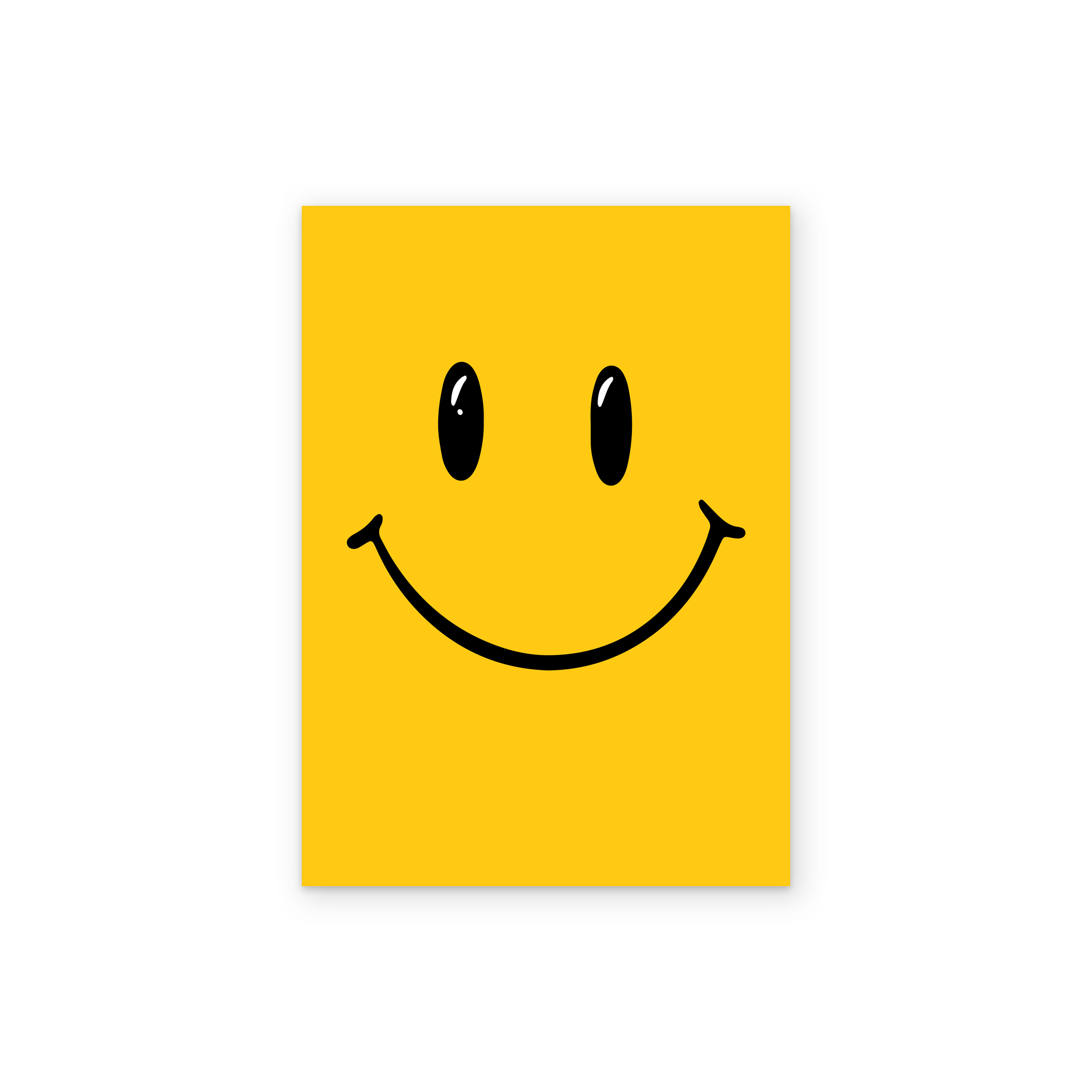 Printed on premium-quality board, this card features a rich yellow background with emoji style 'smiley face' eyes and mouth in the centre in black, and comes complete with a co-ordinating white envelope.