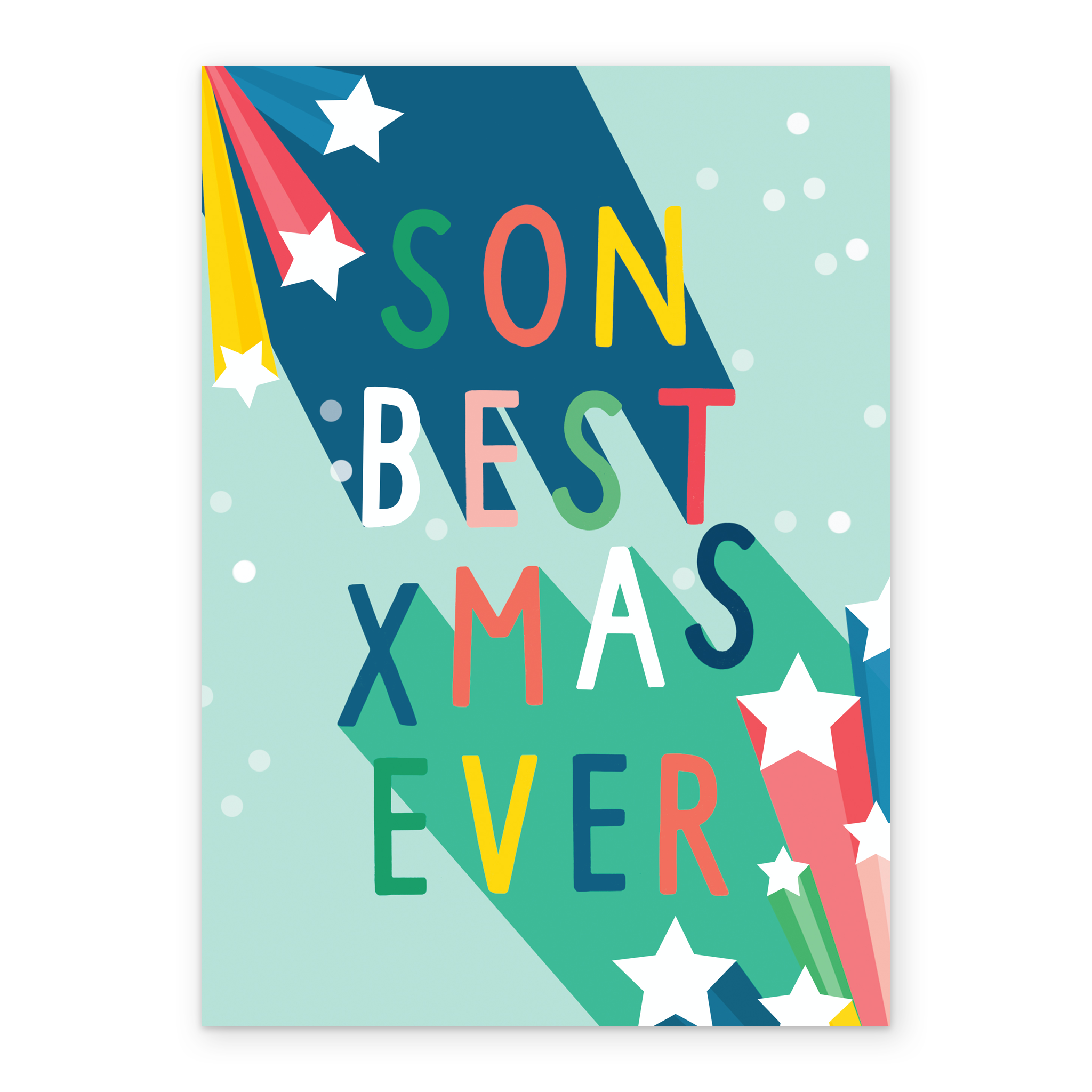 Show them you care with a personalised son best xmas ever Christmas card from Hallmark. Our greetings cards are printed on premium quality, FSC®-certified card & delivered nationwide. This card is available as standard 12cm by 16.7cm and large 15.5cm by 21.6cm.