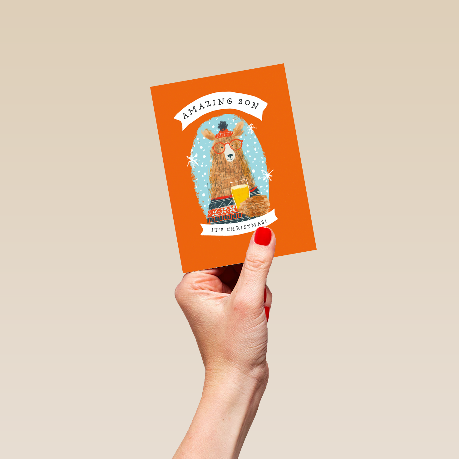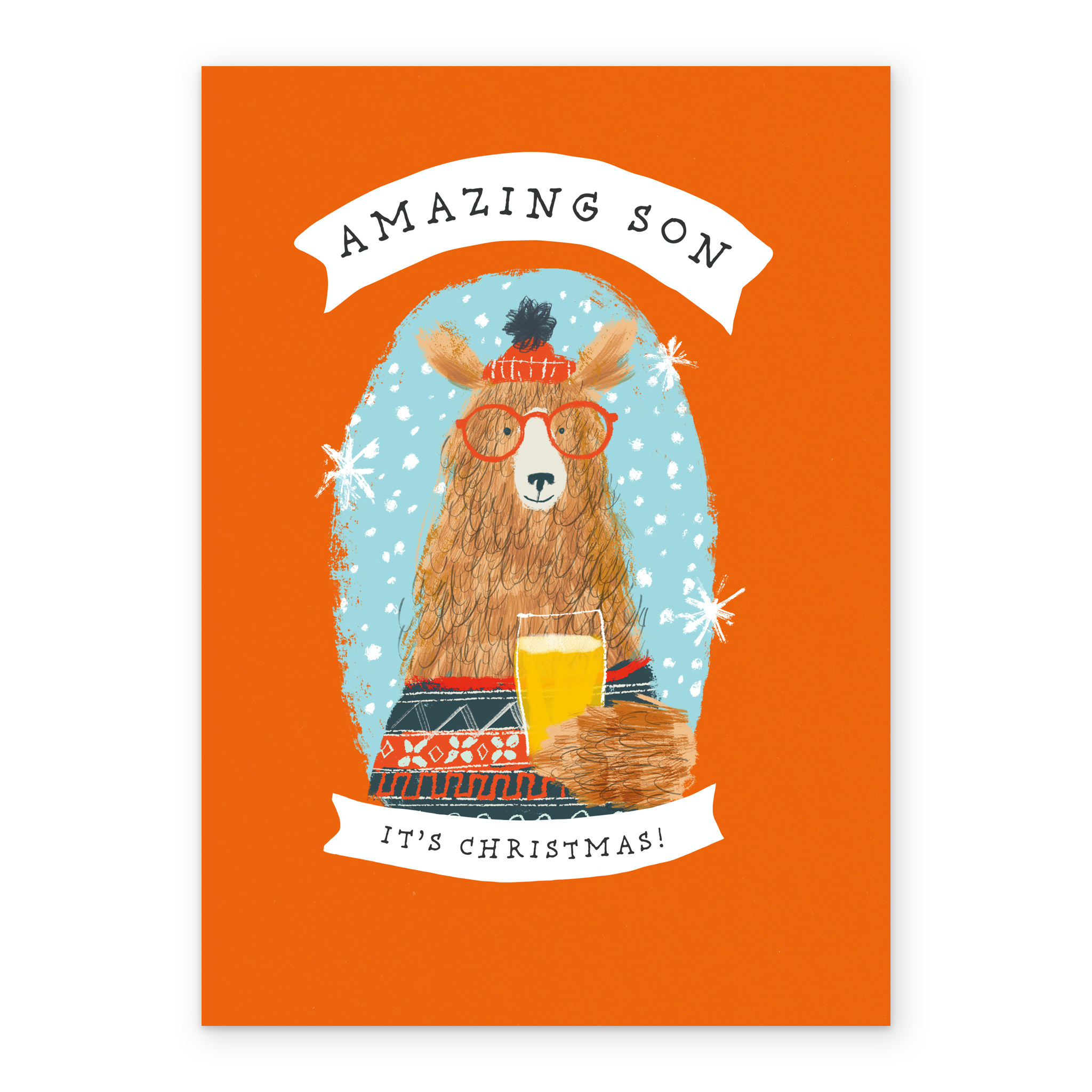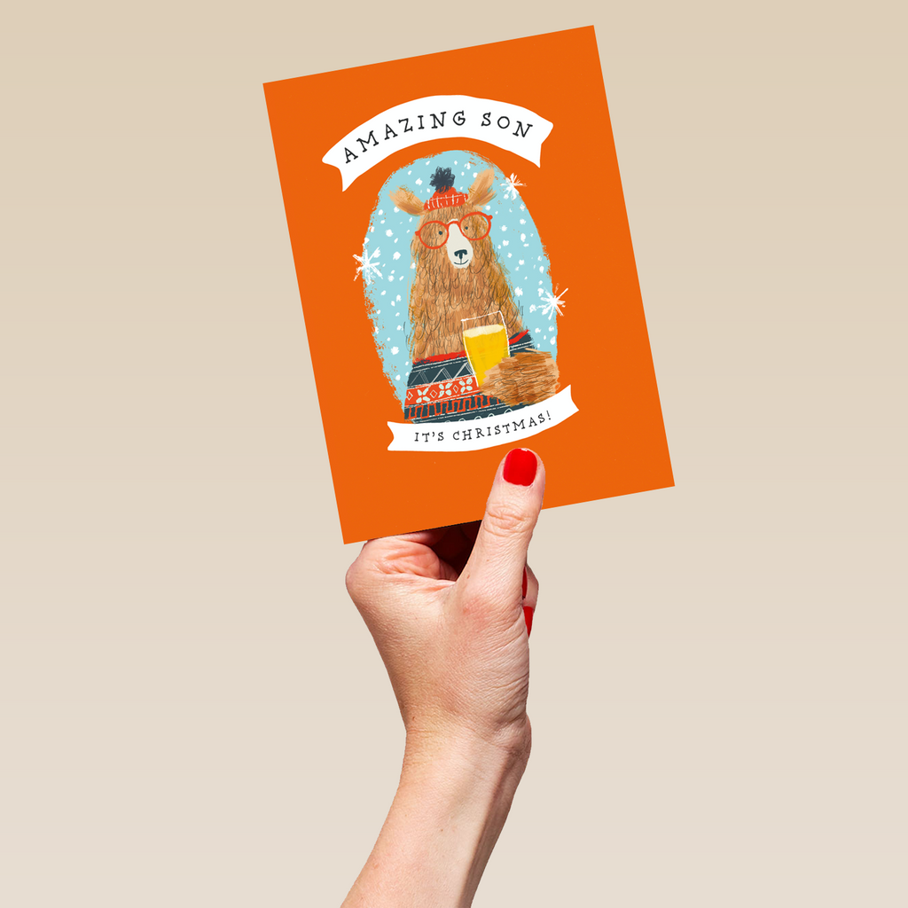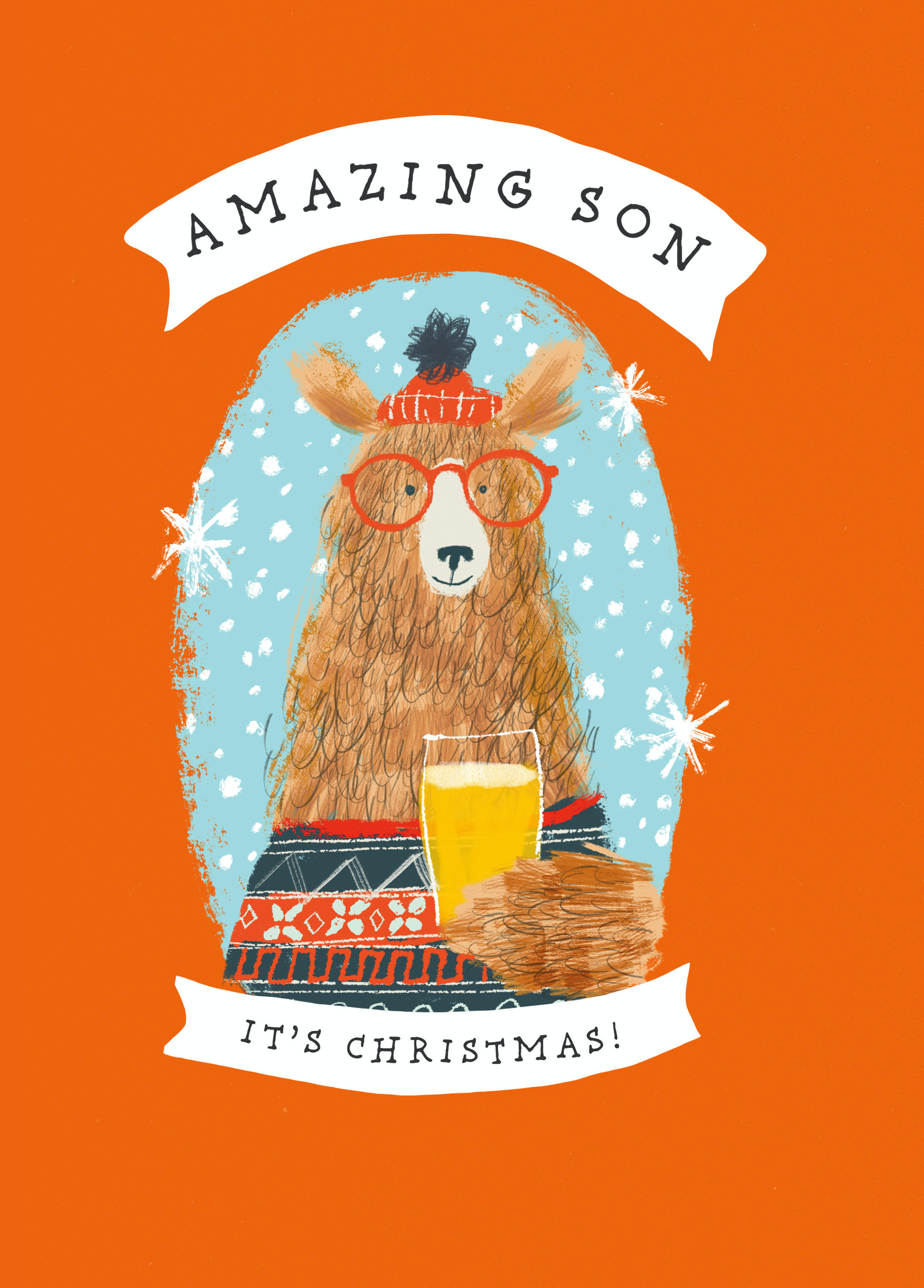 Show them you care with a personalised son cute bear in sweater Christmas card from Hallmark. Our greetings cards are printed on premium quality, FSC®-certified card & delivered nationwide. This card is available as standard 12cm by 16.7cm and large 15.5cm by 21.6cm.