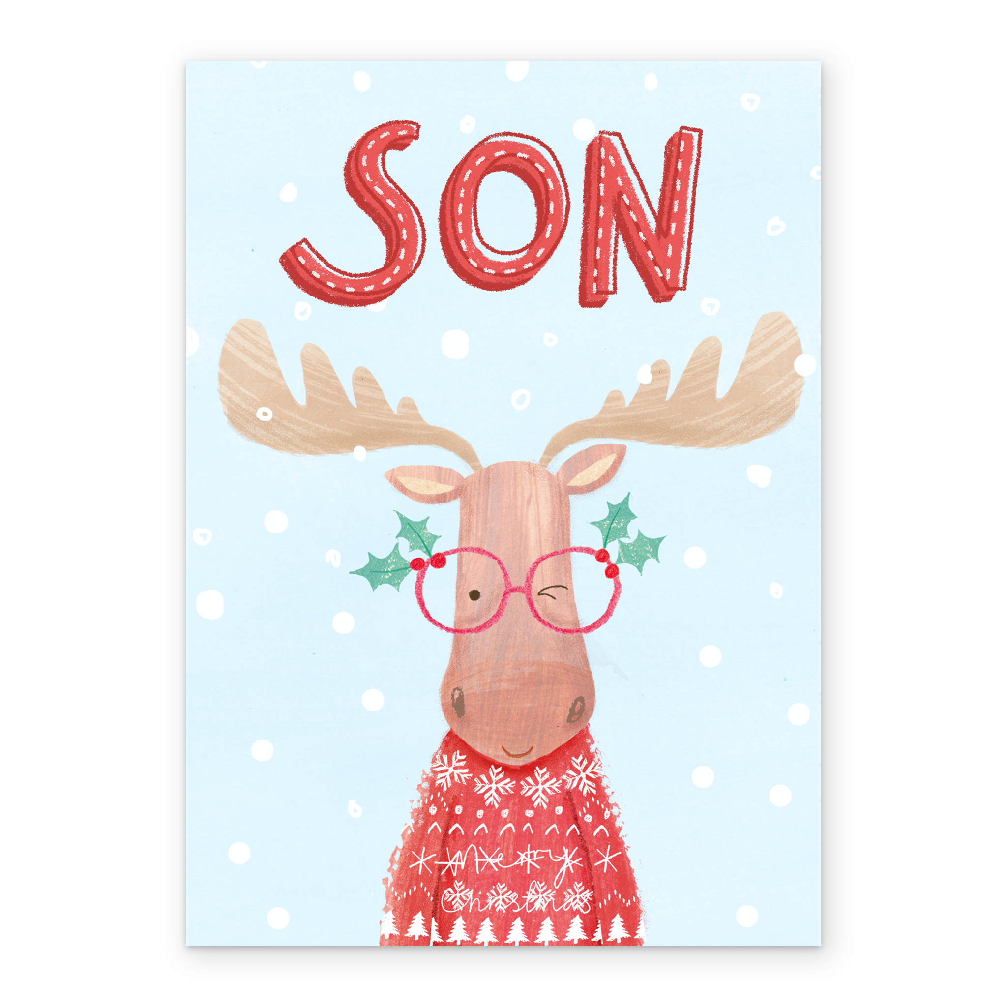 Show them you care with a personalised son cute winking reindeer Christmas card from Hallmark.... View more details