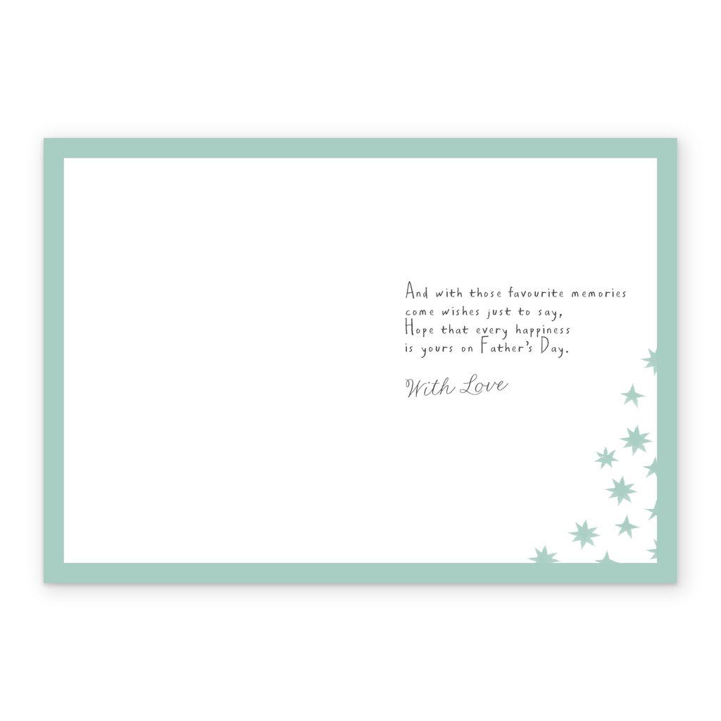 Message inside reads: And with those favourite memories come wishes just to say, Hope that every happiness is yours on Father's Day. With Love