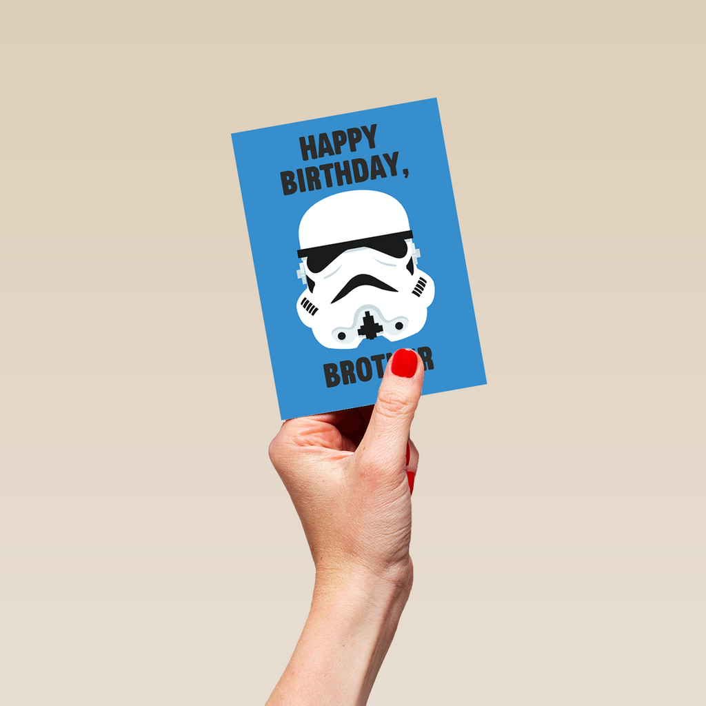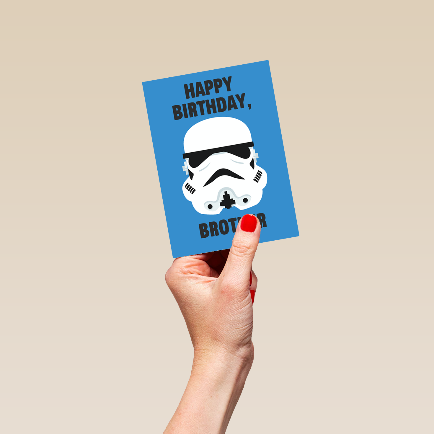 Show them you care with a personalised Star Wars™ stormtroopers birthday card for brother from Hallmark. Our birthday cards are printed on premium quality, FSC®-certified card & delivered nationwide. This card is available as standard 12cm by 16.7cm and large 15.5cm by 21.6cm.