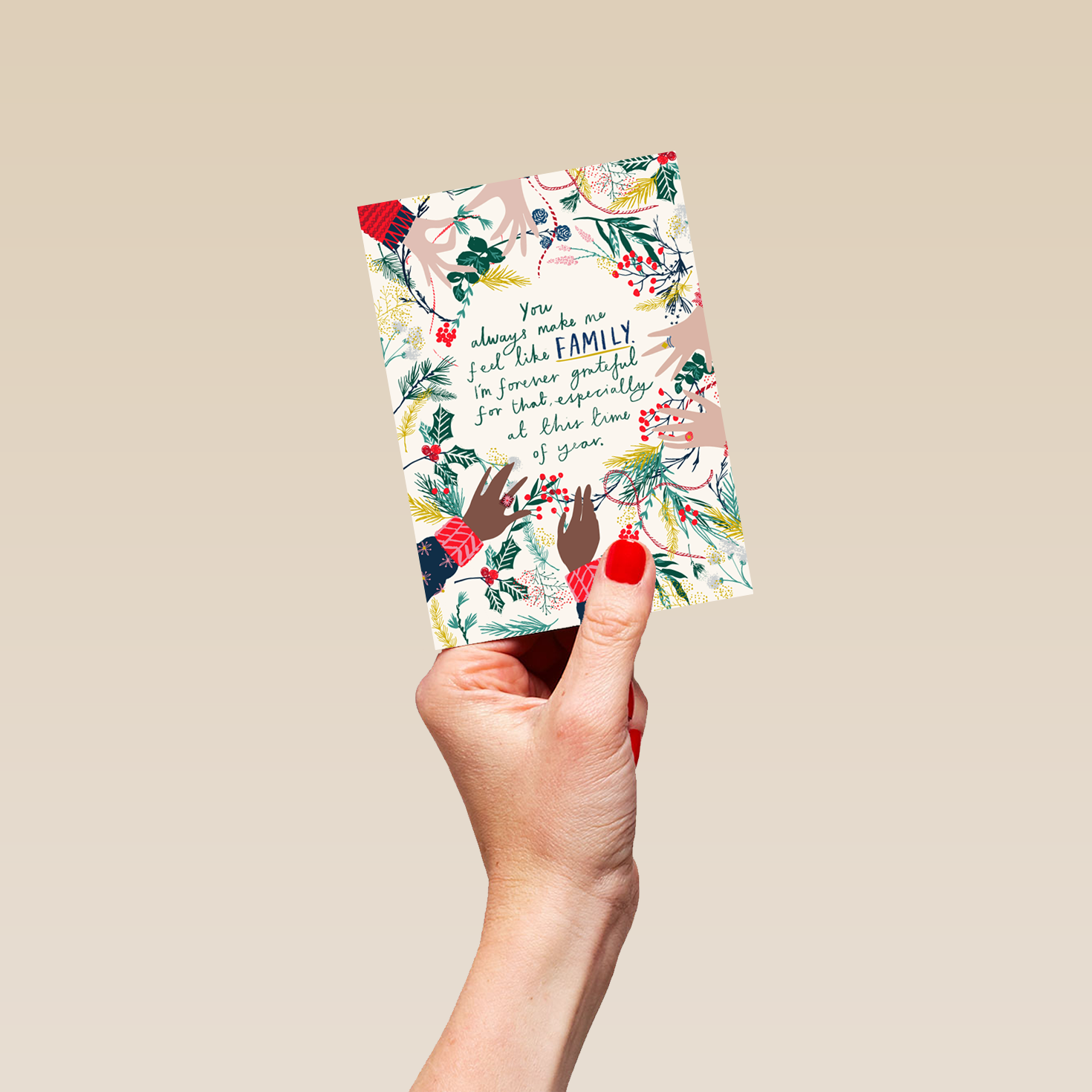 Show them you care with a personalised State of Kind family together card from Hallmark. Our Christmas cards are printed on premium quality, FSC®-certified card & delivered nationwide. This card is available as standard 12cm by 16.7cm and large 15.5cm by 21.6cm.