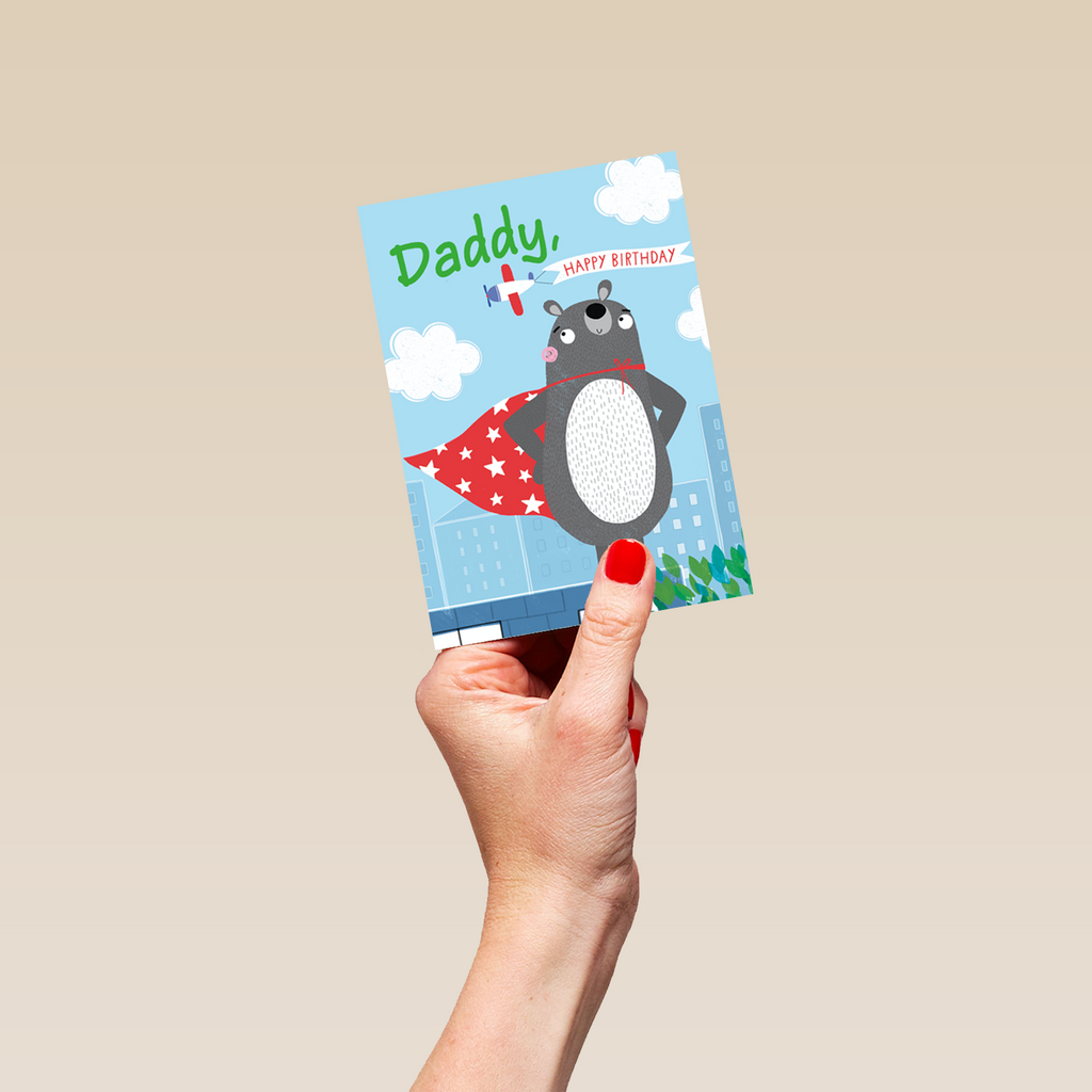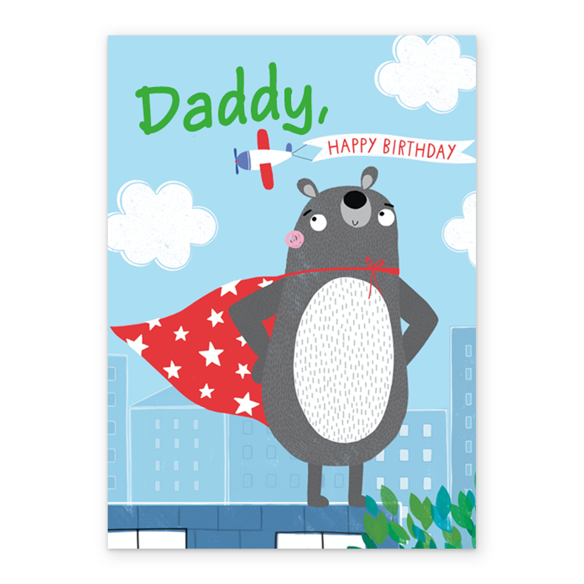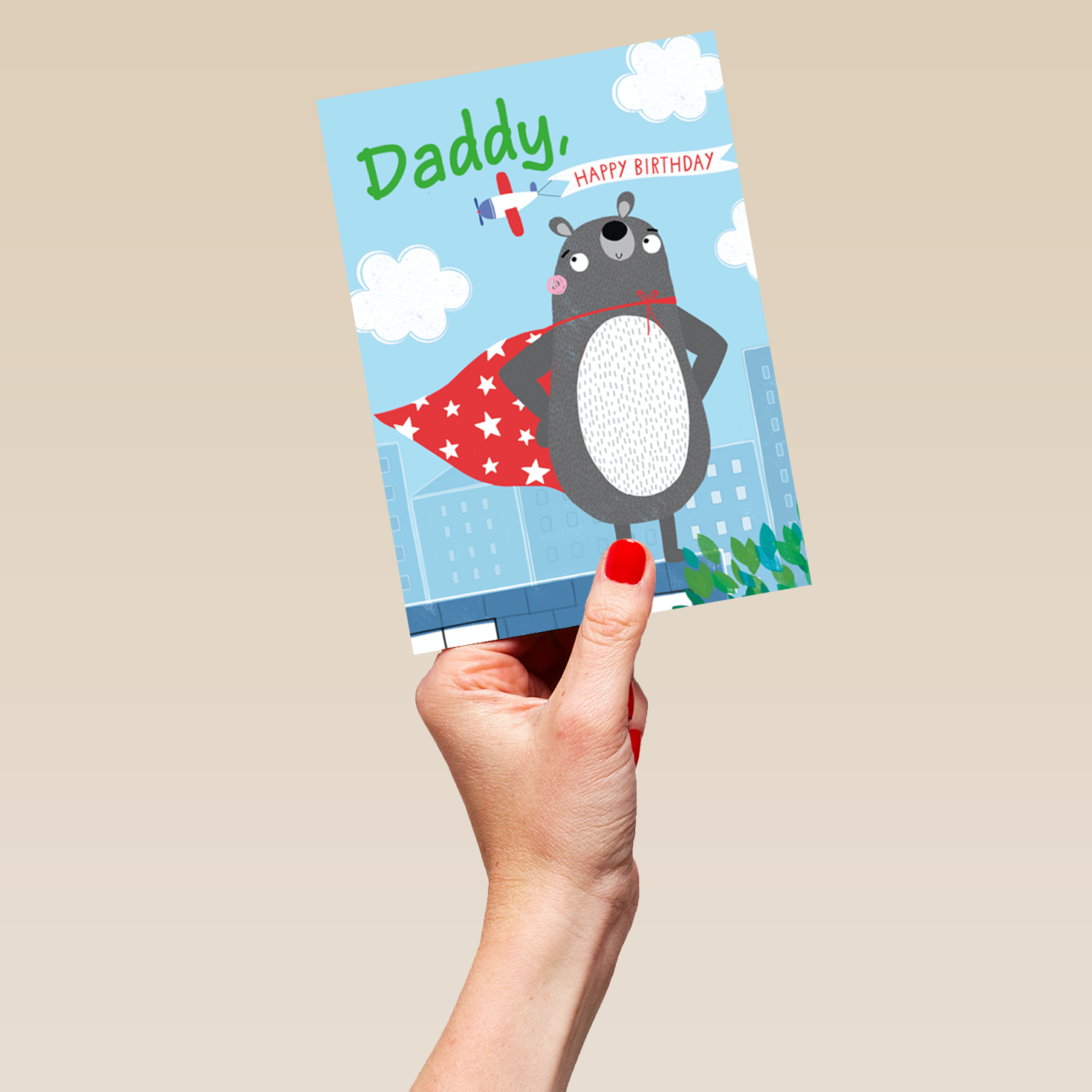 Show them you care with a personalised superhero bear dad birthday card from Hallmark. Our birthday cards are printed on premium quality, FSC®-certified card & delivered nationwide. This card is available as standard 12cm by 16.7cm and large 15.5cm by 21.6cm.