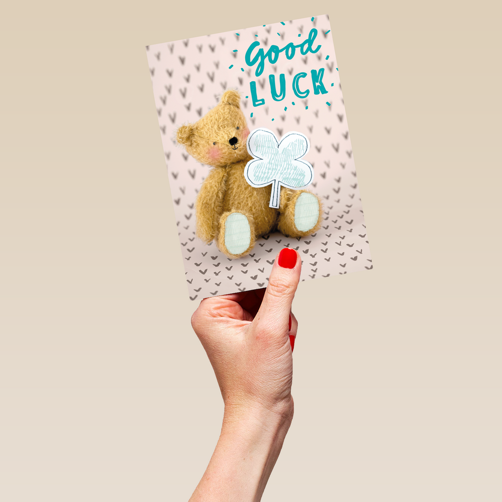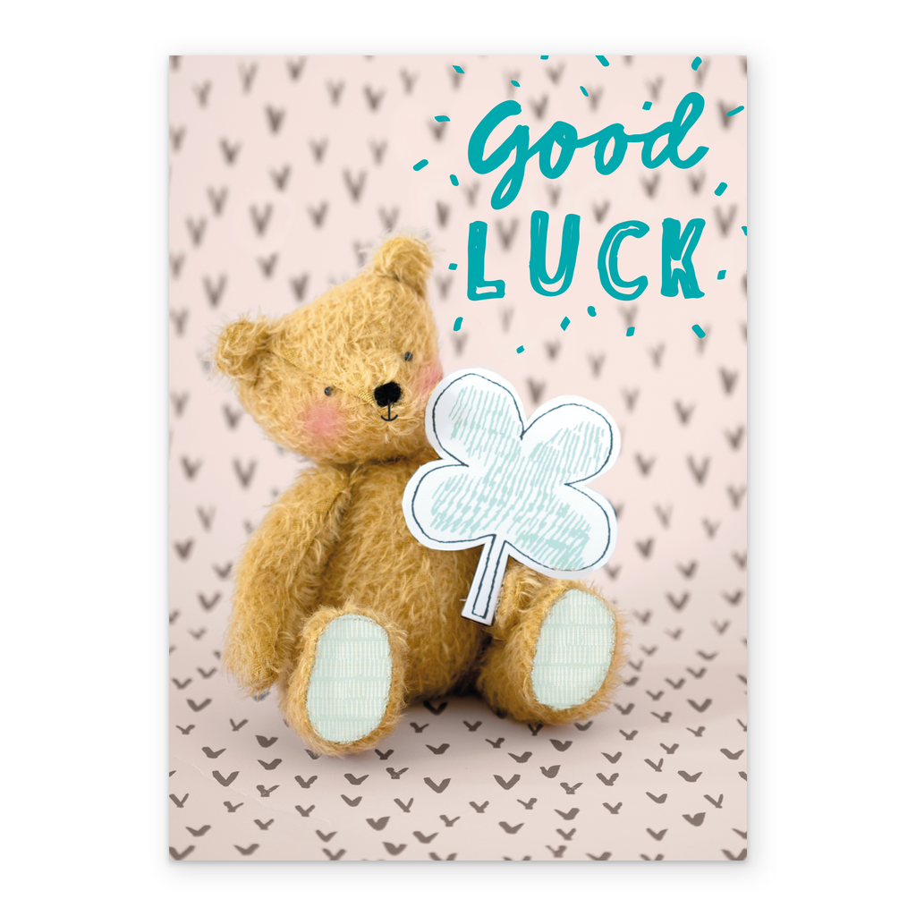 Show them you care with a personalised teddy bear good luck card from Hallmark. Our good luck cards are printed on premium quality, FSC®-certified card & delivered nationwide. This card is available as standard 12cm by 16.7cm and large 15.5cm by 21.6cm.