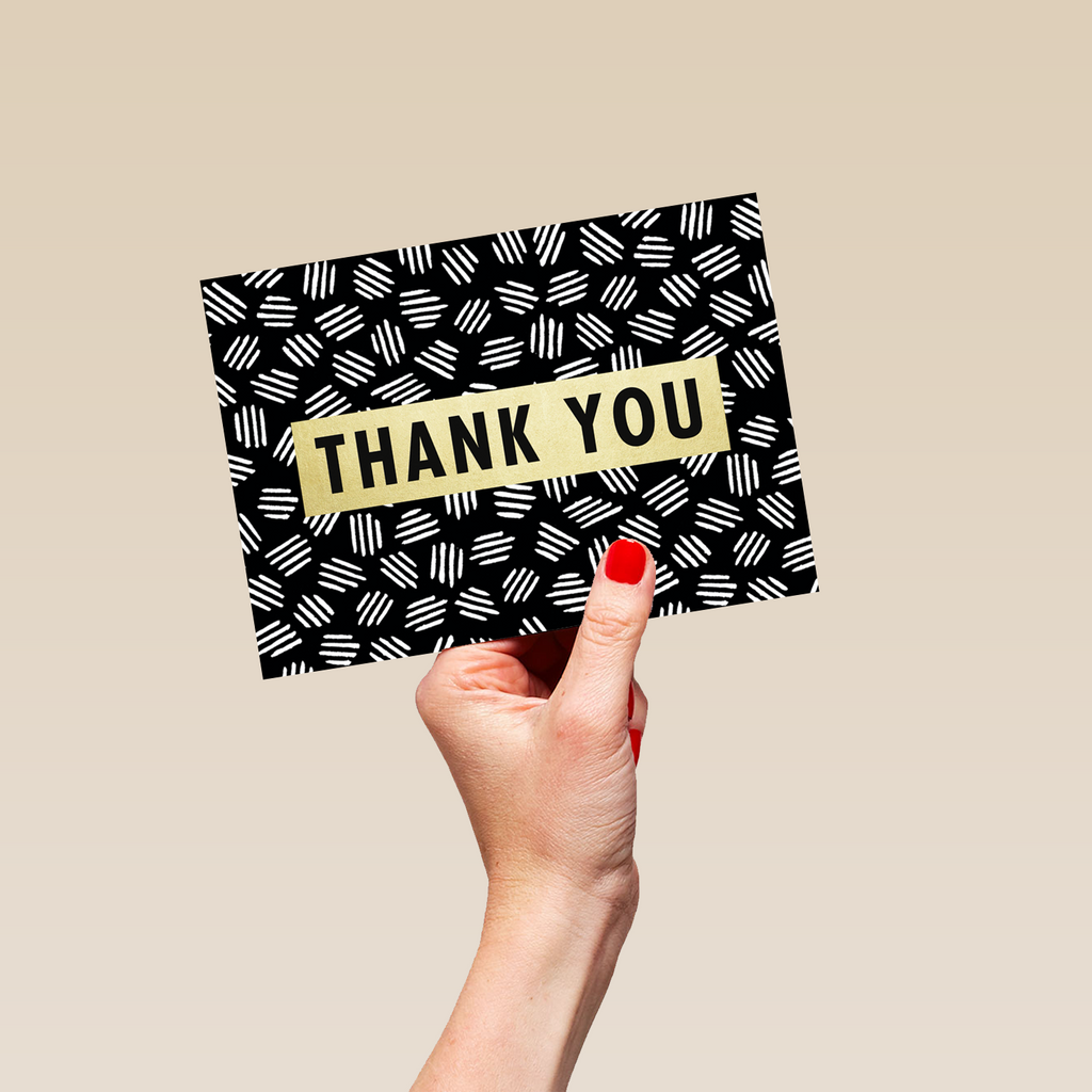 Show them you care with a personalised thank you business card from Hallmark. Our thank you cards are printed on premium quality, FSC®-certified card & delivered nationwide. This card is available as standard 16.7cm by 12cm and large 21.6cm by 15.5cm.