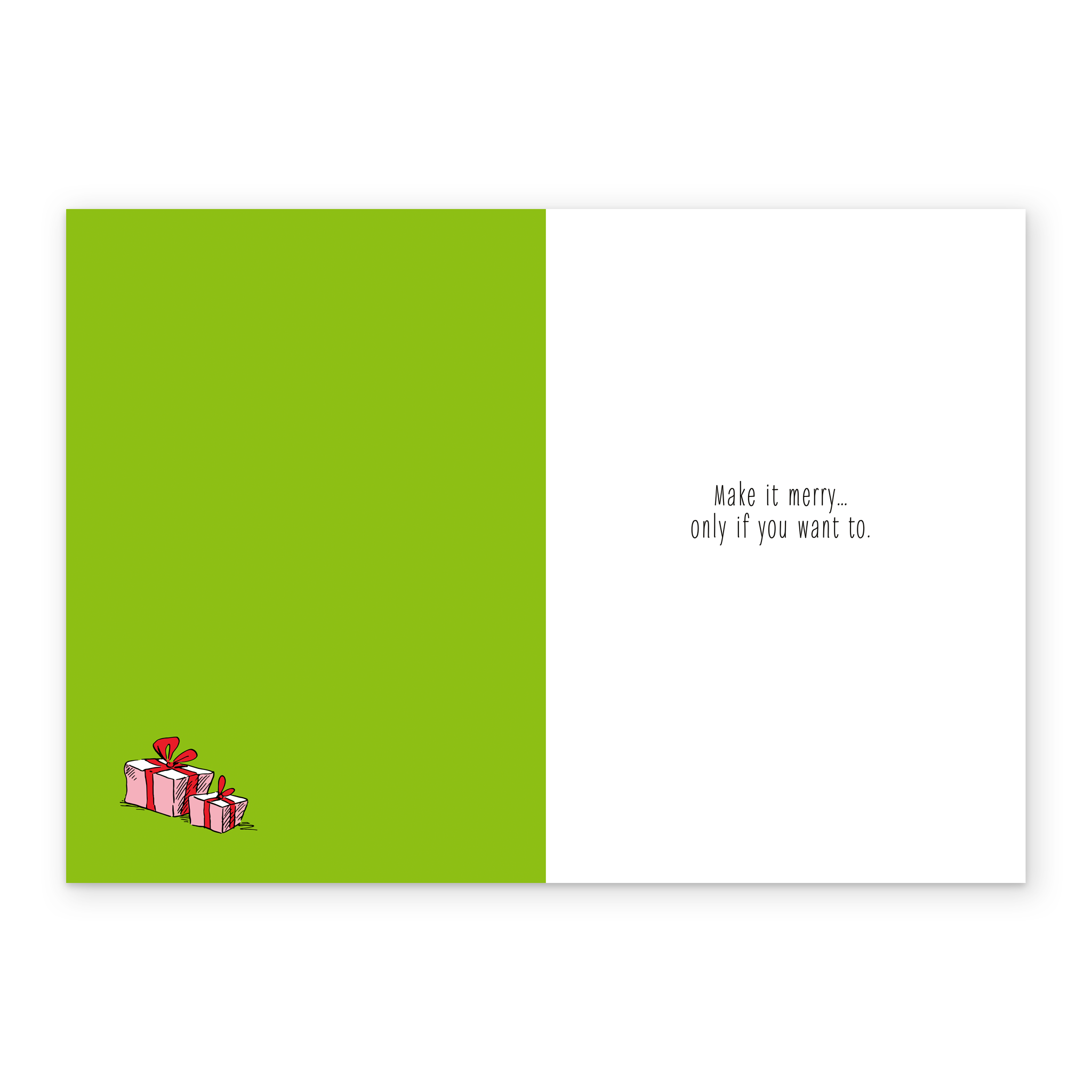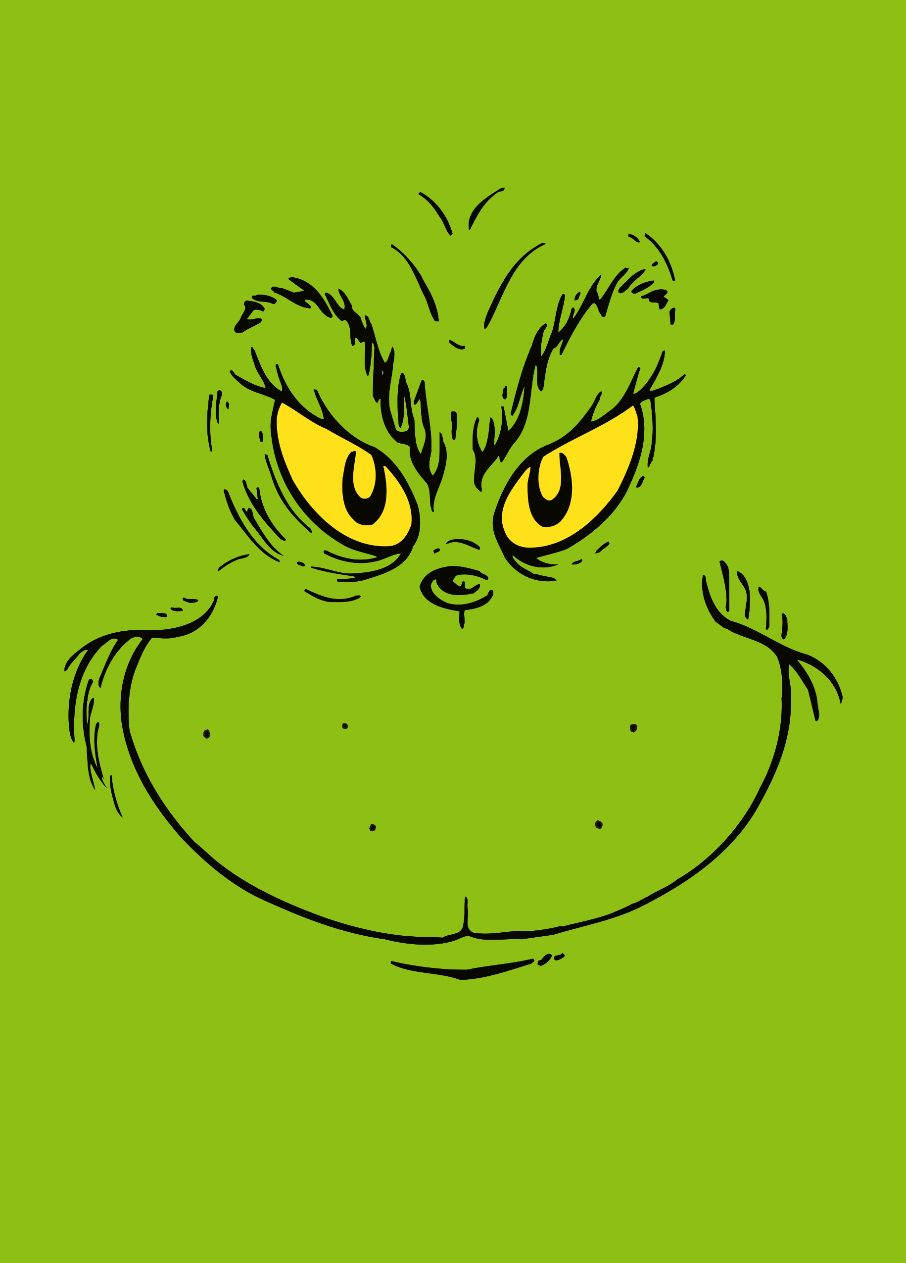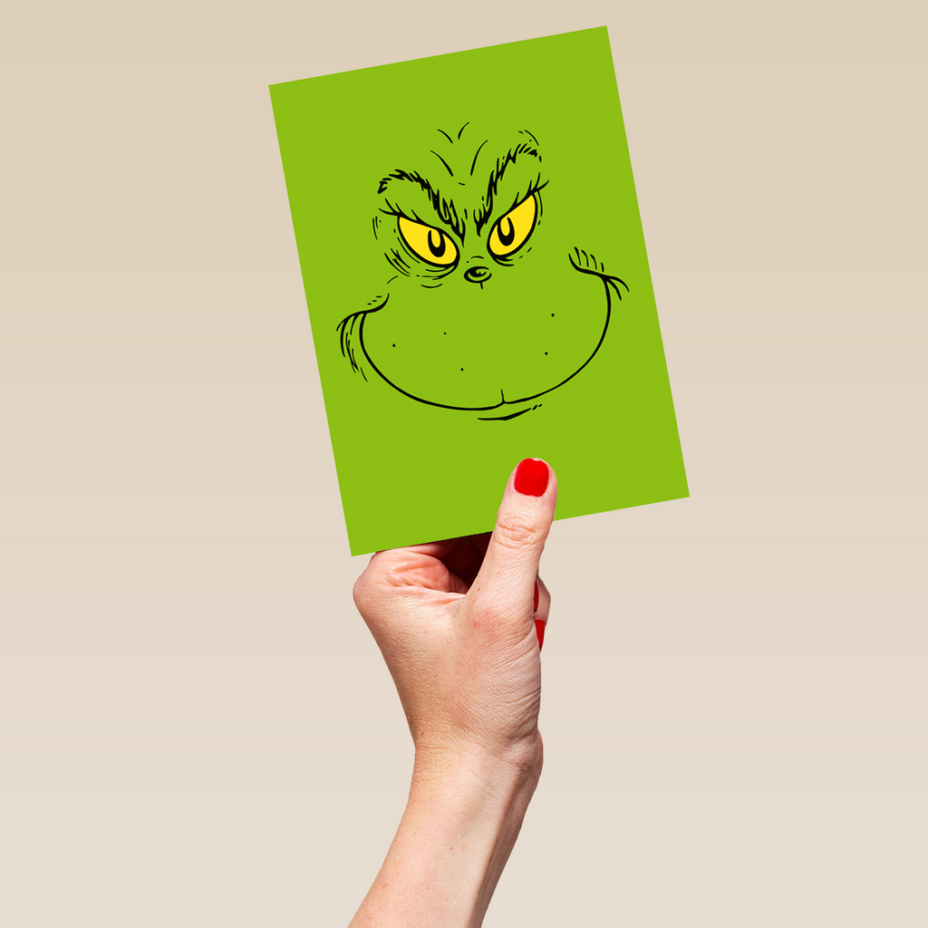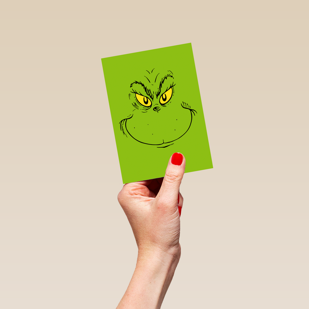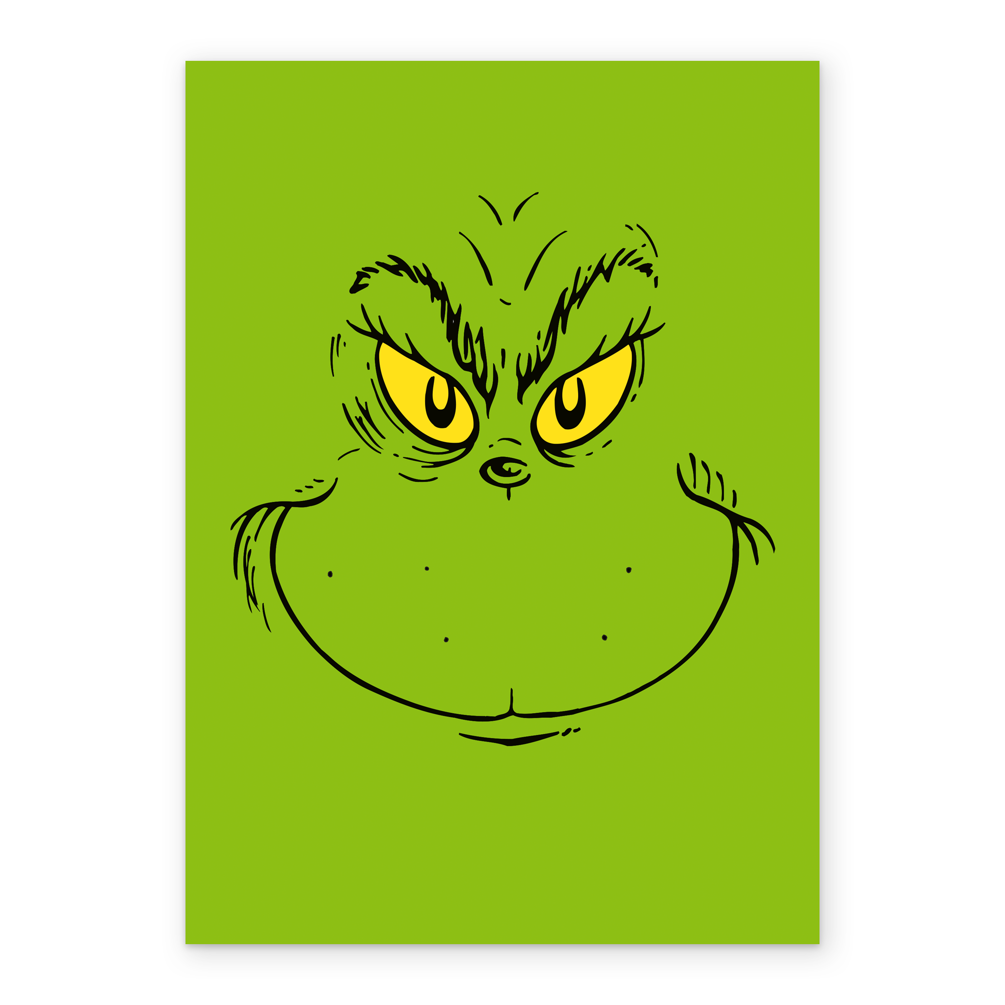 Printed on premium-quality board, this card features the Grinch's face from Dr Suess' How the Grinch Stole Christmas, and comes complete with a co-ordinating white envelope.