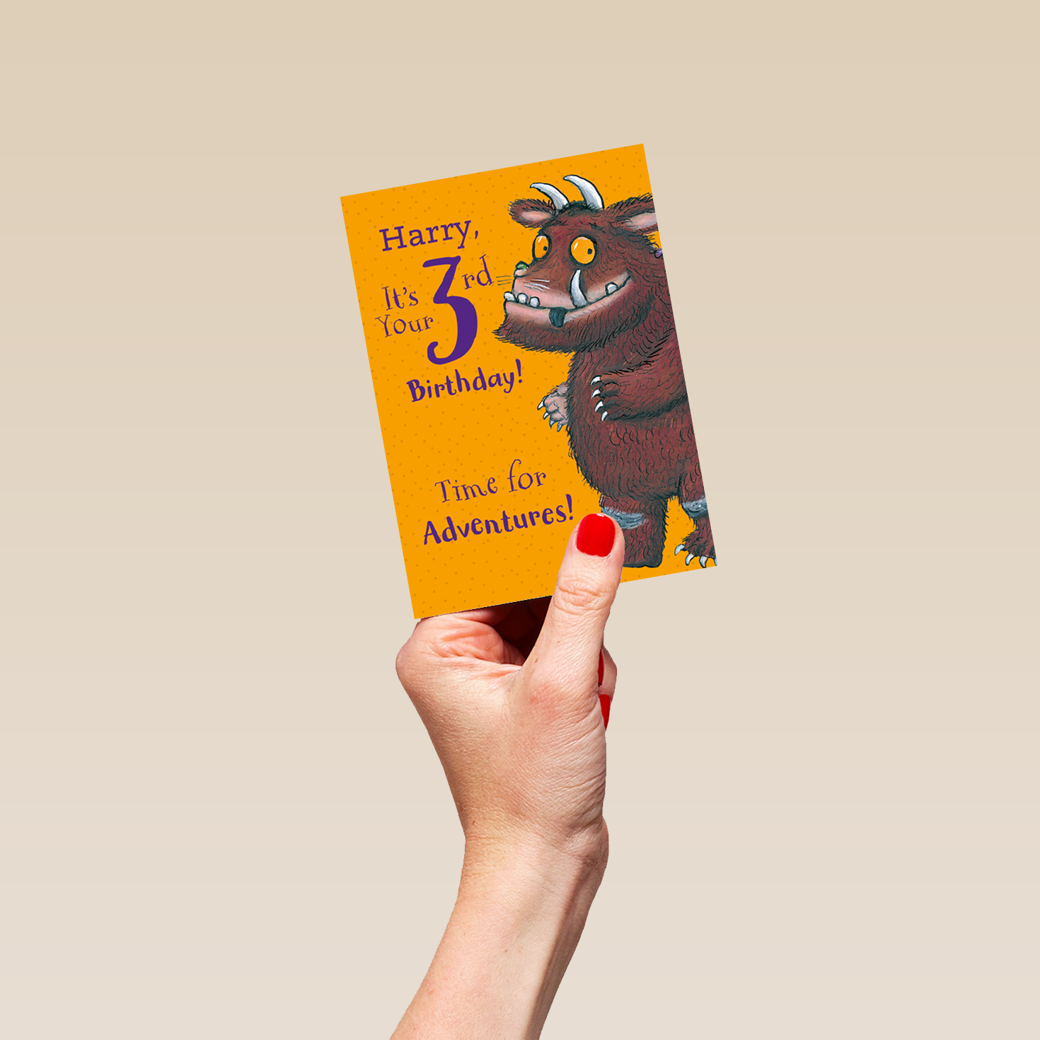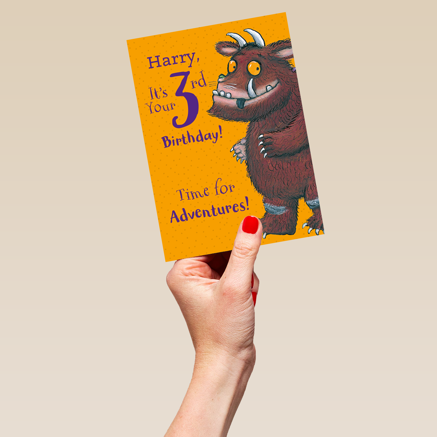 Get ready for big 3rd Birthday adventures, and share a special wish with Julia Donaldson's iconic creation and this fun, Personalised The Gruffalo 3rd Birthday Card.