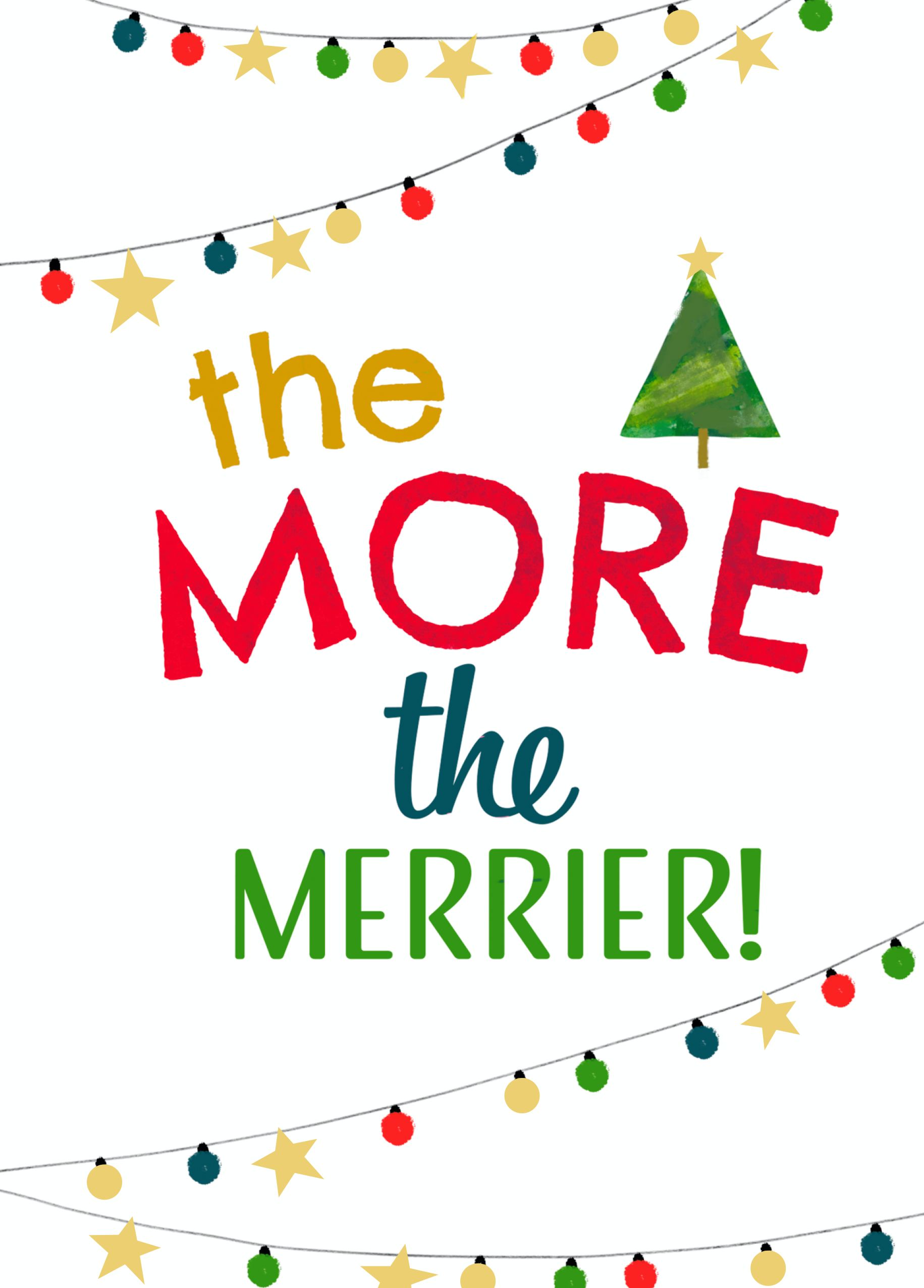 Show them you care with a personalised the more the merrier decorations card from Hallmark. Our Christmas cards are printed on premium quality, FSC®-certified card & delivered nationwide. This card is available as standard 12cm by 16.7cm and large 15.5cm by 21.6cm.