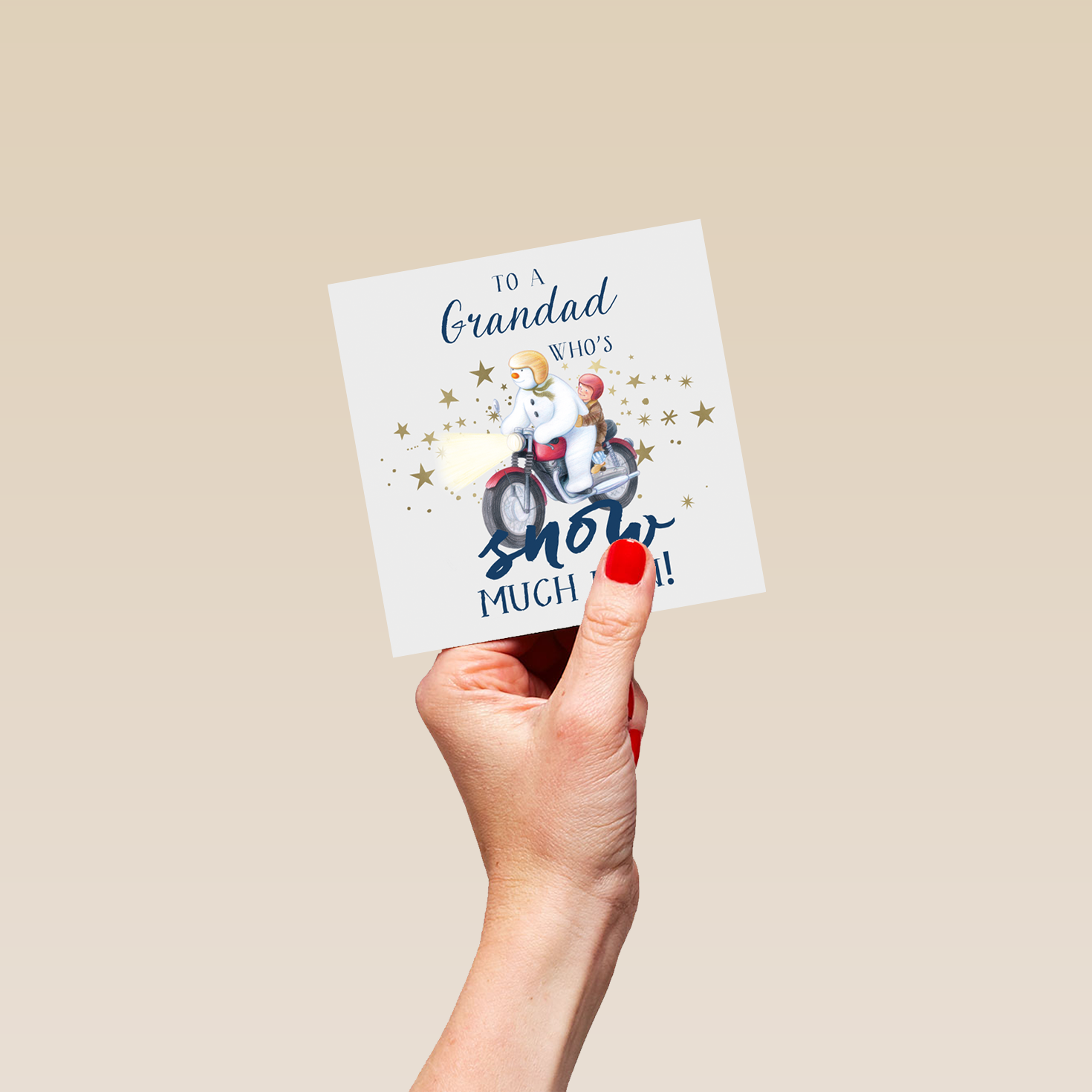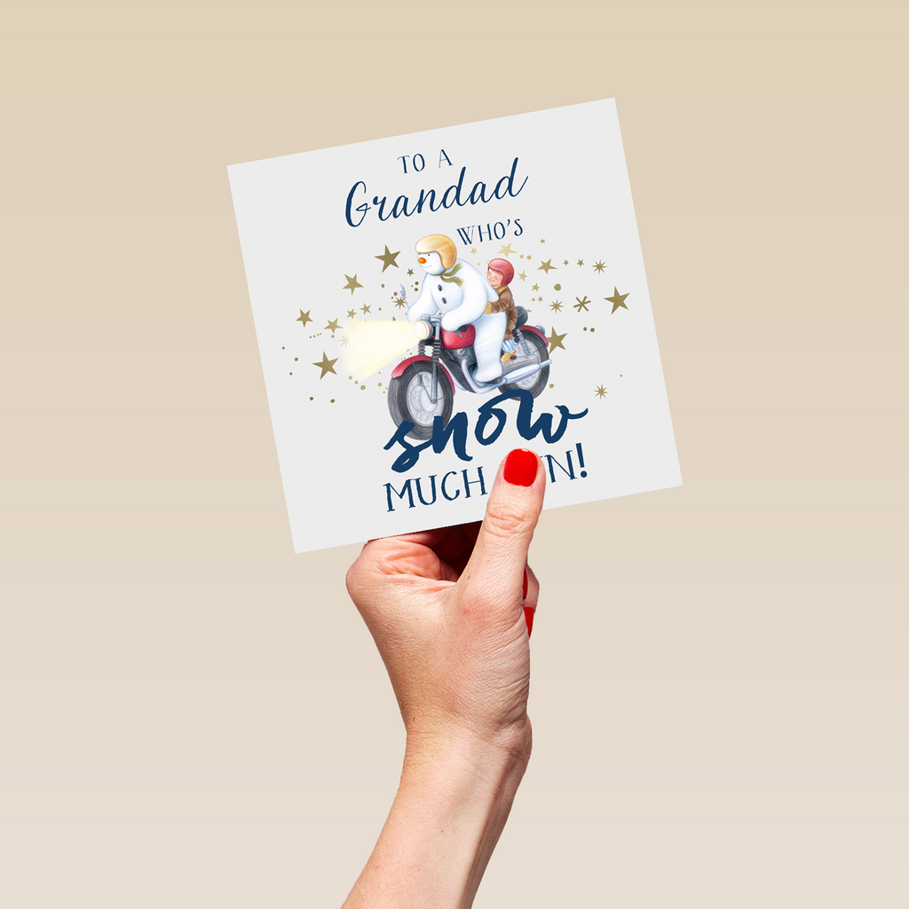Personalised The Snowman™ Motorbike Christmas Card For Grandad