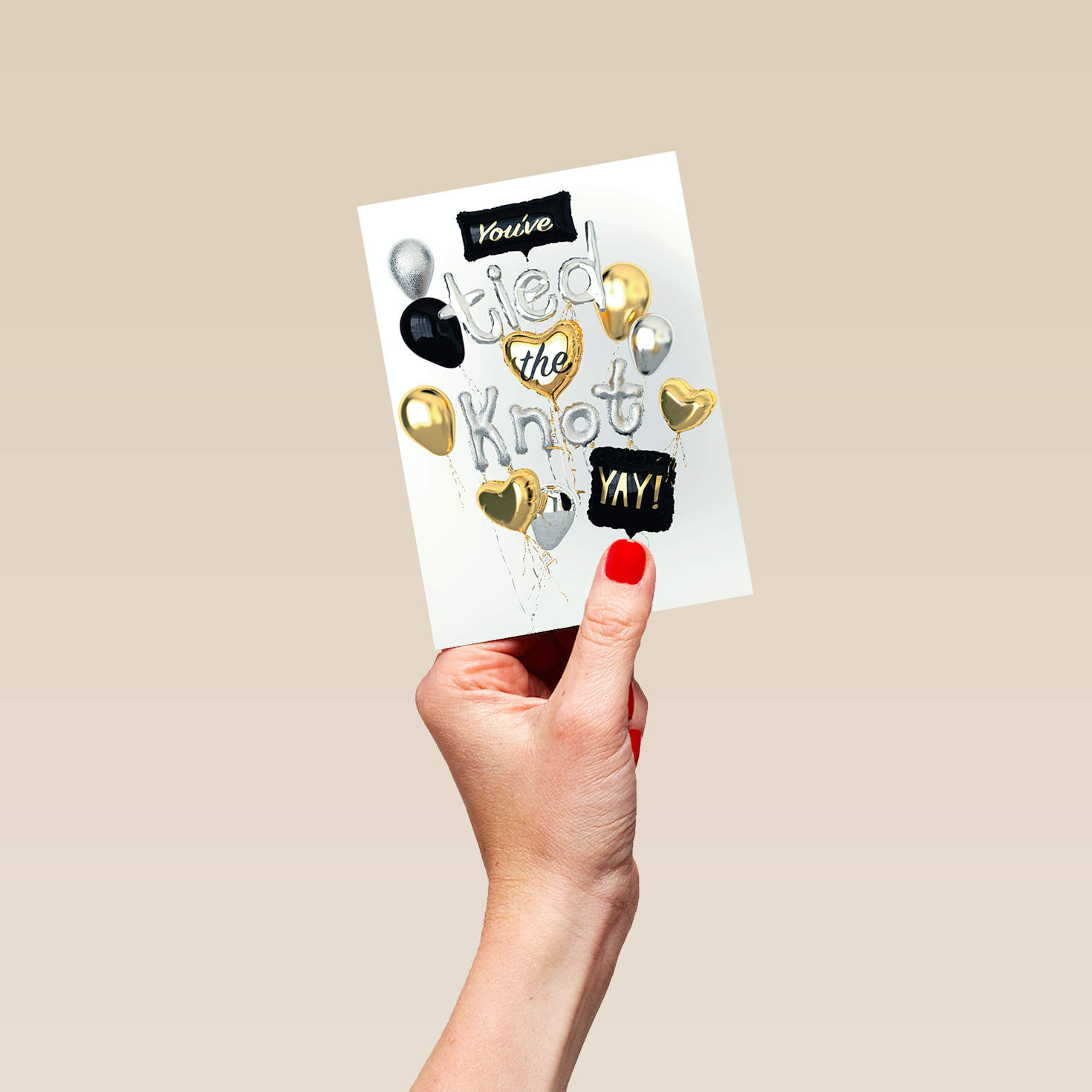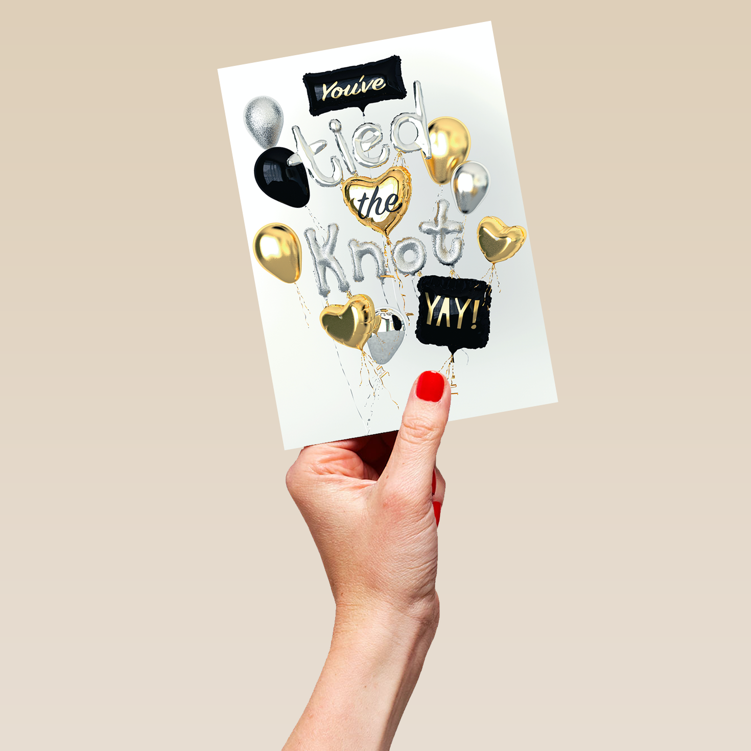 Show them you care with a personalised tied the knot wedding card from Hallmark. Our wedding cards are printed on premium quality, FSC®-certified card & delivered nationwide. This card is available as standard 12cm by 16.7cm and large 15.5cm by 21.6cm.