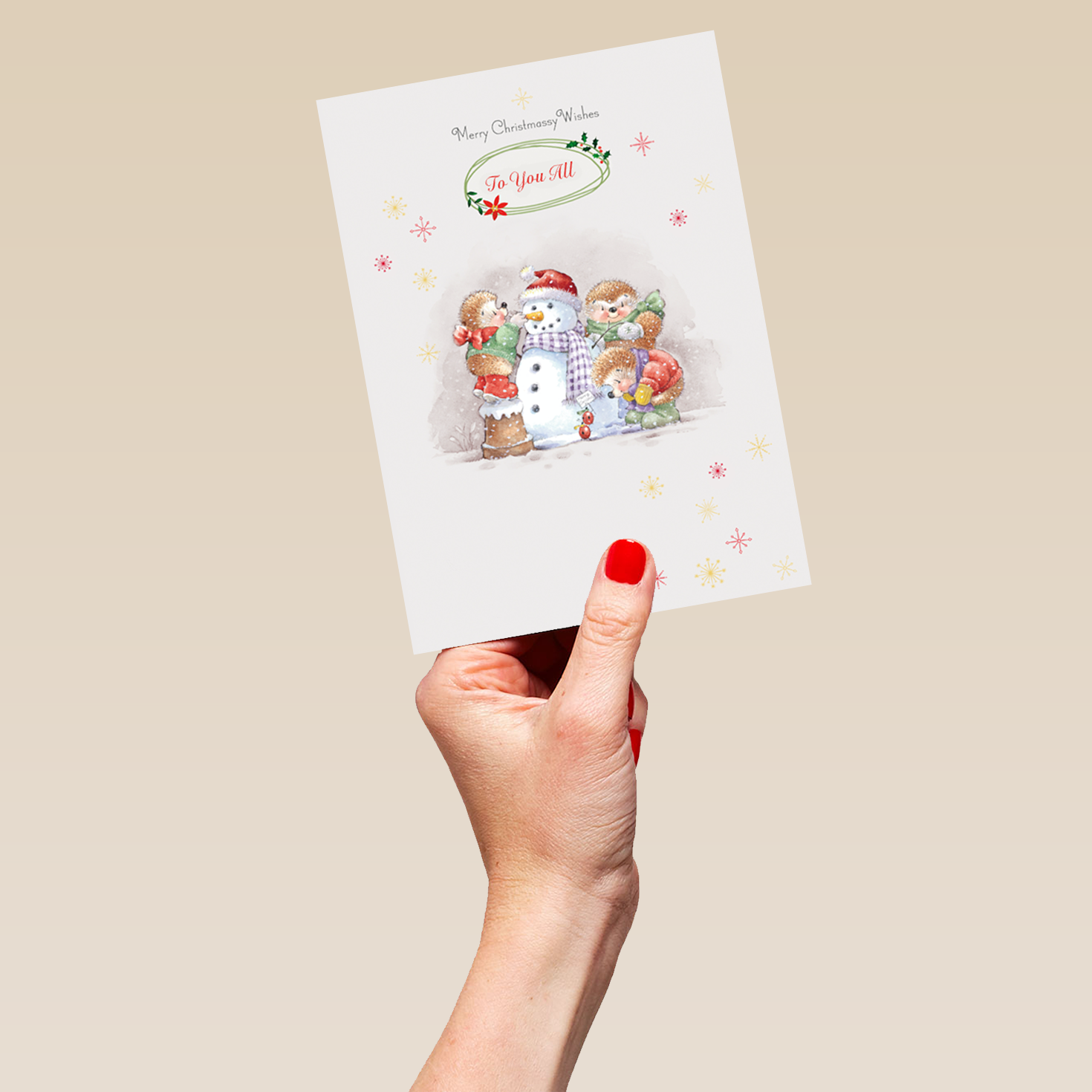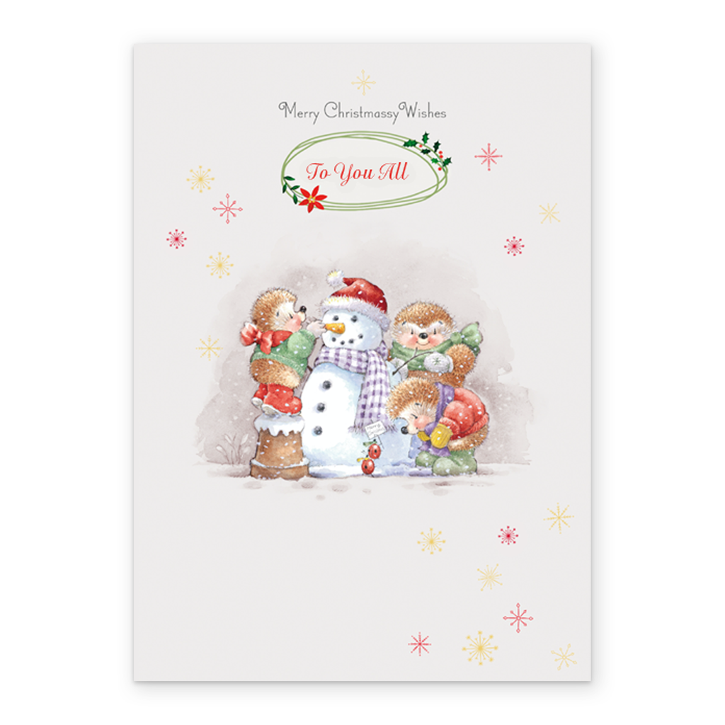 Show them you care with a personalised to all cute snowman Country Companions Christmas card from Hallmark. Our greetings cards are printed on premium quality, FSC®-certified card & delivered nationwide. This card is available as standard 12cm by 16.7cm and large 15.5cm by 21.6cm.