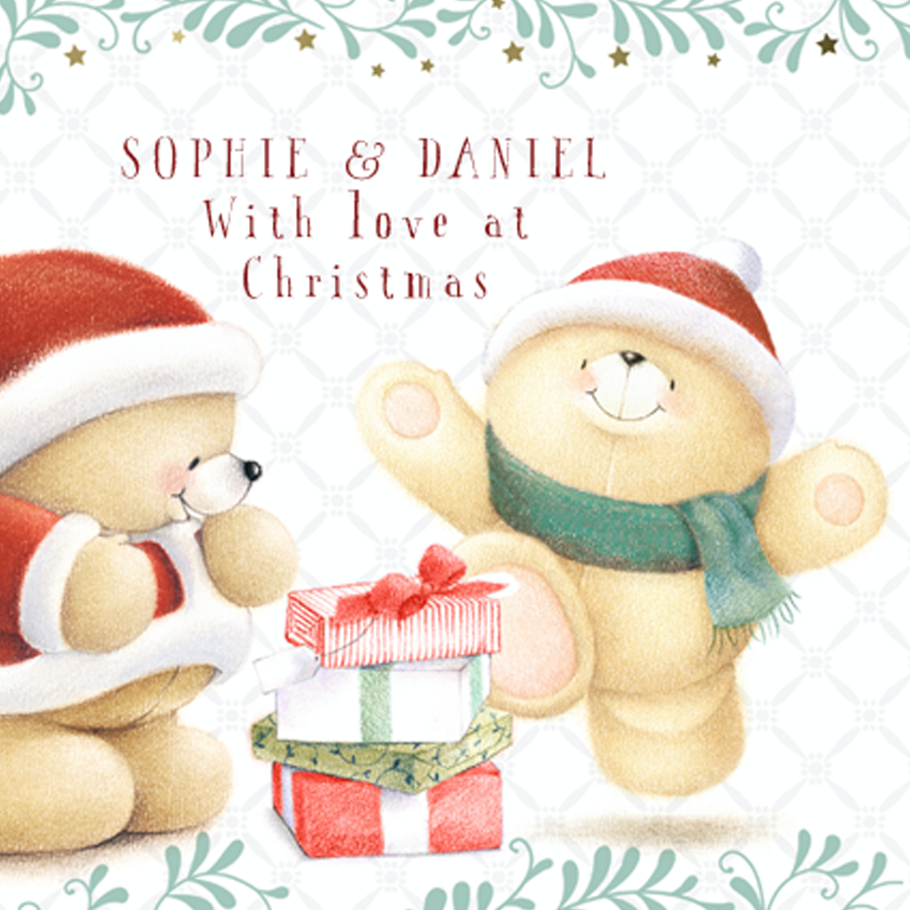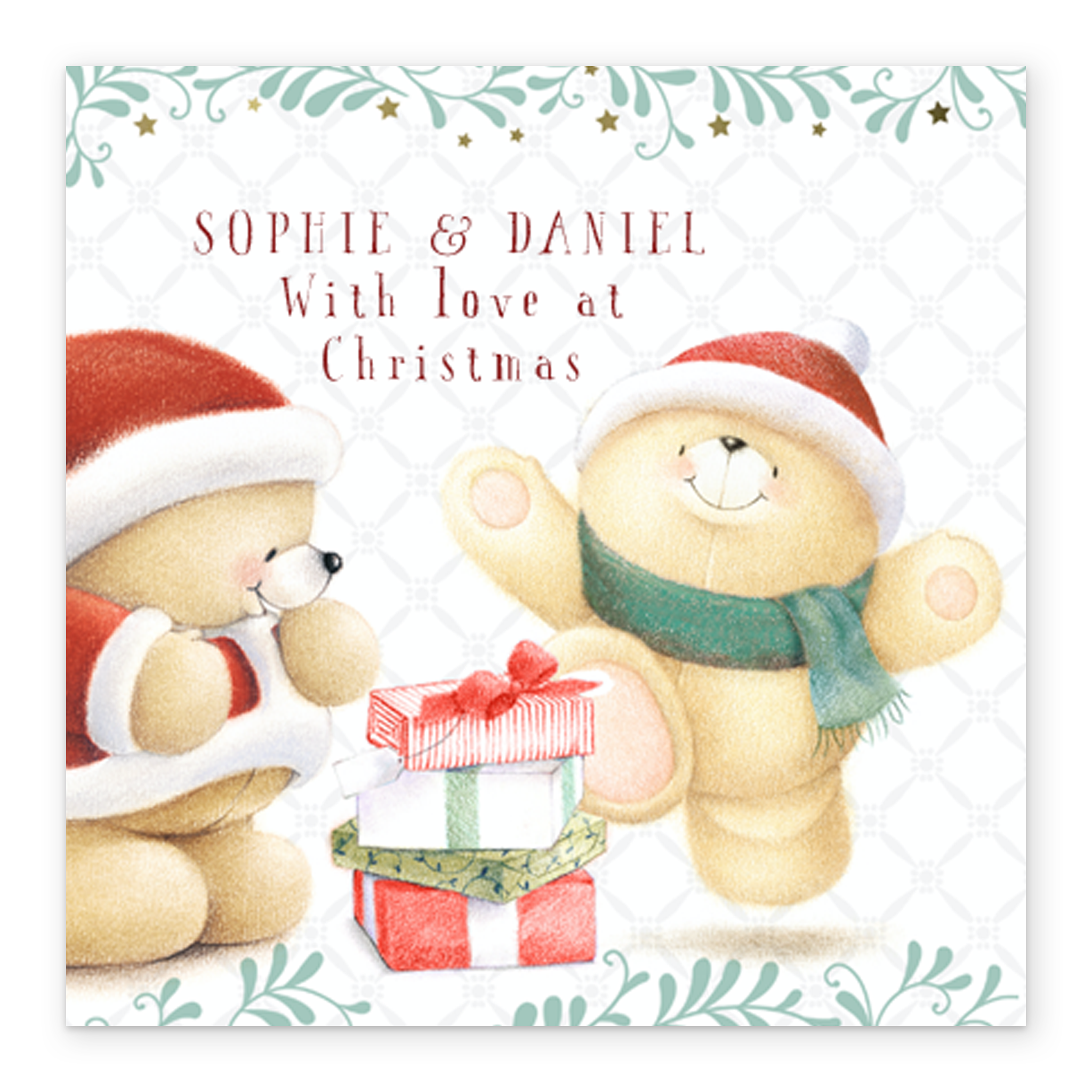 Show them you care with a personalised Forever Friends gifts Christmas card for both of them from Hallmark. Our Christmas cards are printed on premium quality, FSC®-certified card & delivered nationwide. This card is available as standard 12cm by 12cm and large 15cm by 15cm.
