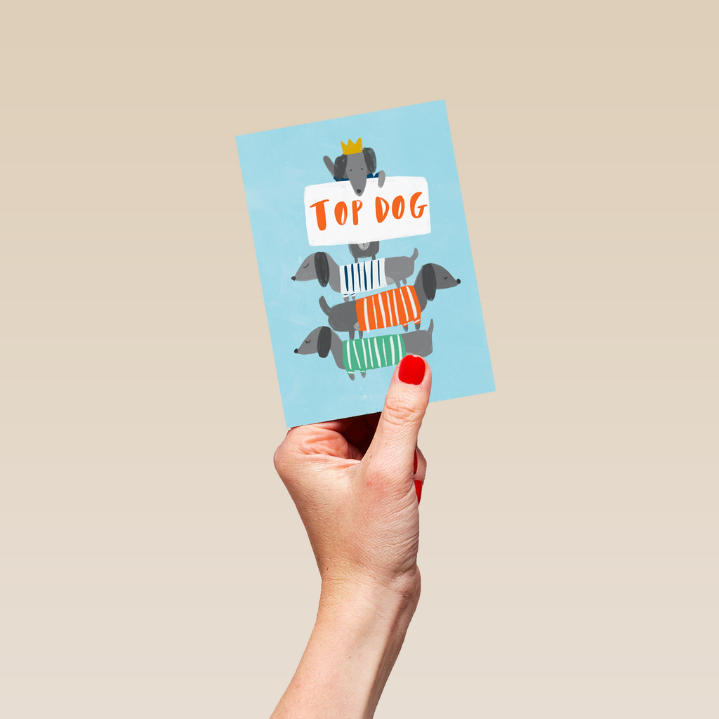 Show them you care with a personalised top dog illustration Father's Day card from Hallmark. Our greetings cards are printed on premium quality, FSC®-certified card & delivered nationwide.This card is available as standard 12cm by 16.7cm and large 15.5cm by 21.6cm.