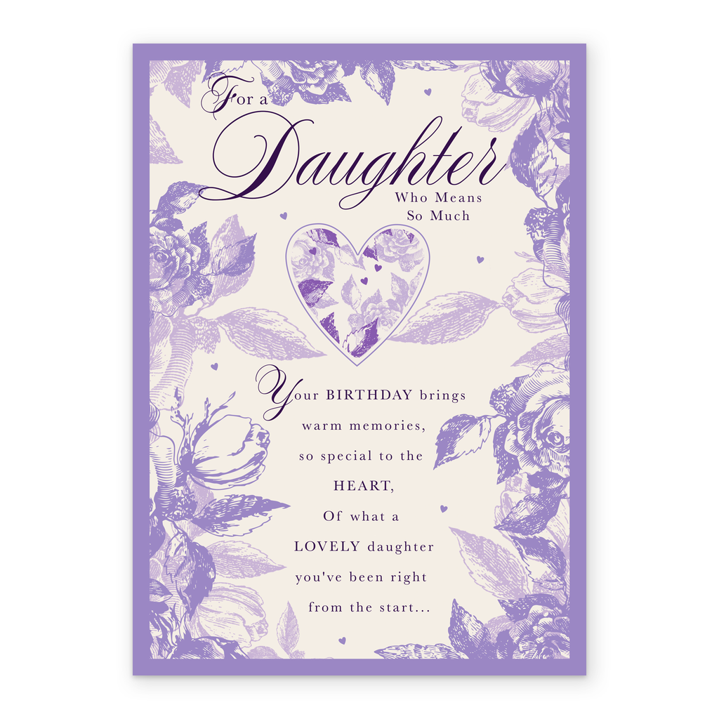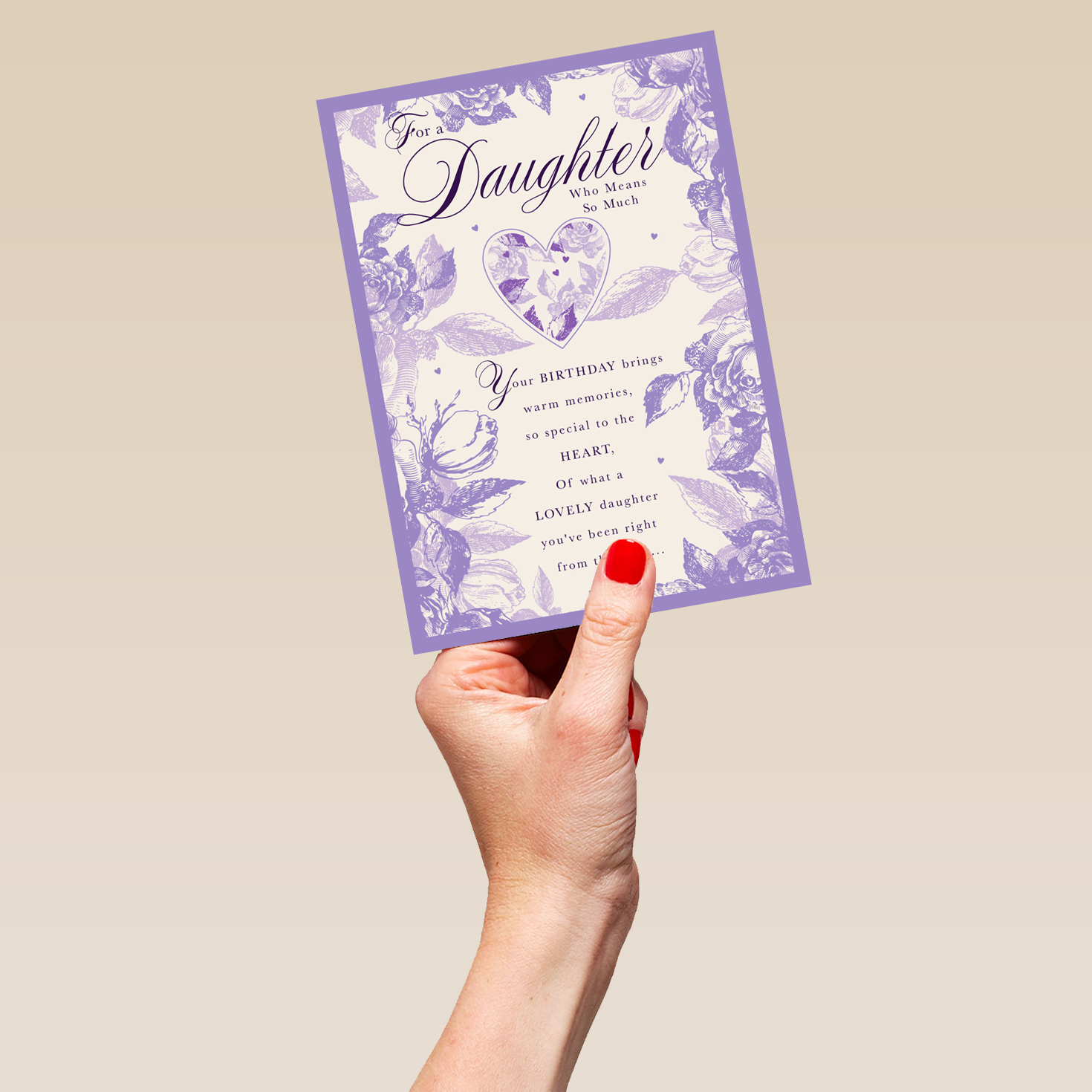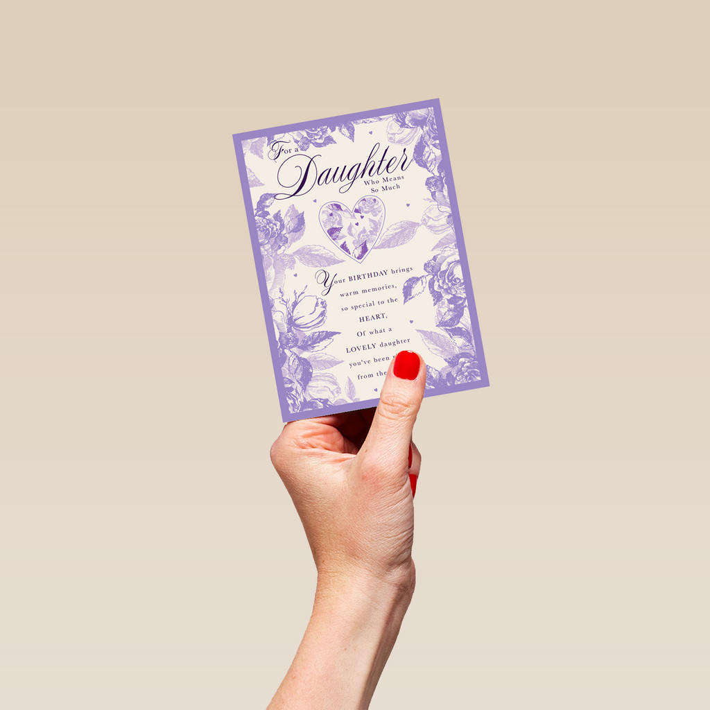 Show them you care with a personalised traditional birthday card for daughter from Hallmark. Our birthday cards are printed on premium quality, FSC®-certified card & delivered nationwide. This card is available as standard 12cm by 16.7cm and large 15.5cm by 21.6cm.