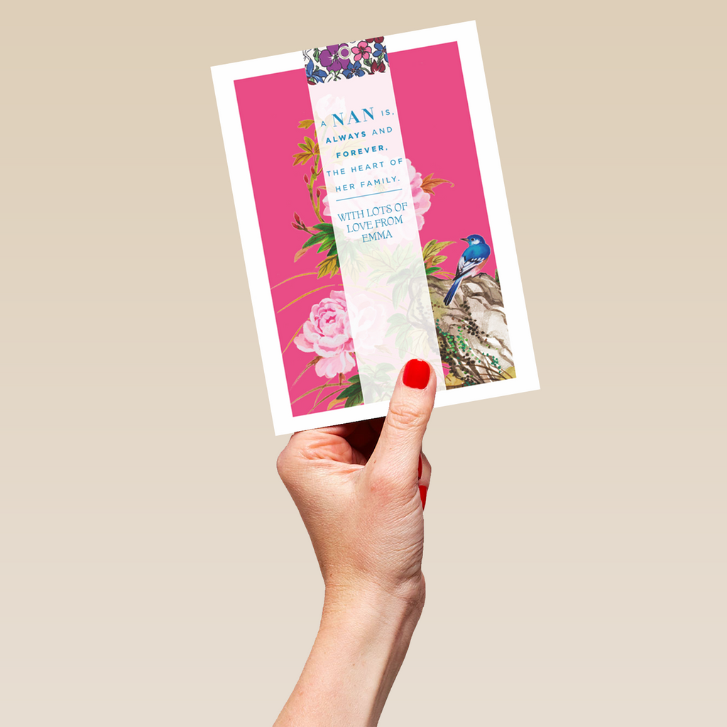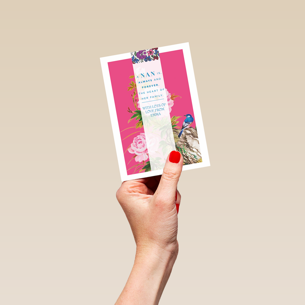 Show them you care with a personalised traditional birthday nan editable pink floral card from Hallmark. Our greetings cards are printed on premium quality, FSC®-certified card & delivered nationwide. This card is available as standard 12cm by 16.7cm and large 15.5cm by 21.6cm.
