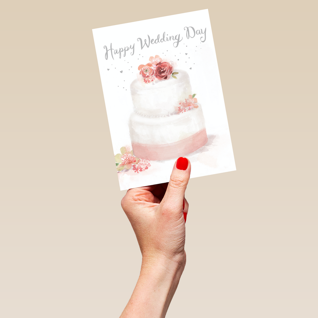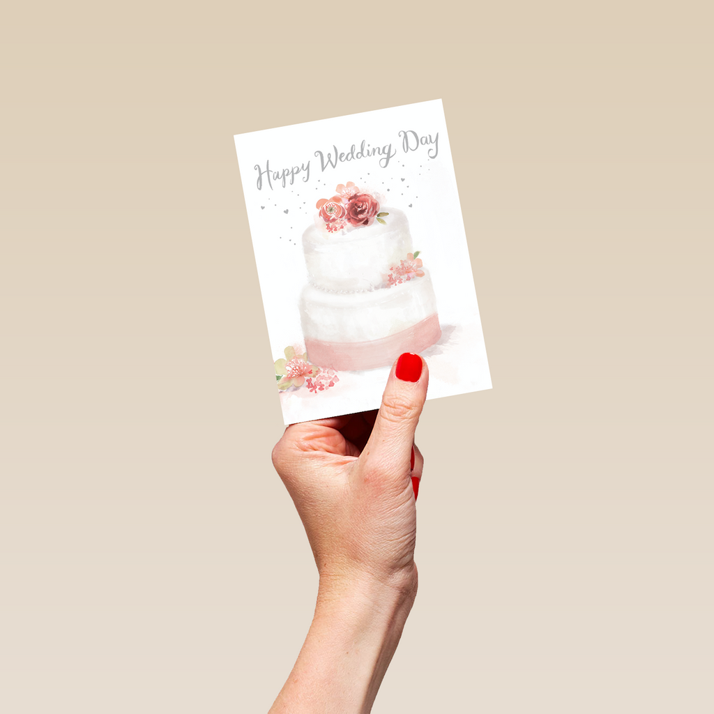 Show them you care with a personalised traditional cake happy wedding day card from Hallmark. Our wedding cards are printed on premium quality, FSC®-certified card & delivered nationwide. This card is available as standard 12cm by 16.7cm and large 15.5cm by 21.6cm.