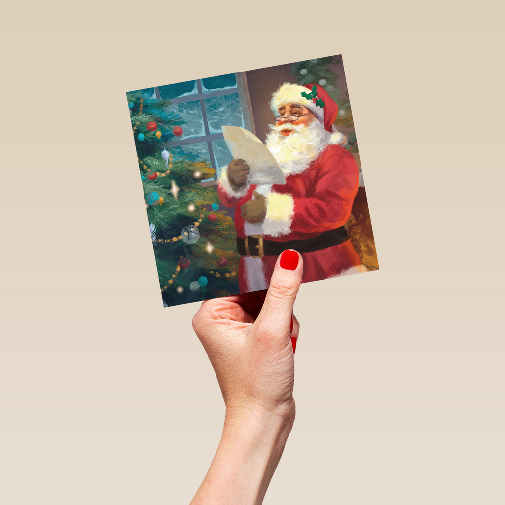 Show them you care with a personalised traditional Christmas Santa & tree letter card from Hallmark. Our greetings cards are printed on premium quality, FSC®-certified card & delivered nationwide. This card is available as standard 12cm by 12cm and large 15cm by 15cm.