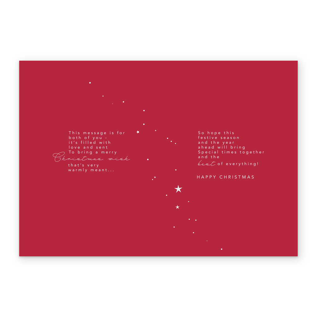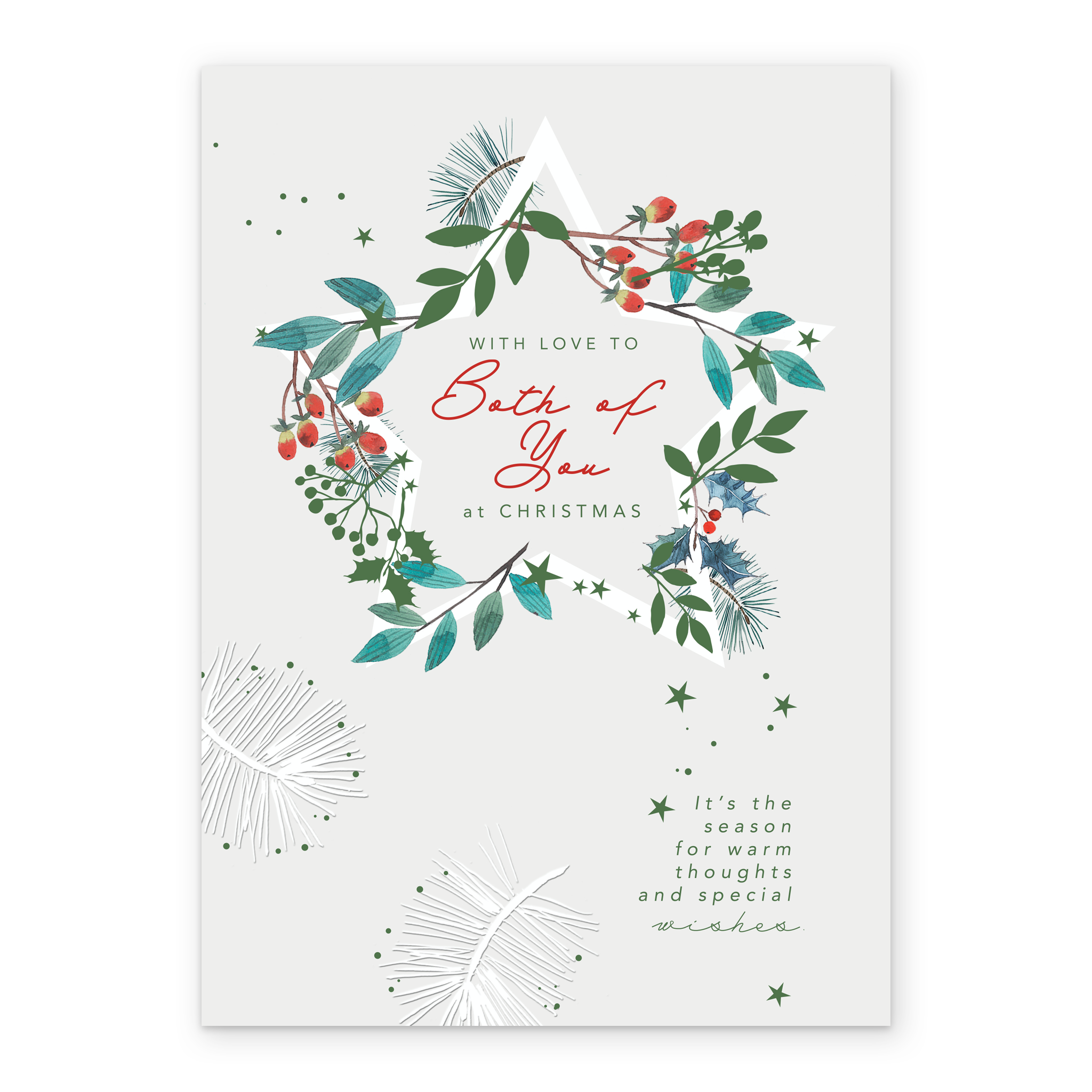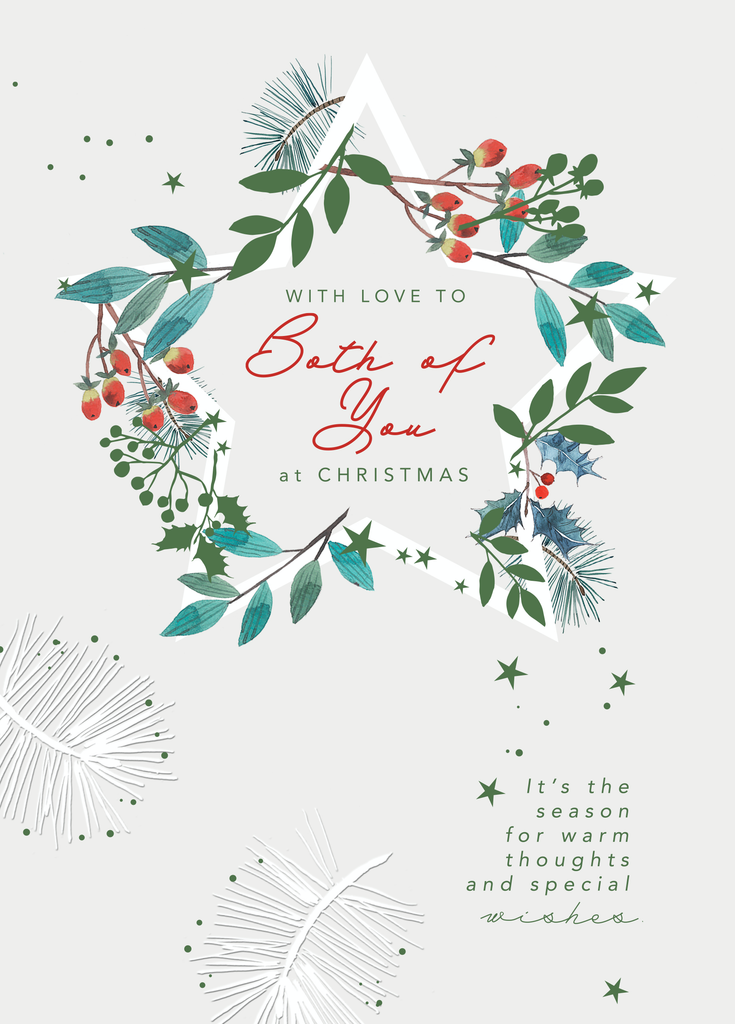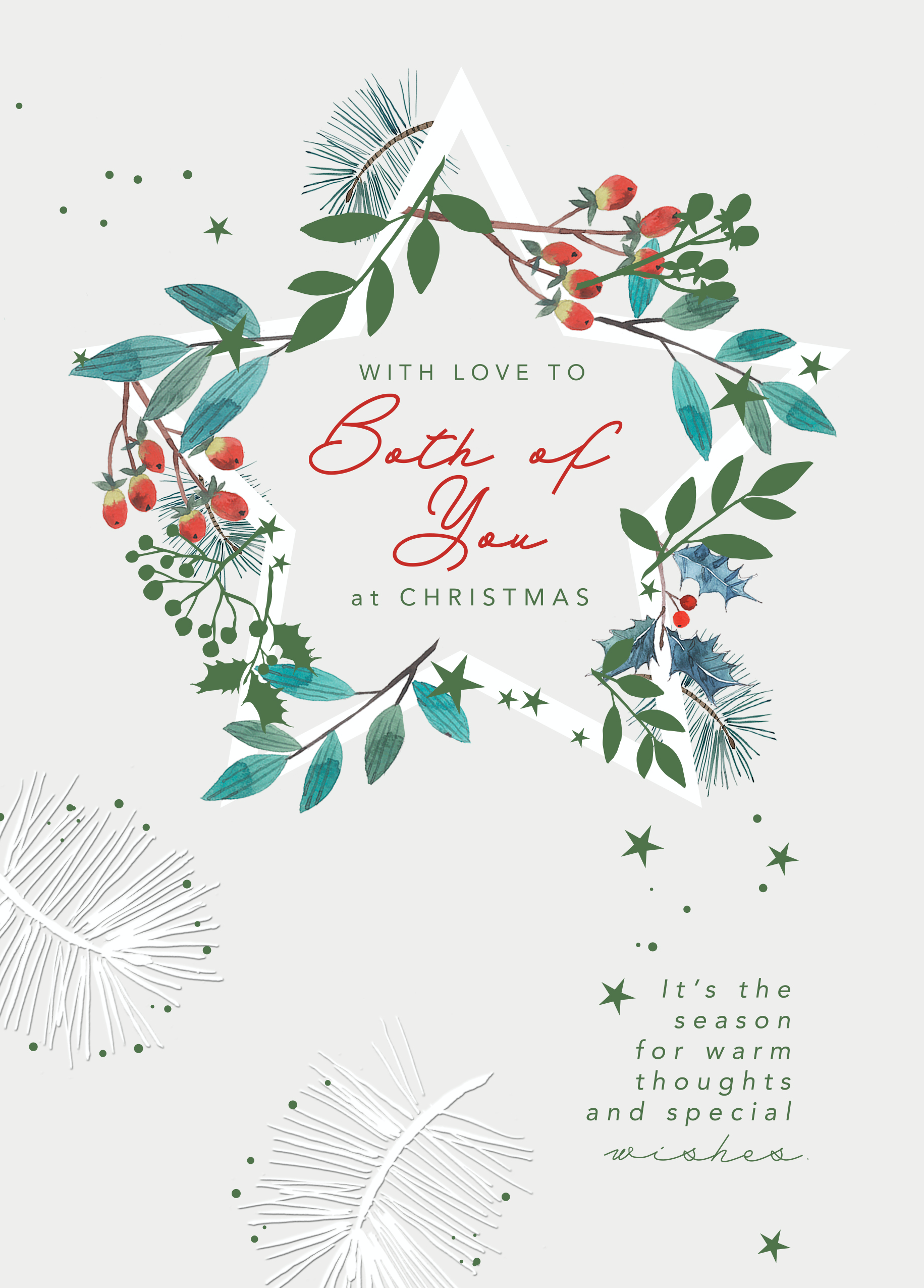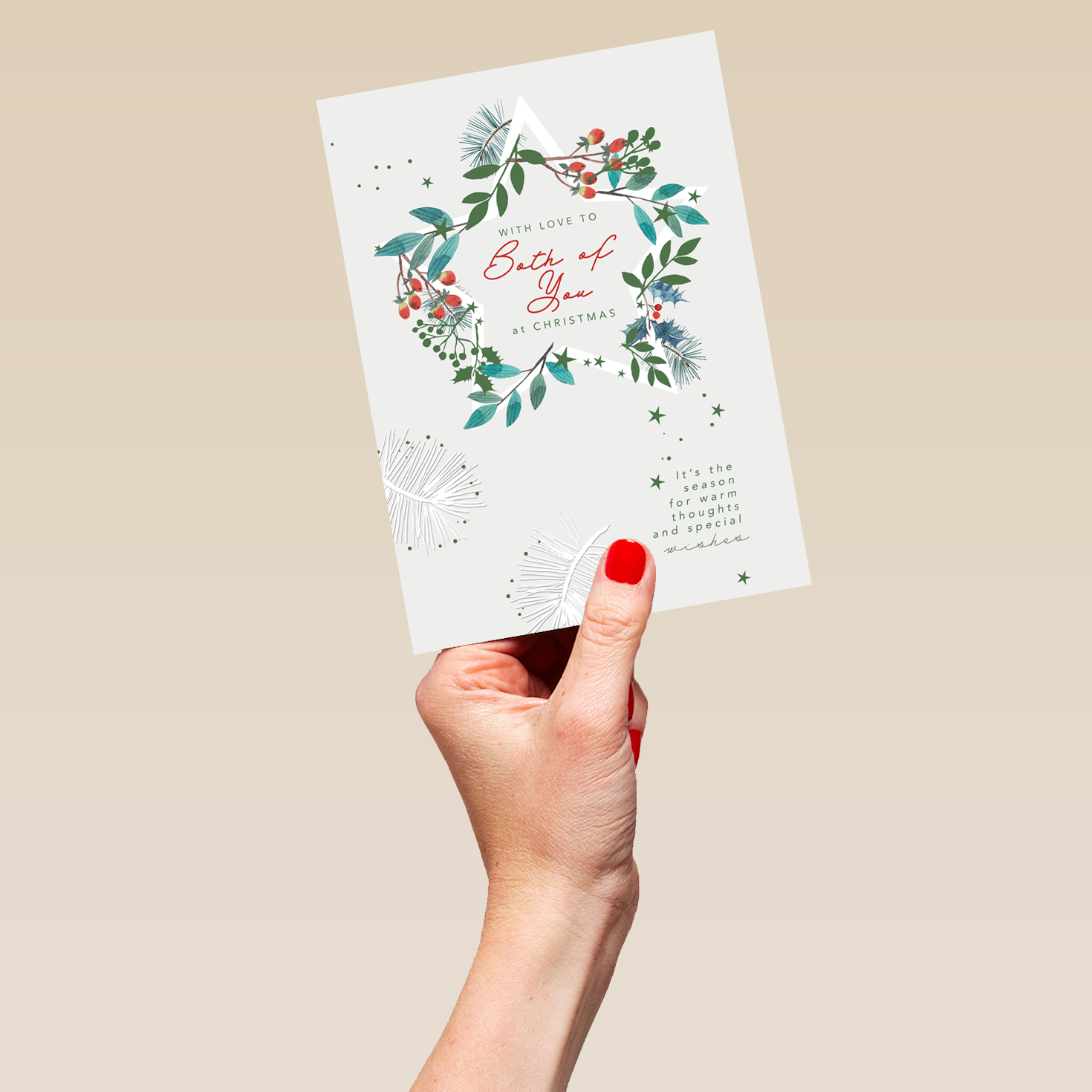 Show them you care with a personalised traditional Christmas star wreath to both card from Hallmark. Our greetings cards are printed on premium quality, FSC®-certified card & delivered nationwide. This card is available as standard 12cm by 16.7cm and large 15.5cm by 21.6cm.