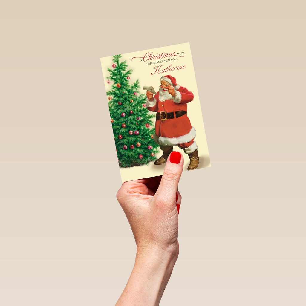 Show them you care with a personalised Christmas card, with a vintage-styled Father Christmas.