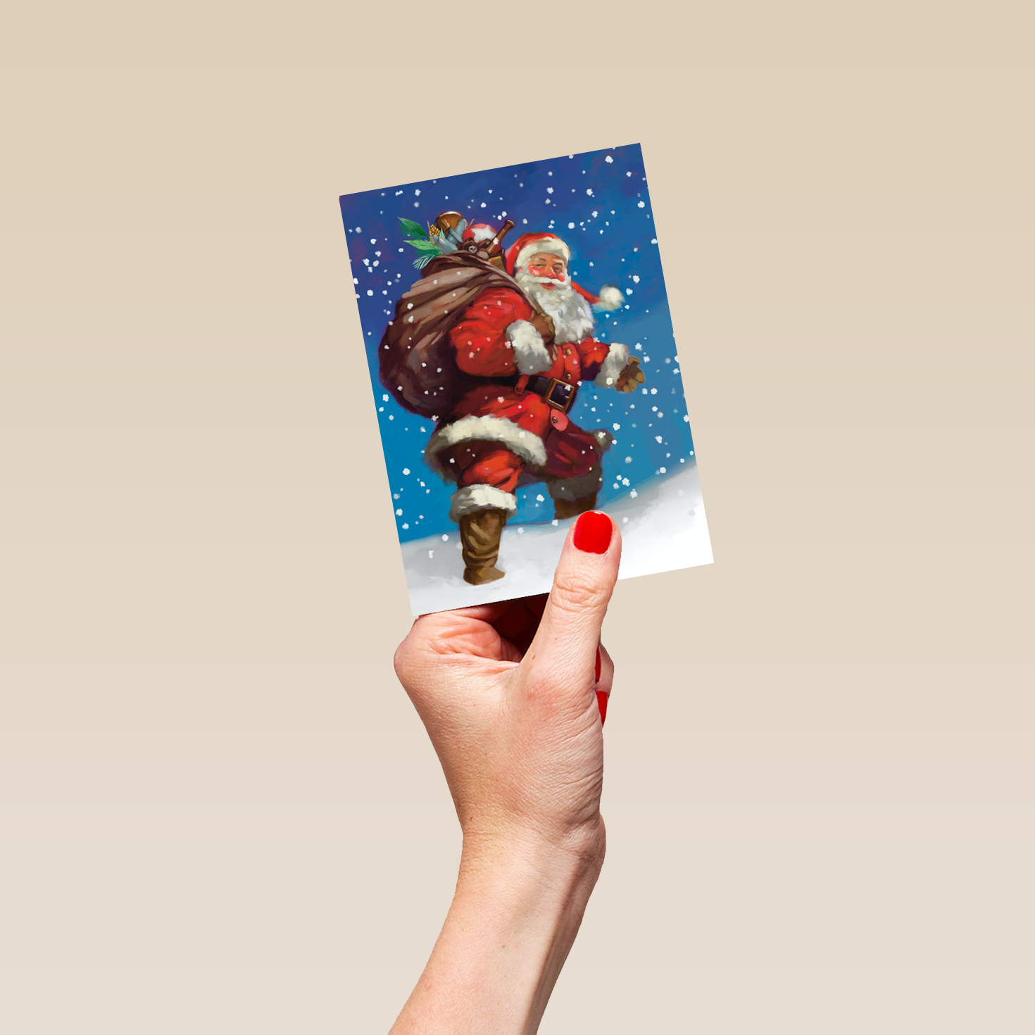 Personalised Traditional Christmas Vintage Santa In The Snow Card