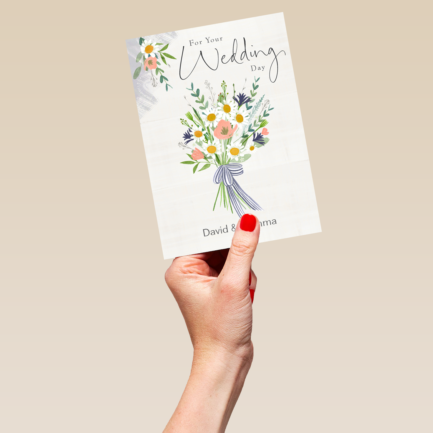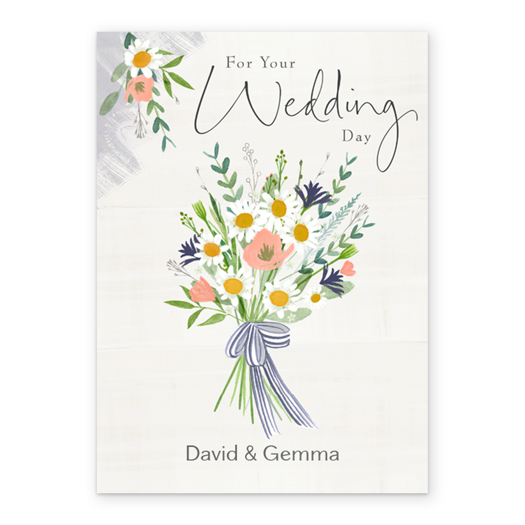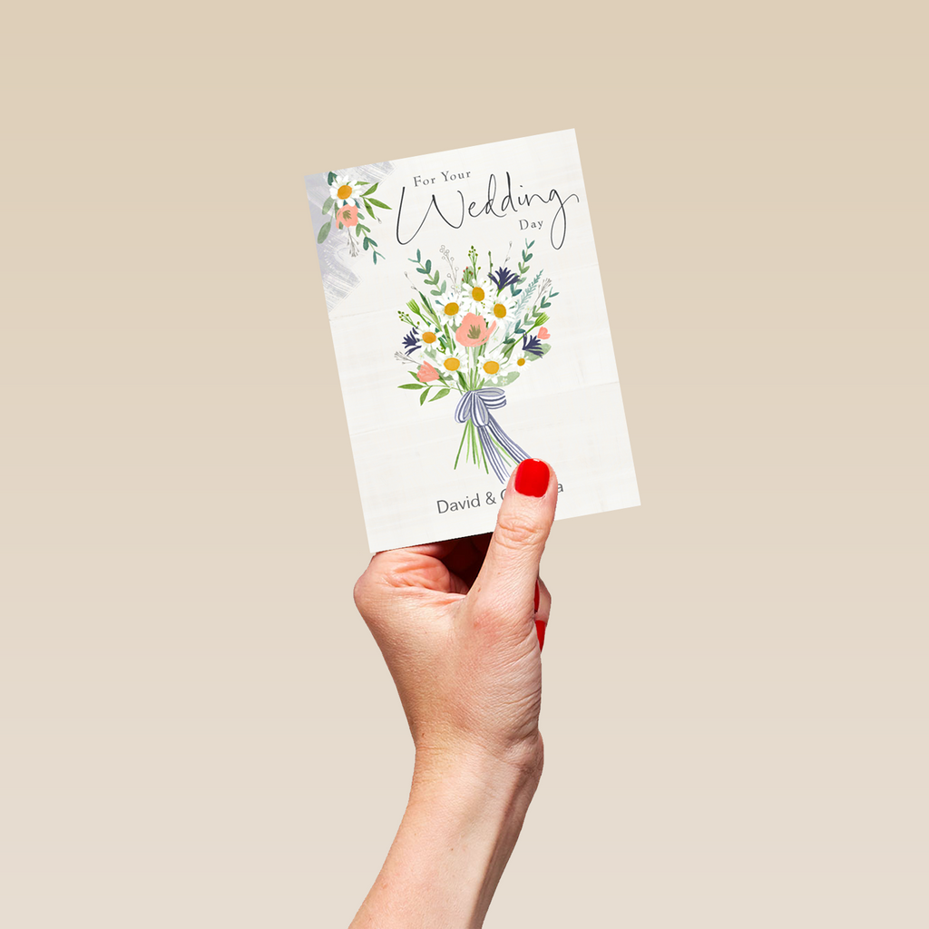 Show them you care with a personalised traditional flowers wedding card from Hallmark. Our wedding cards are printed on premium quality, FSC®-certified card & delivered nationwide. This card is available as standard 12cm by 16.7cm and large 15.5cm by 21.6cm.