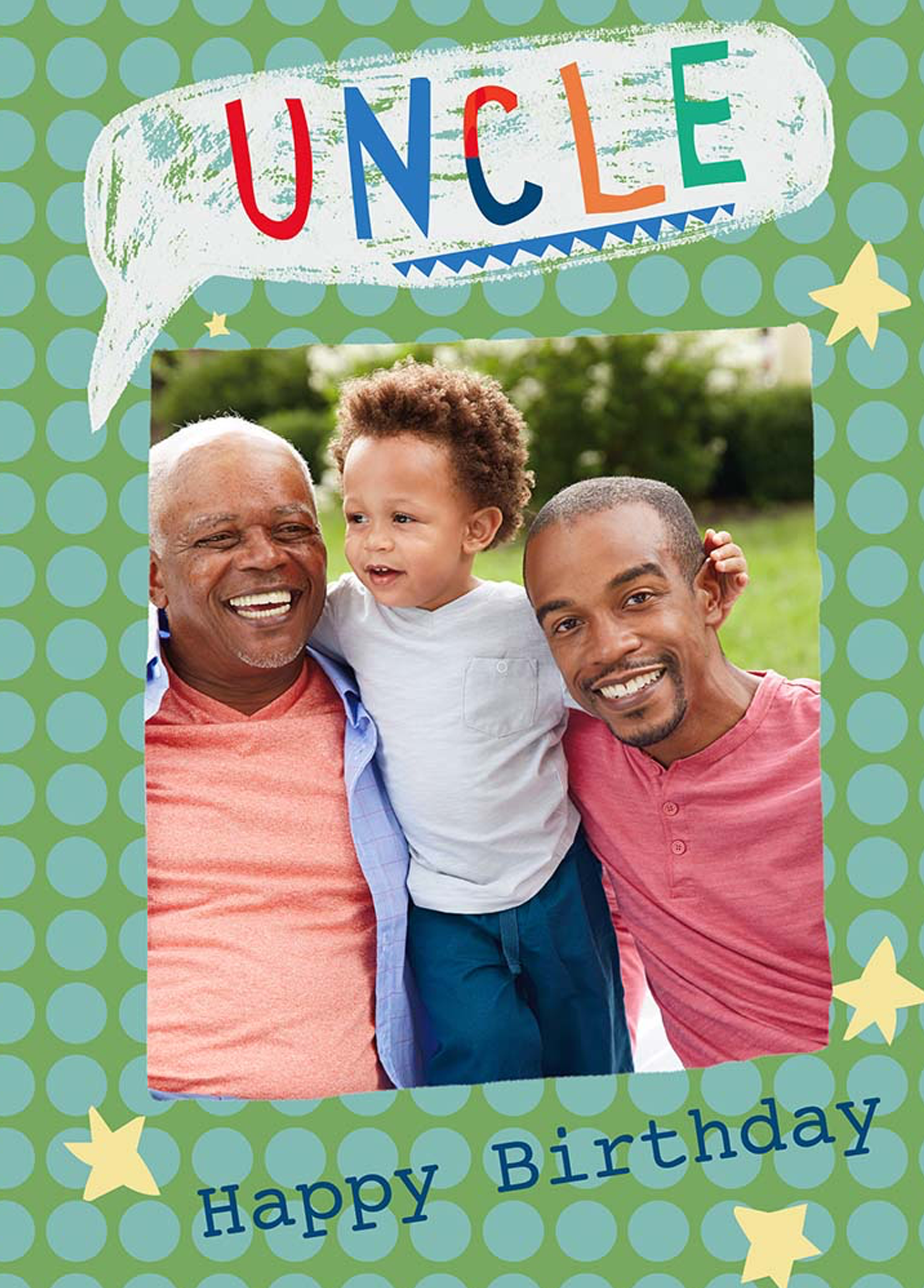 Show them you care with a personalised uncle cute card from Hallmark. Our birthday cards are printed on premium quality, FSC®-certified card & delivered nationwide. This card is available as standard 12cm by 16.7cm and large 15.5cm by 21.6cm.