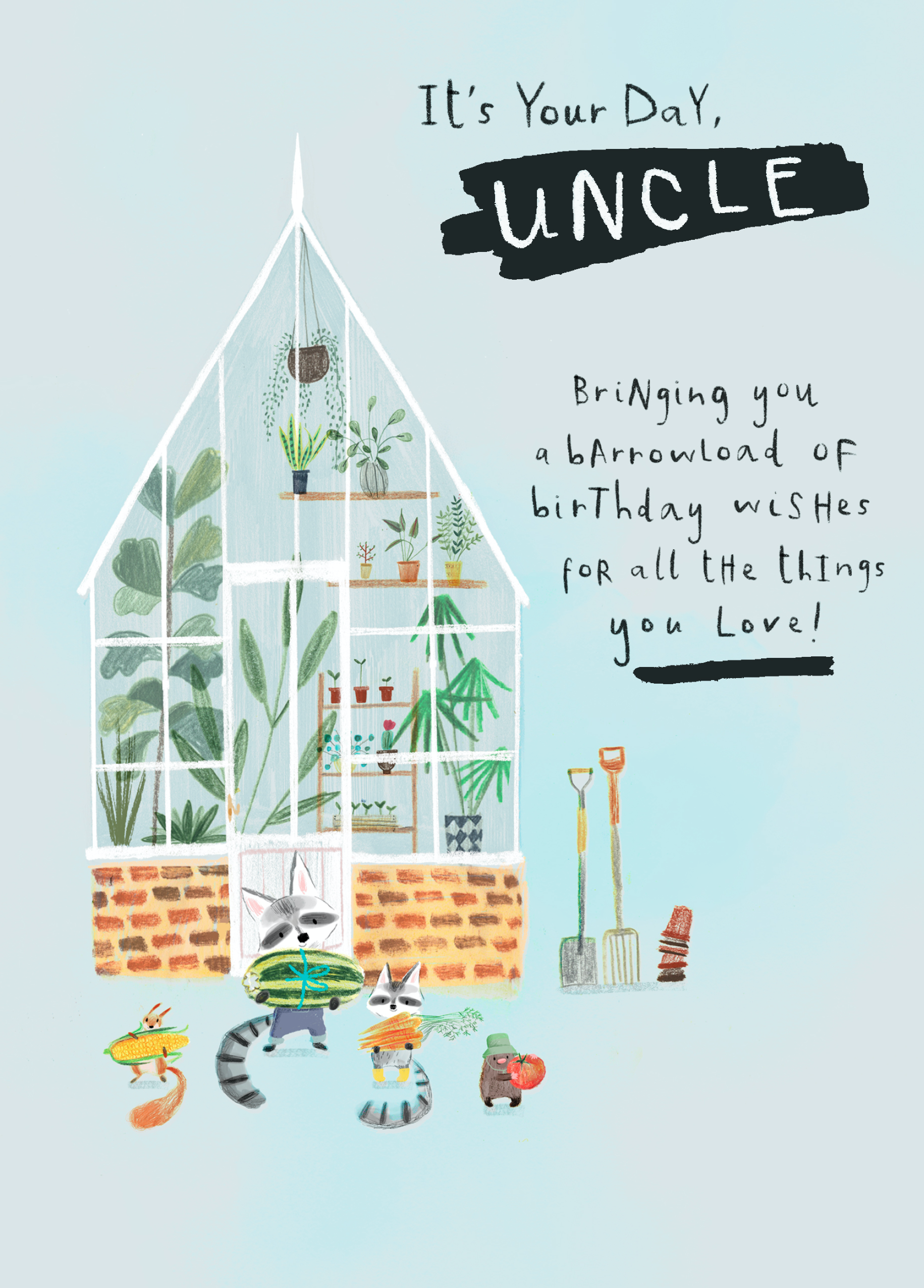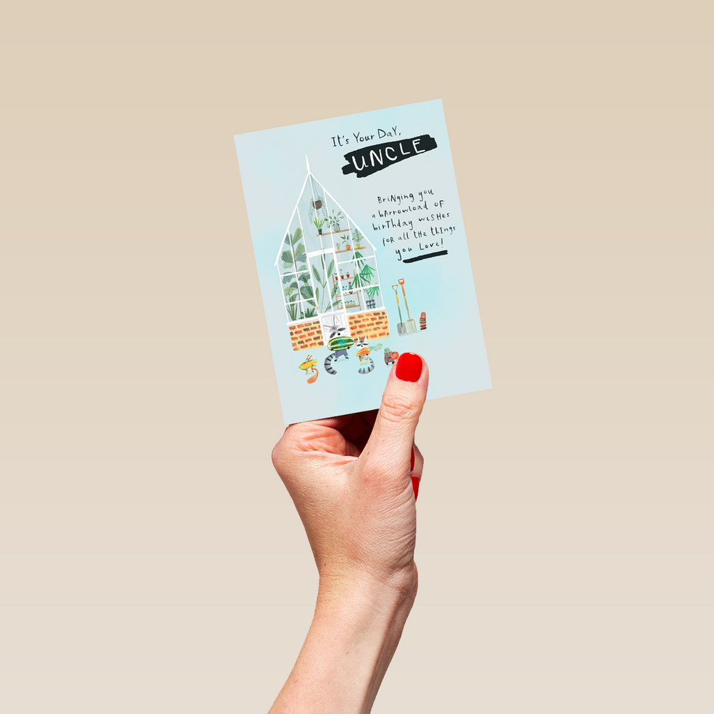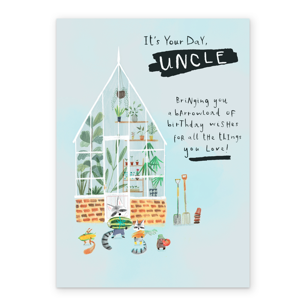 Show them you care with a personalised uncle greenhouse card from Hallmark. Our birthday cards are printed on premium quality, FSC®-certified card & delivered nationwide. This card is available as standard 12cm by 16.7cm and large 15.5cm by 21.6cm.