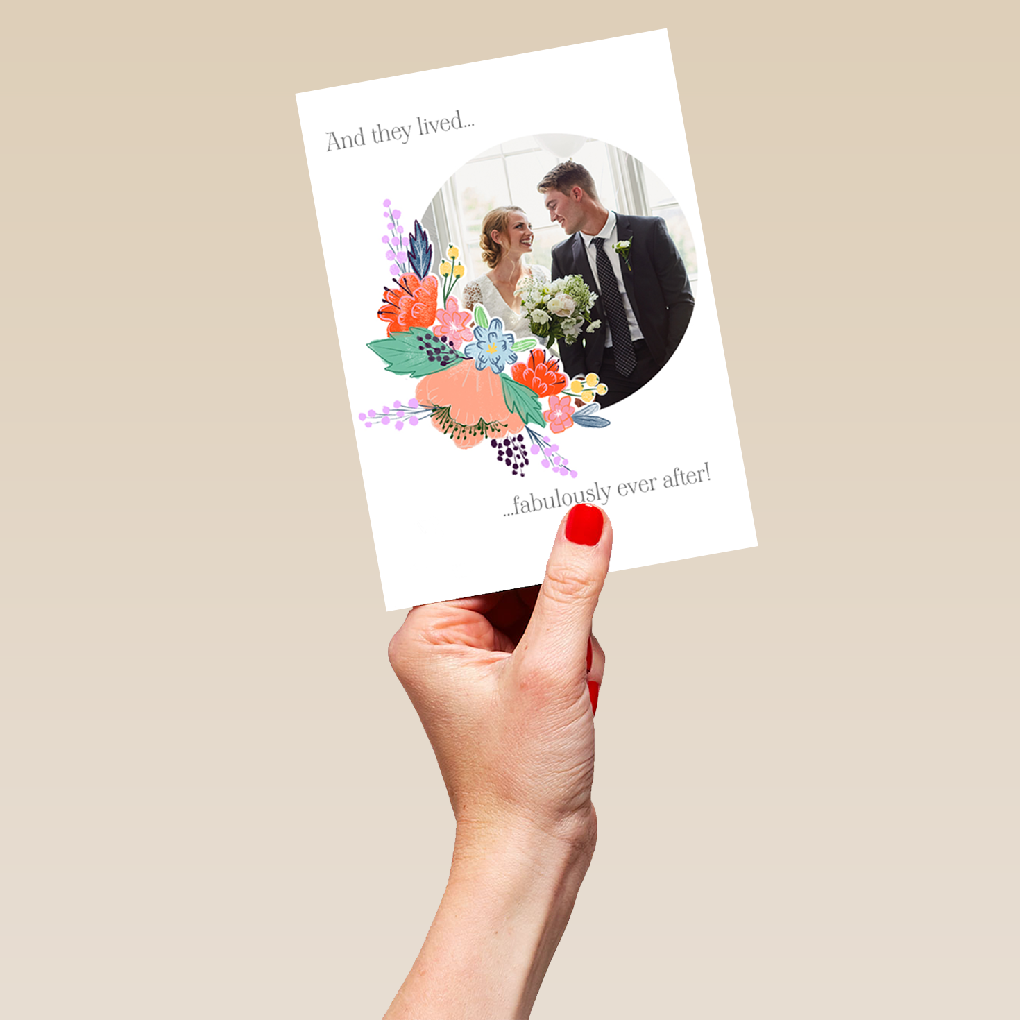Show them you care with a personalised wedding congratulations editable photo upload card from Hallmark. Our wedding cards are printed on premium quality, FSC®-certified card & delivered nationwide. This card is available as standard 12cm by 16.7cm and large 15.5cm by 21.6cm.