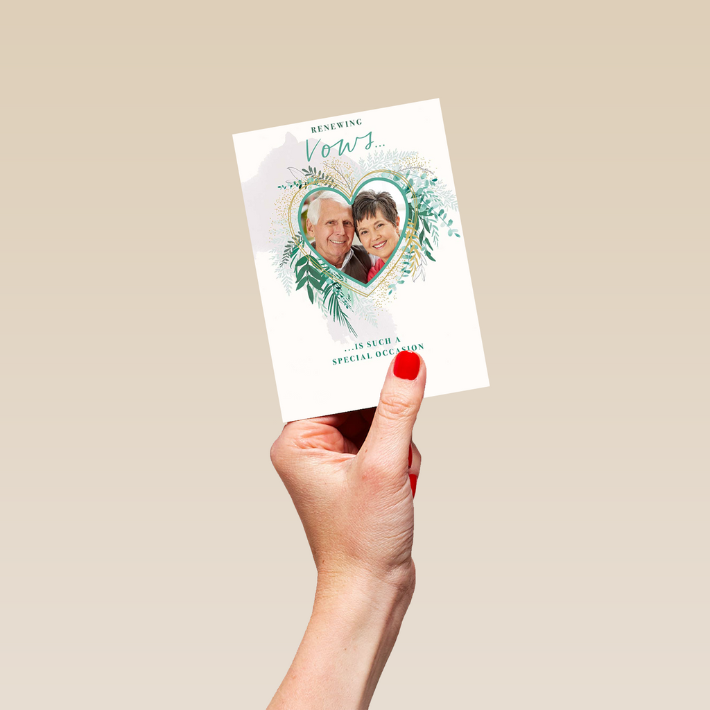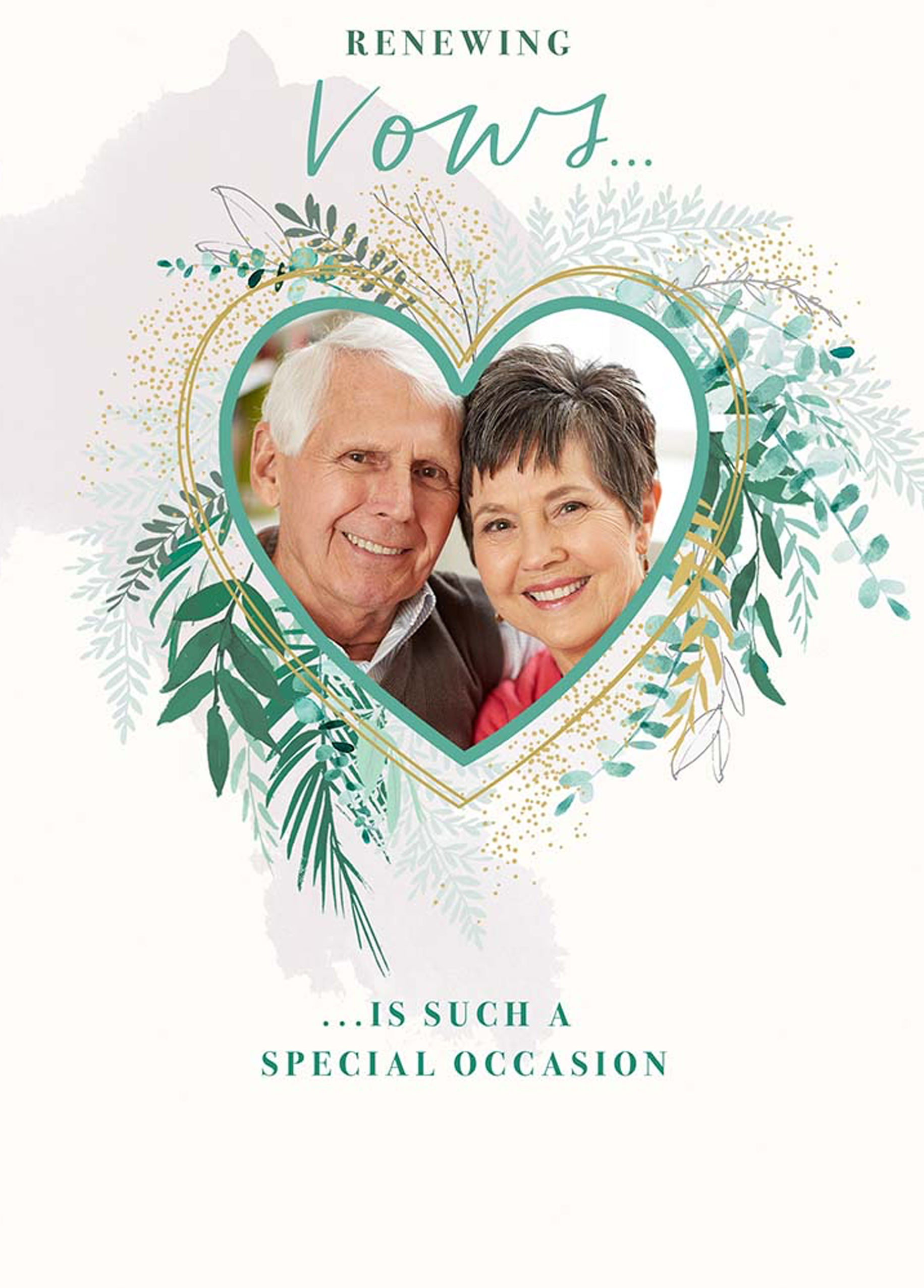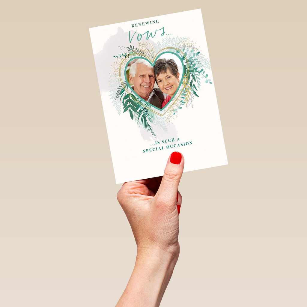 Show them you care with a personalised wedding vow renewal card from Hallmark. Our wedding cards are printed on premium quality, FSC®-certified card & delivered nationwide. This card is available as standard 12cm by 16.7cm and large 15.5cm by 21.6cm.