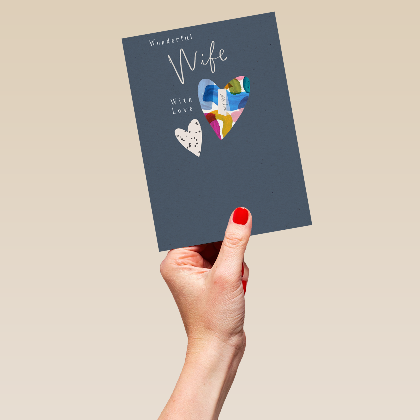 Show them you care with a personalised wife classic heart card from Hallmark. Our birthday cards are printed on premium quality, FSC®-certified card & delivered nationwide. This card is available as standard 12cm by 16.7cm and large 15.5cm by 21.6cm.