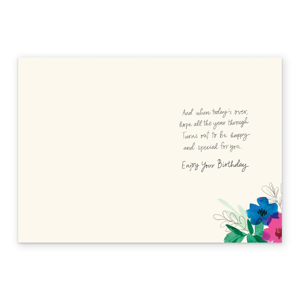 Message inside reads: And when today’s over, hope all the year through, Turns out to be happy and special for you. Enjoy your birthday