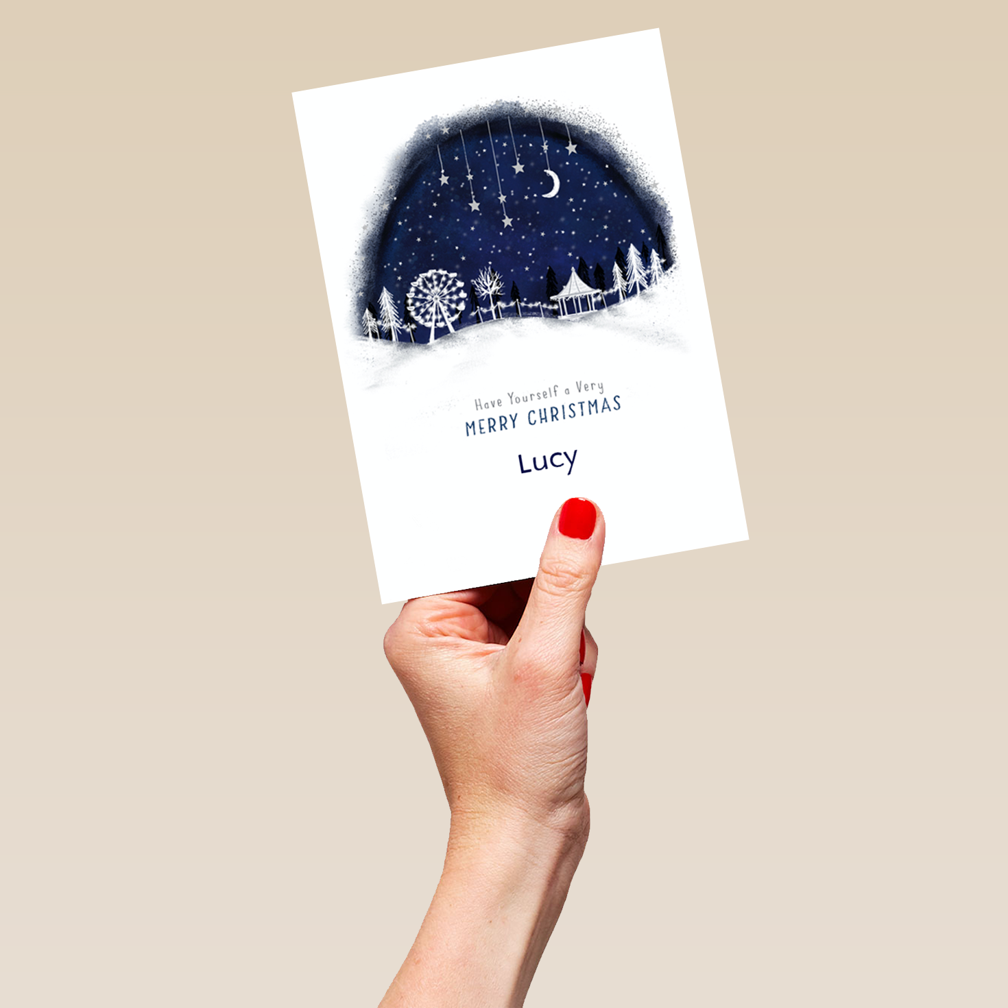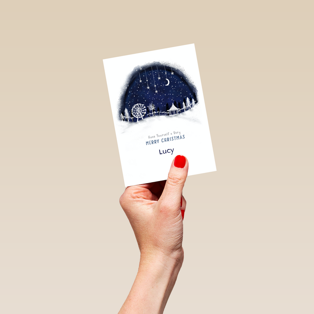 Share the magic of a winter's night, and send a note of love with this personalisable and beautiful Christmas card.