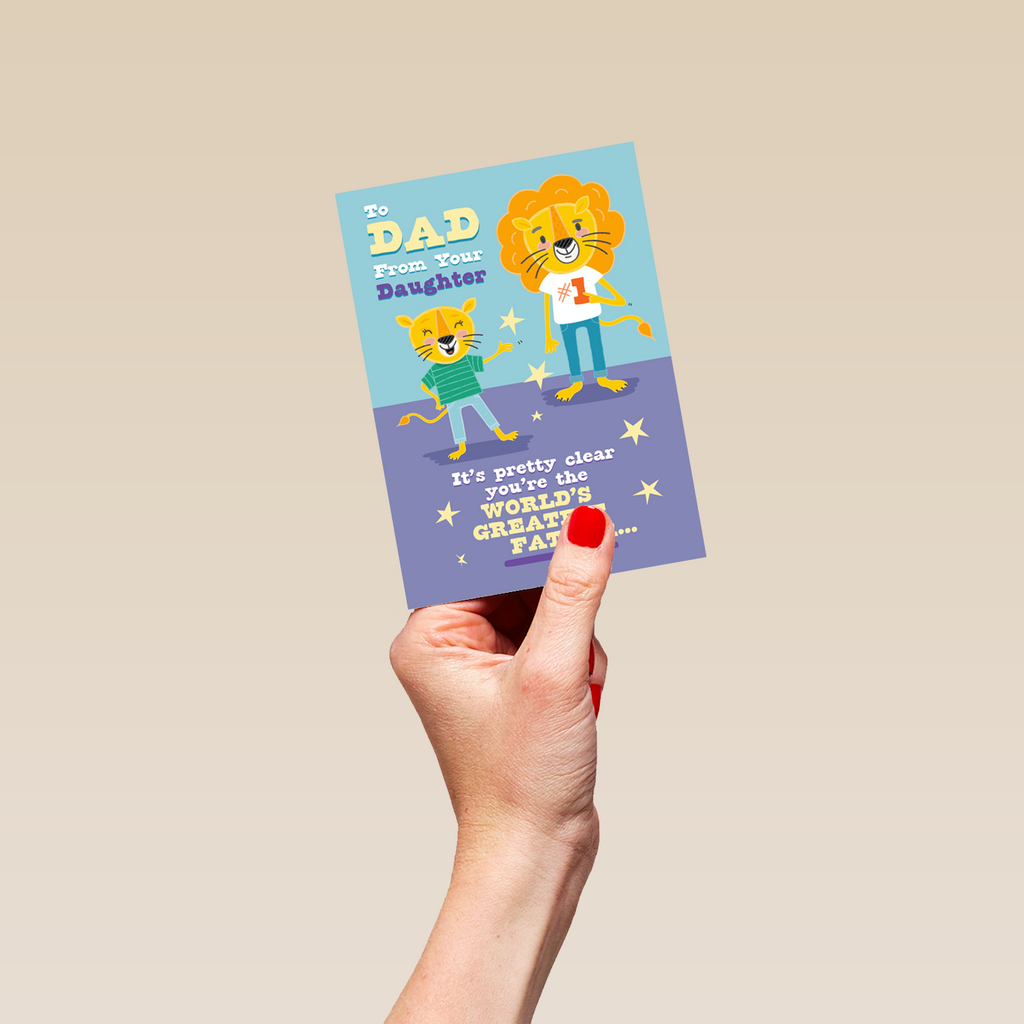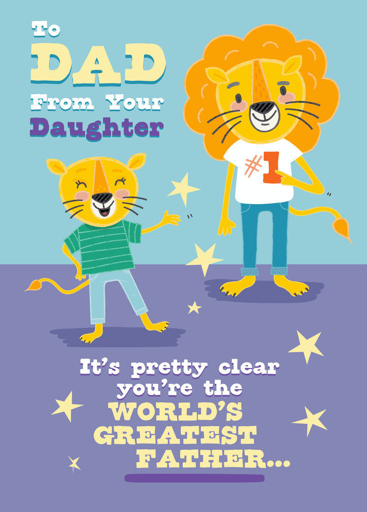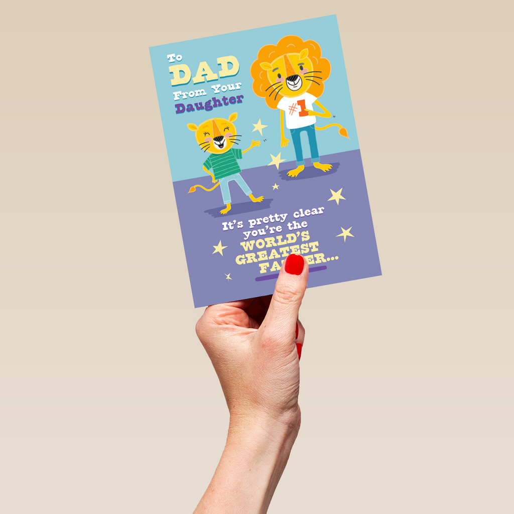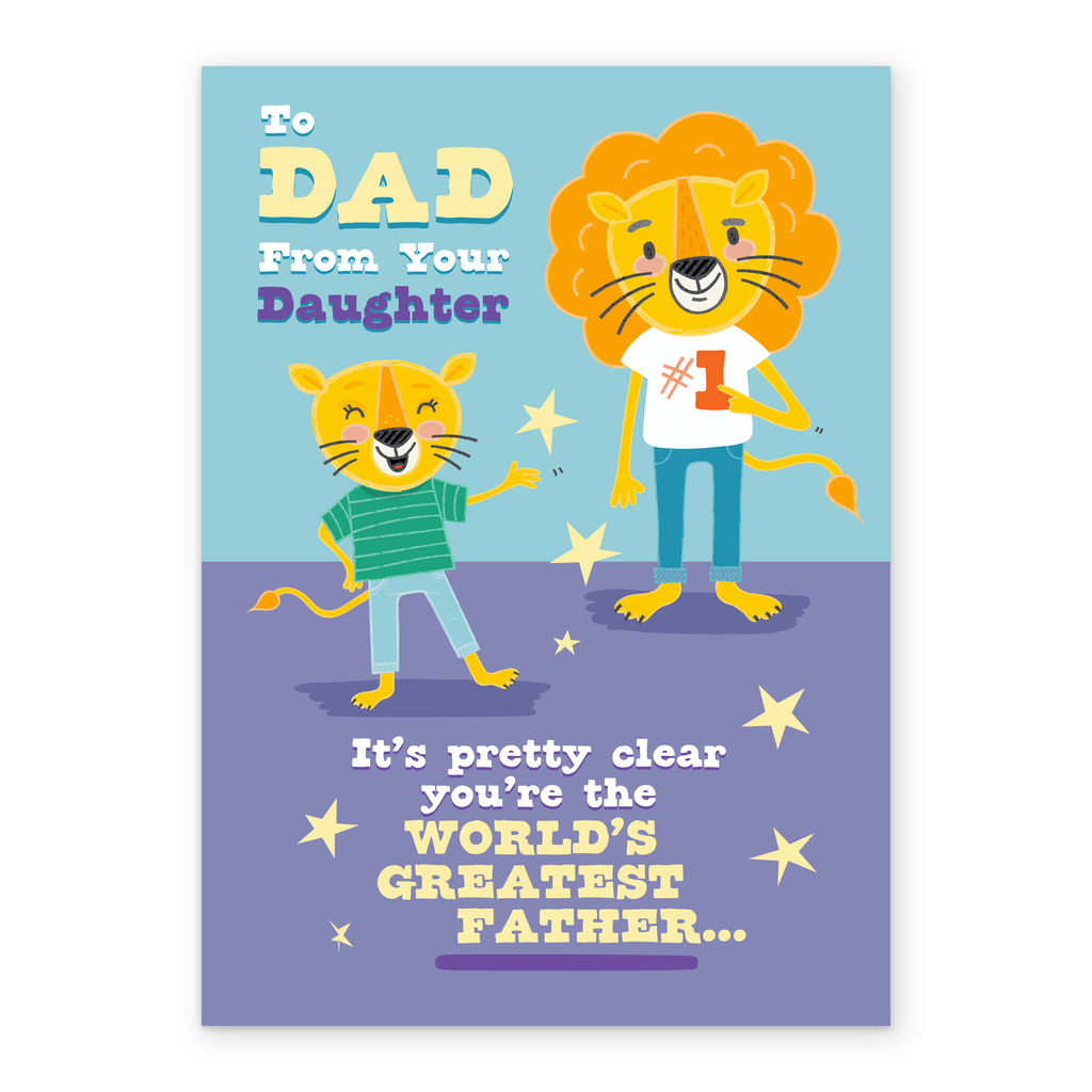 Show them you care with a personalised world's greatest dad from your daughter Father's Day card from Hallmark. Our Father's Day cards are printed on premium quality, FSC®-certified card & delivered nationwide.This card is available as standard 12cm by 16.7cm and large 15.5cm by 21.6cm.