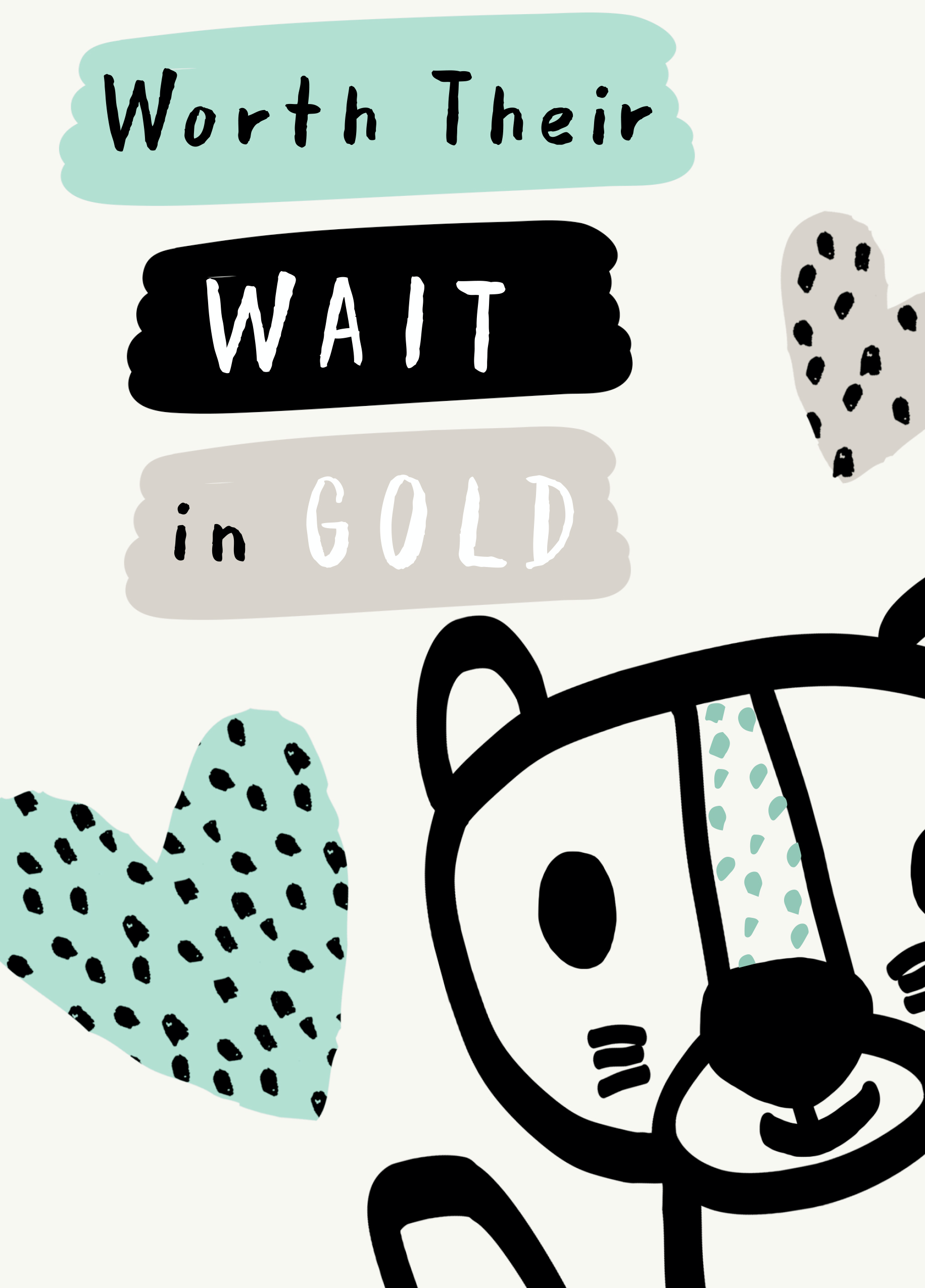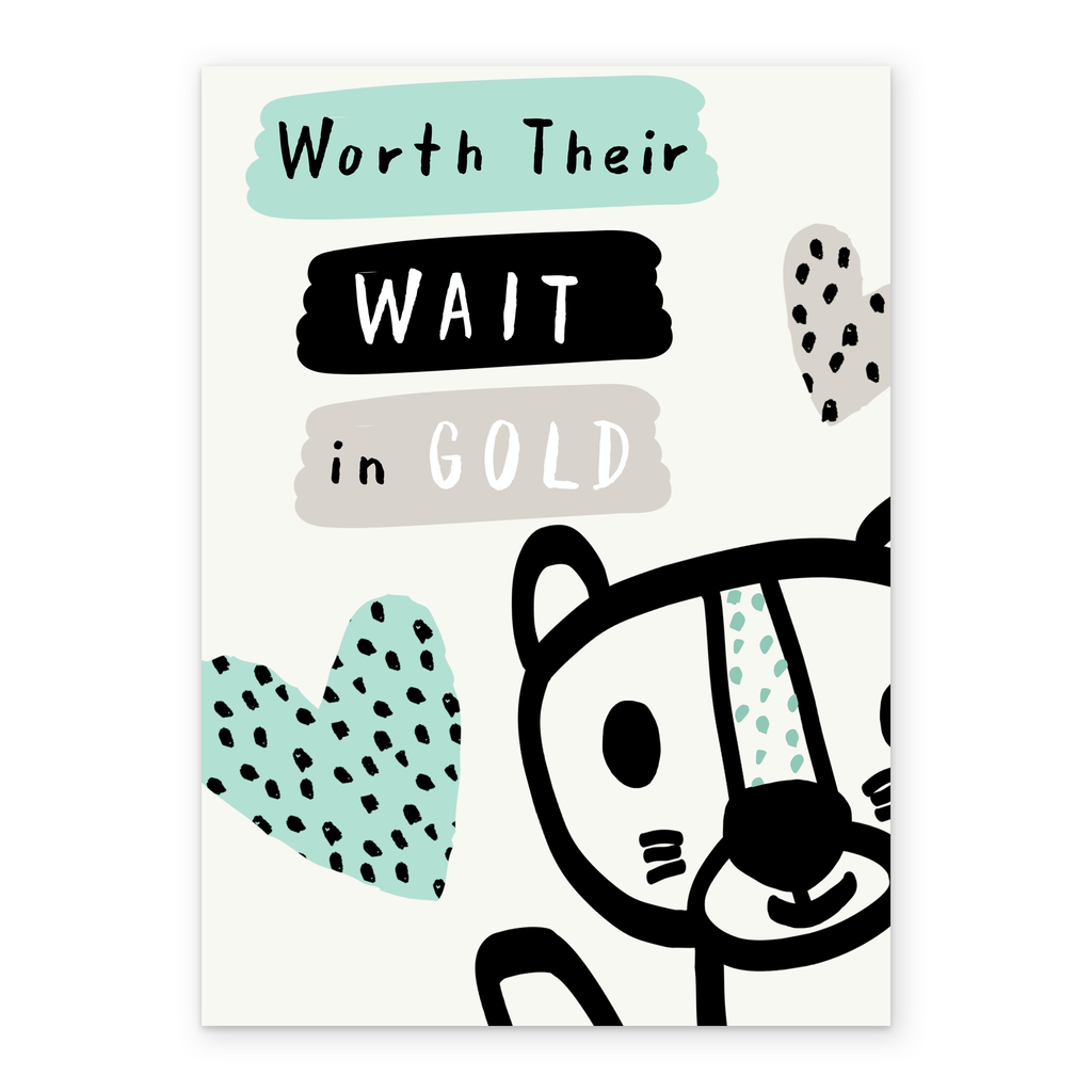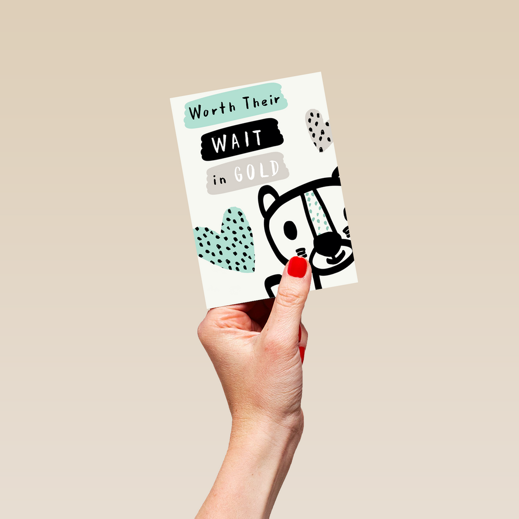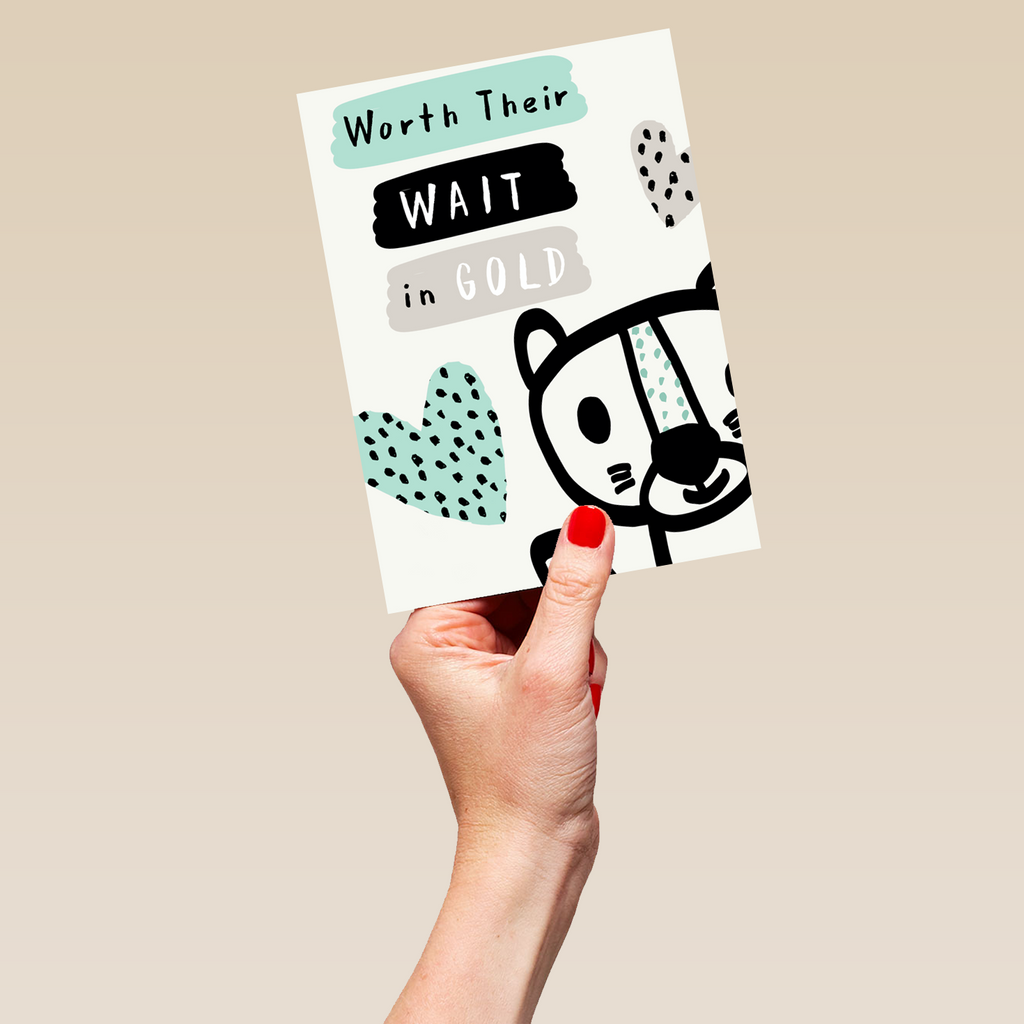 Show them you care with a personalised worth the wait new baby card from Hallmark. Our baby cards are printed on premium quality, FSC®-certified card & delivered nationwide. This card is available as standard 12cm by 16.7cm and large 15.5cm by 21.6cm.