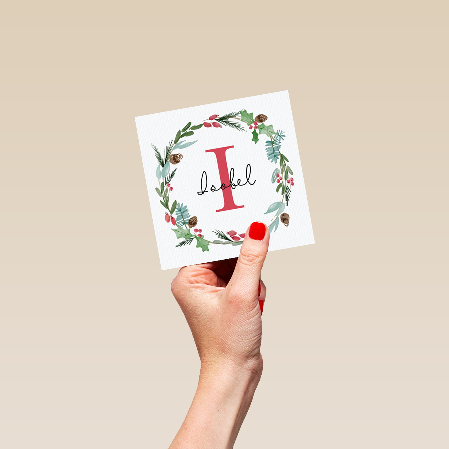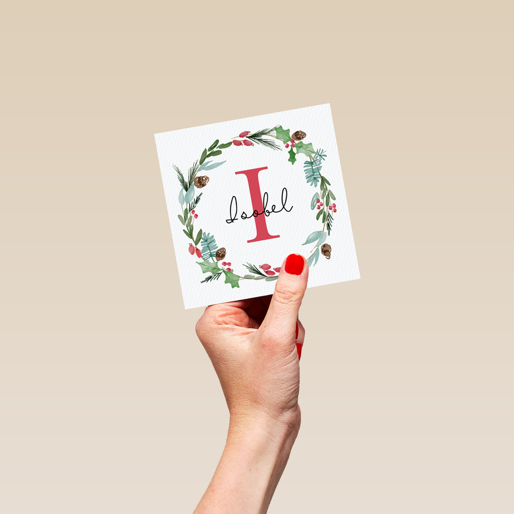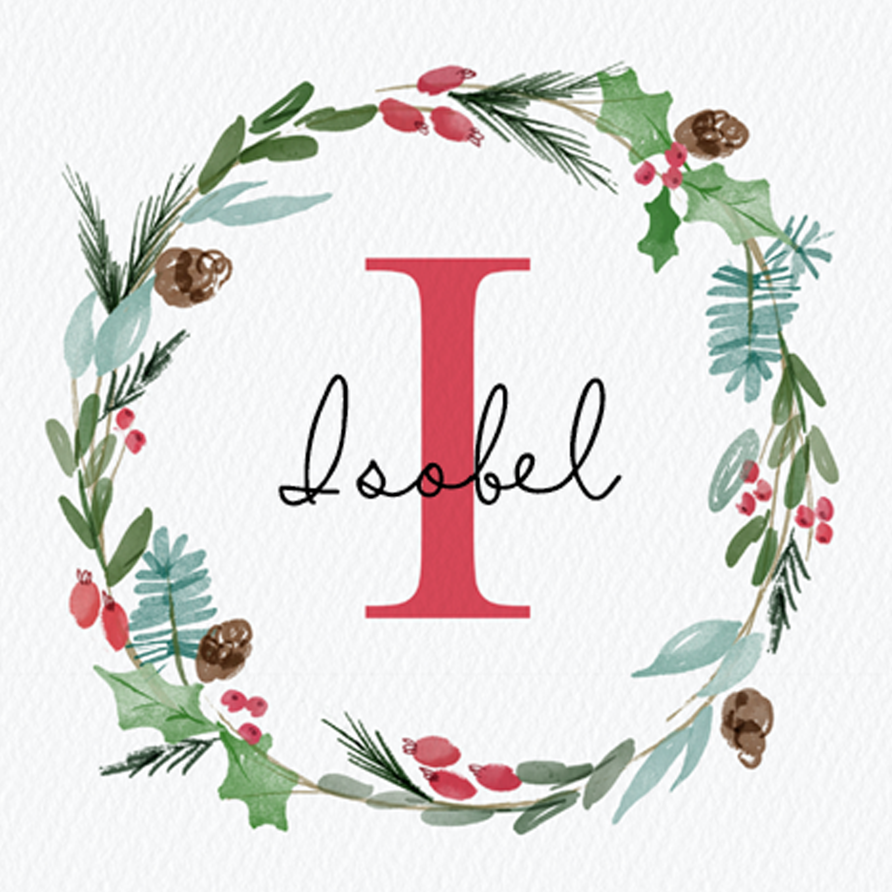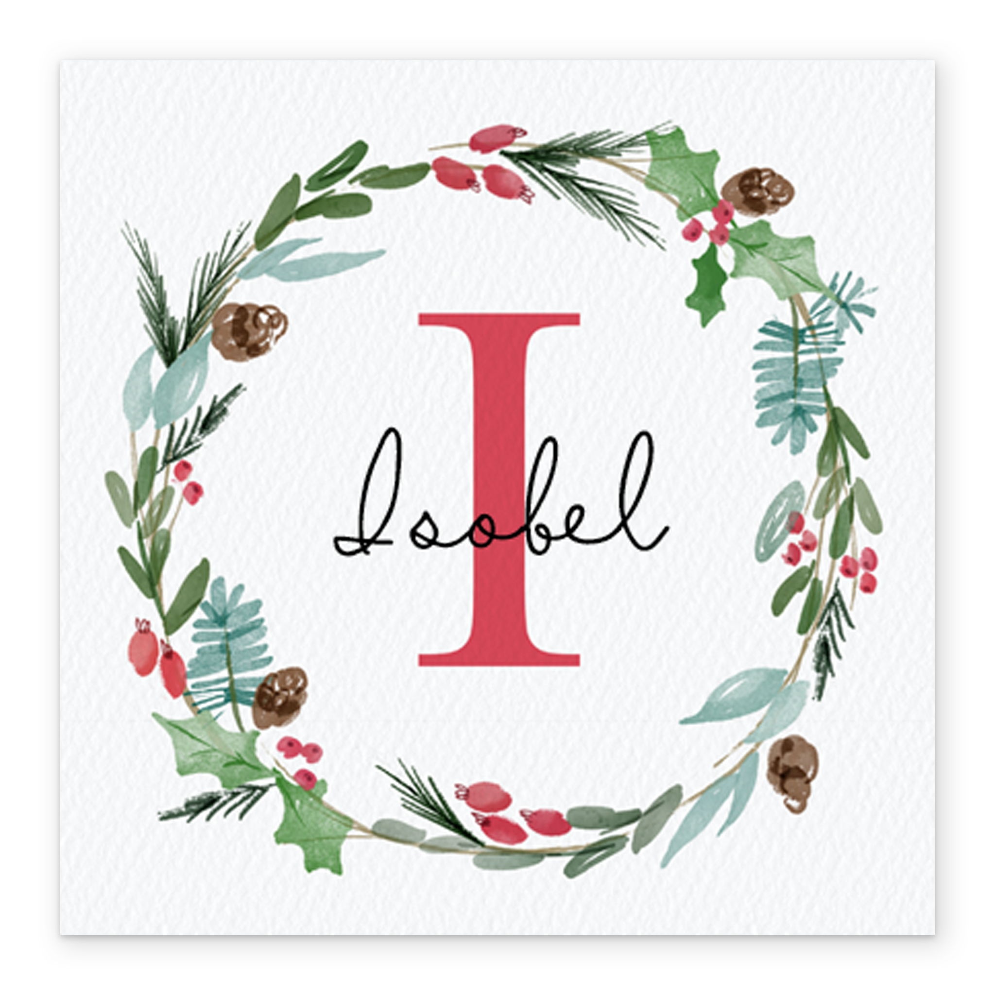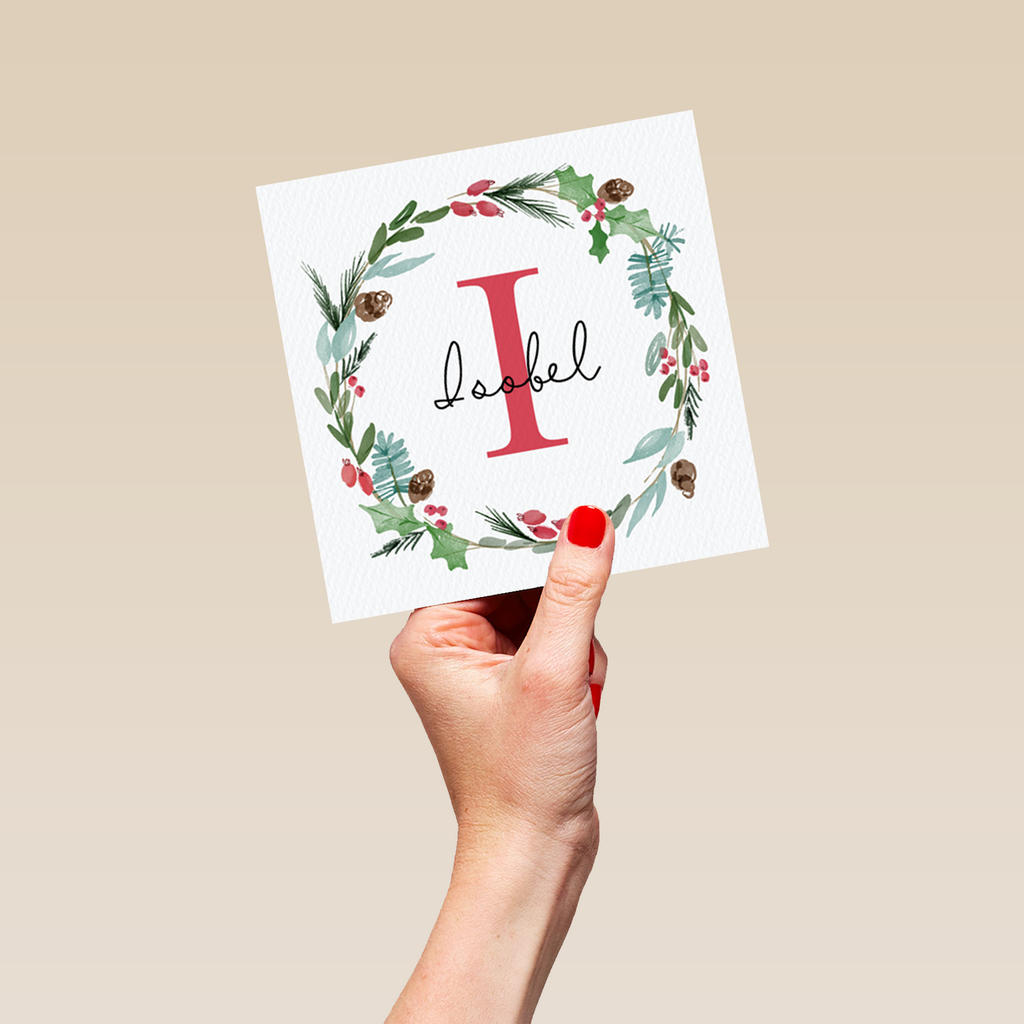 Show them you care with a personalised wreath monogram letter I Christmas card from Hallmark. Our greetings cards are printed on premium quality, FSC®-certified card & delivered nationwide. This card is available as standard 12cm by 12cm and large 15cm by 15cm.