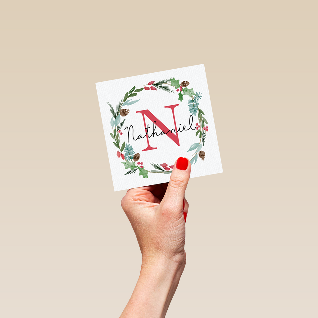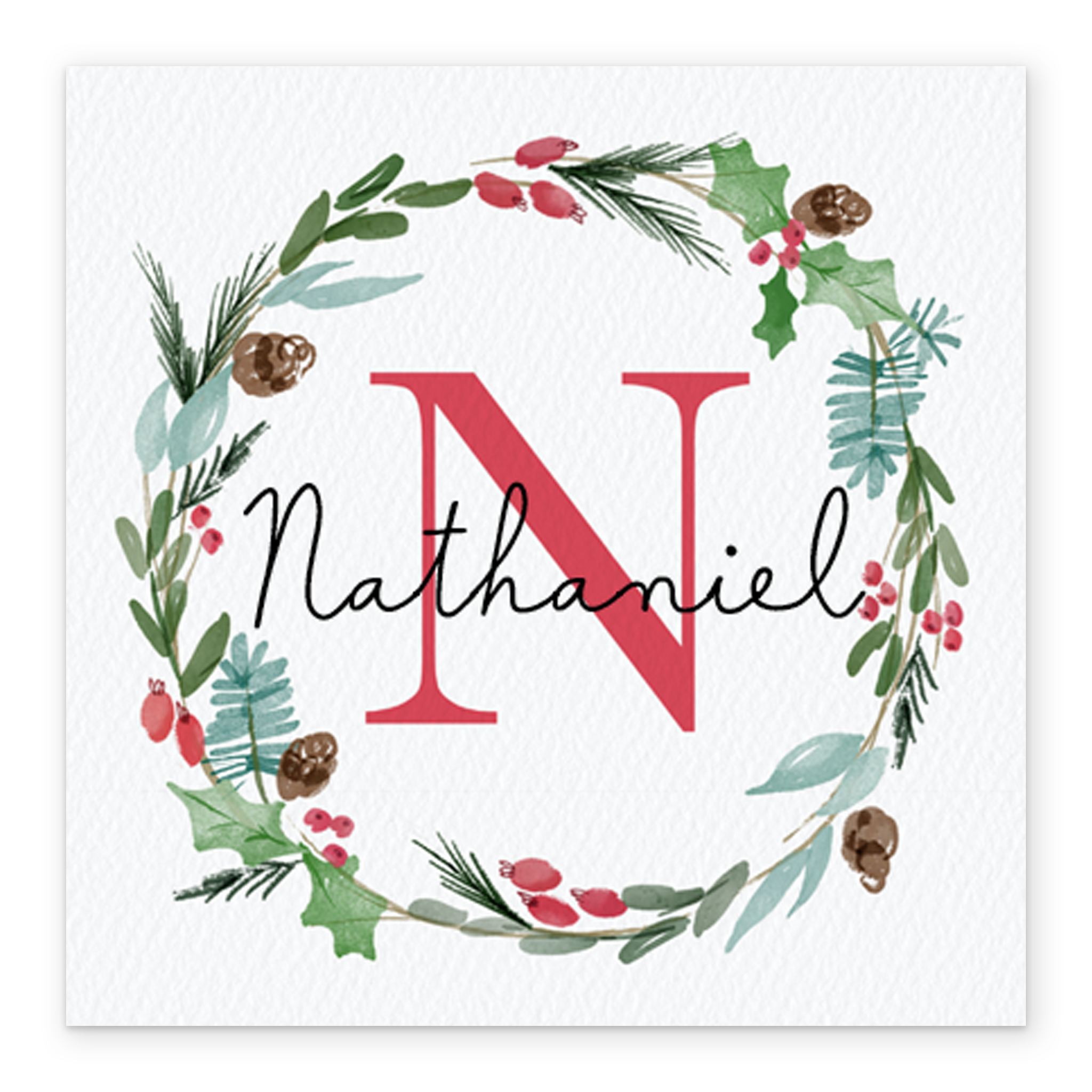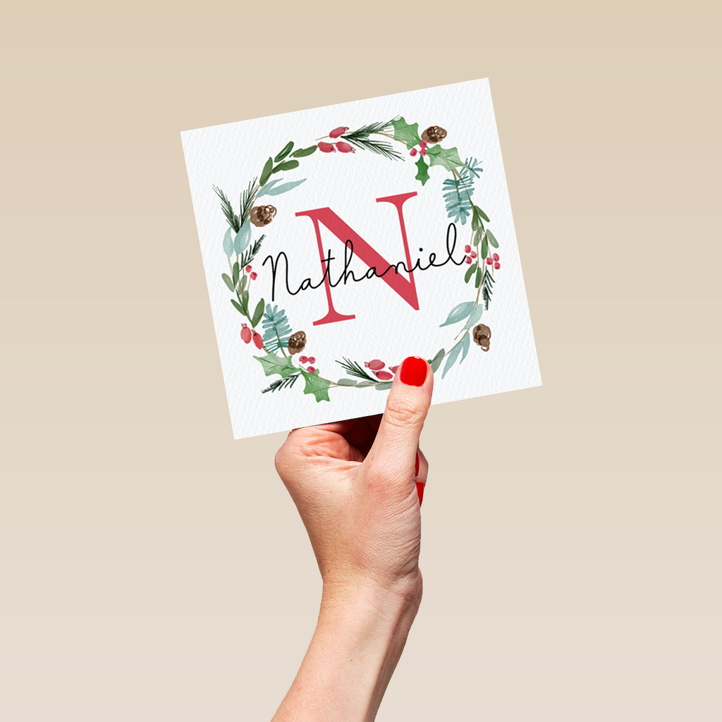 Show them you care with a personalised wreath monogram letter N Christmas card from Hallmark. Our greetings cards are printed on premium quality, FSC®-certified card & delivered nationwide. This card is available as standard 12cm by 12cm and large 15cm by 15cm.